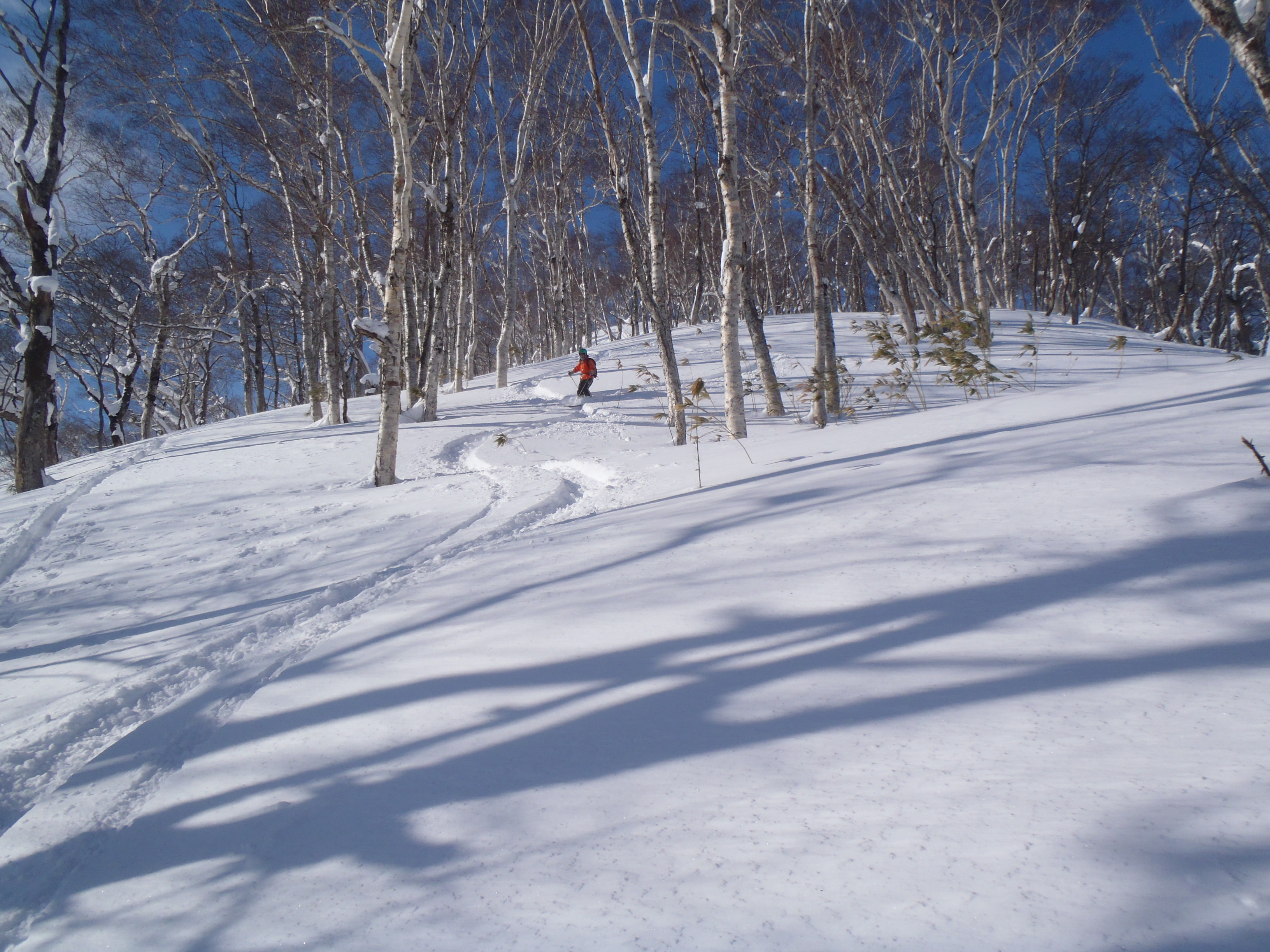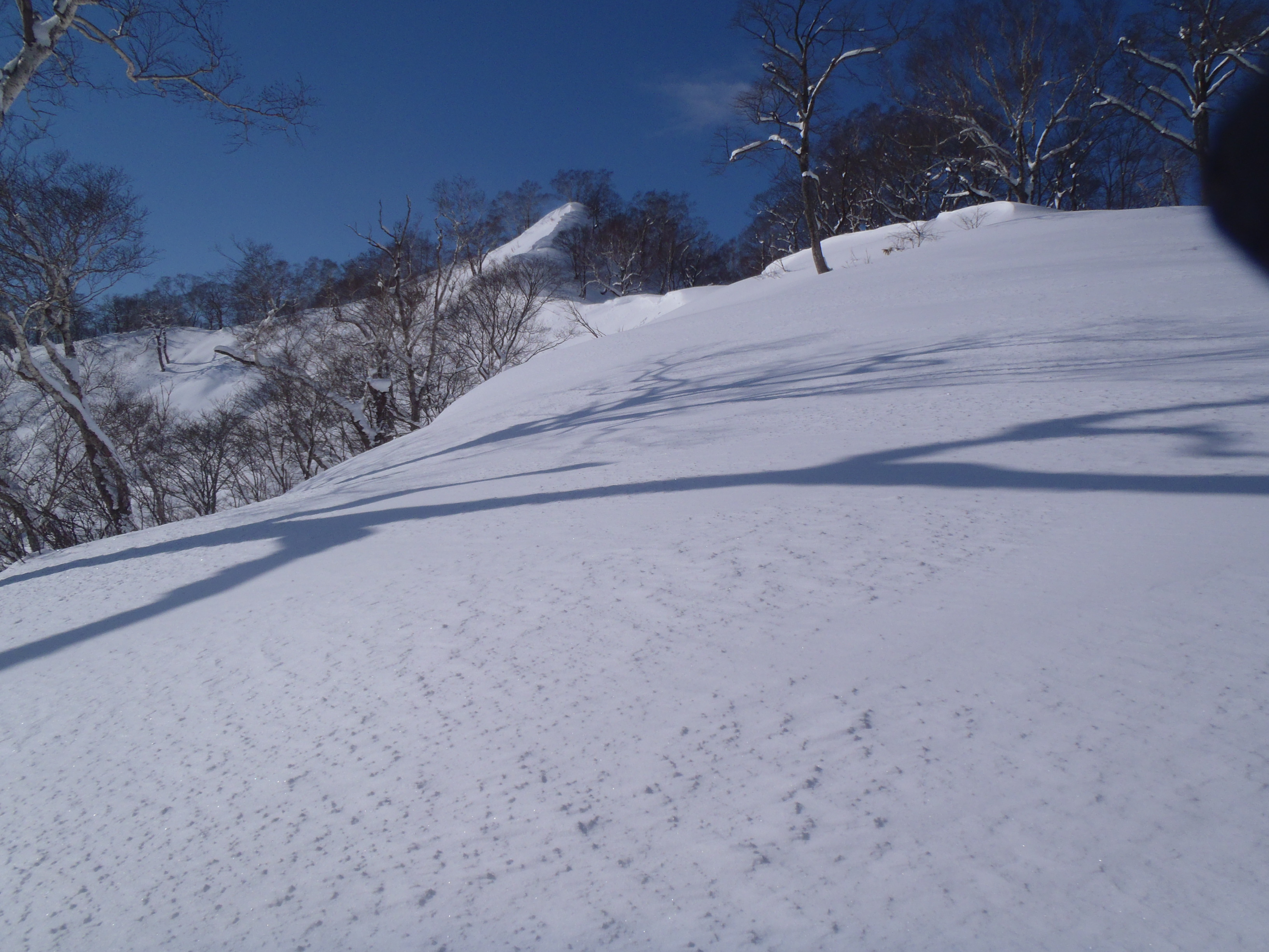 古いスノーシュートレースは沢に向かっていて どうやらボーダーみたいです。