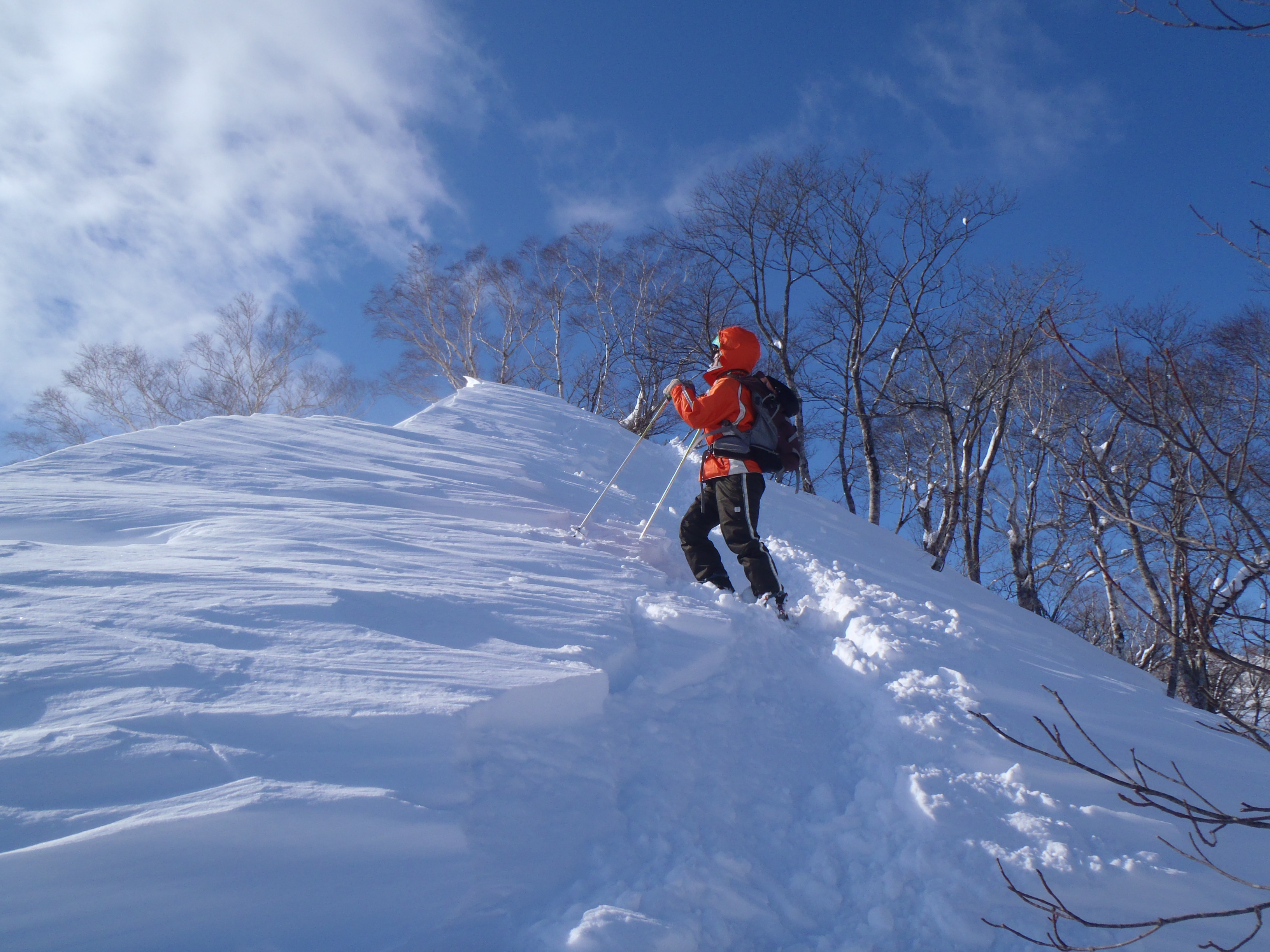 稜線は地吹雪っぽくて雪庇が張り出していました。