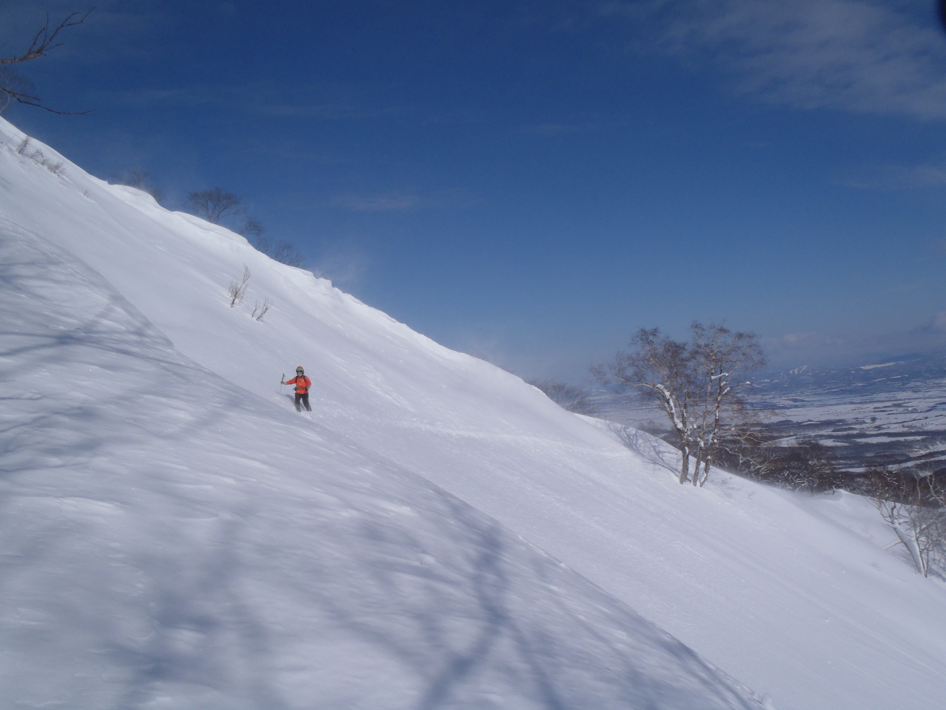 南斜面なので腐りかけていましたが 開脚パラレルで降りてきました。