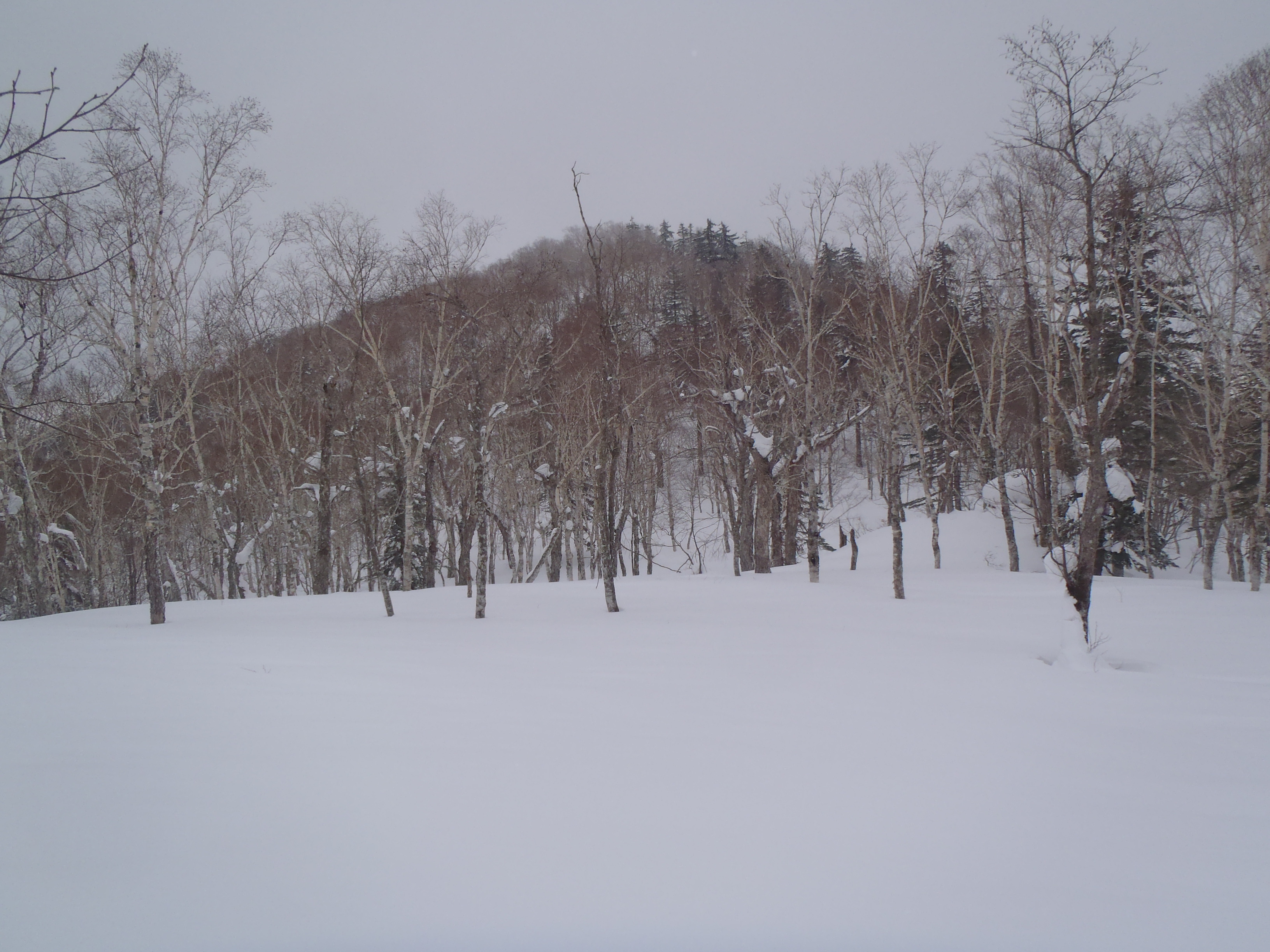 変化のないラッセルに飽きたころ鏡岳に到着。岳というよりコブでした。