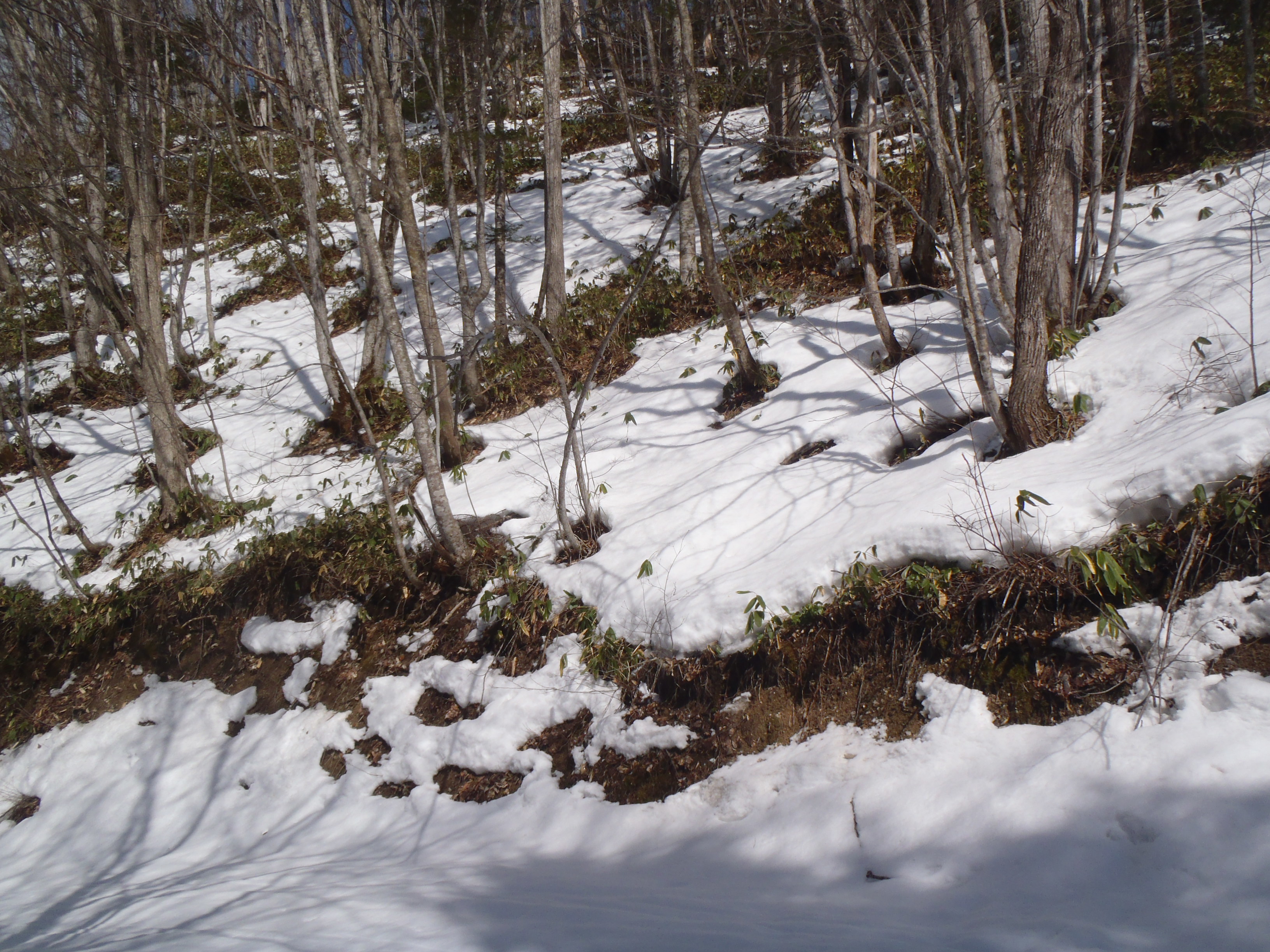標高500mで法面の積雪はたっぷり1mあり 根曲がり竹はほとんど出ていません。