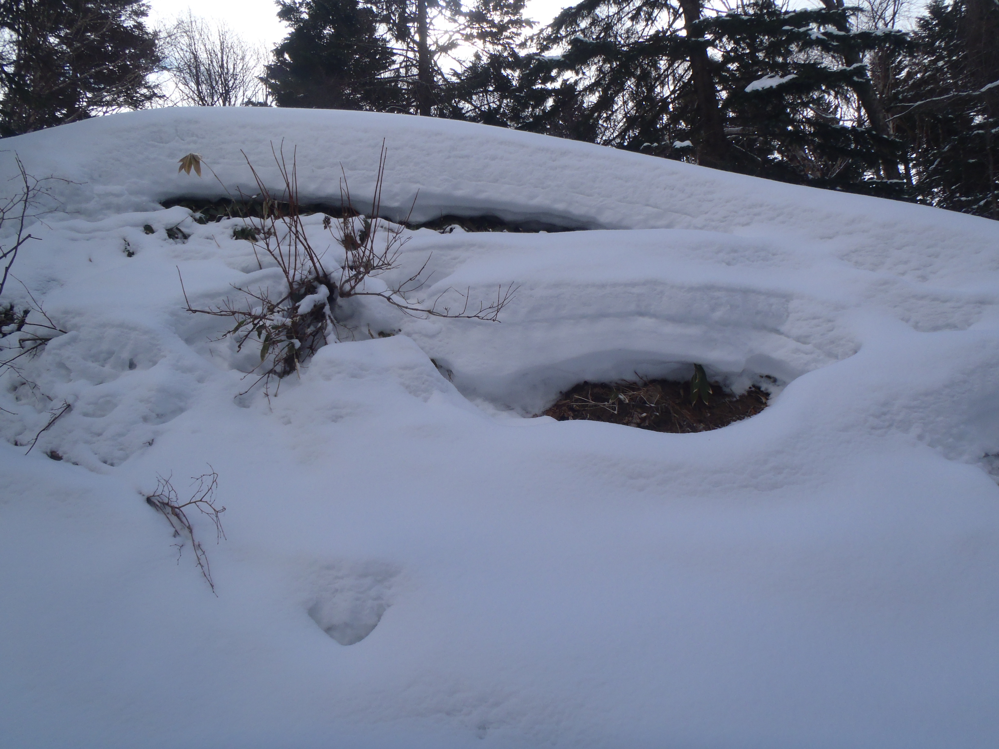 岩見沢に吸収された旧栗沢町のの万字から林道に入り 標高300m越えると50cmの積雪がありました。