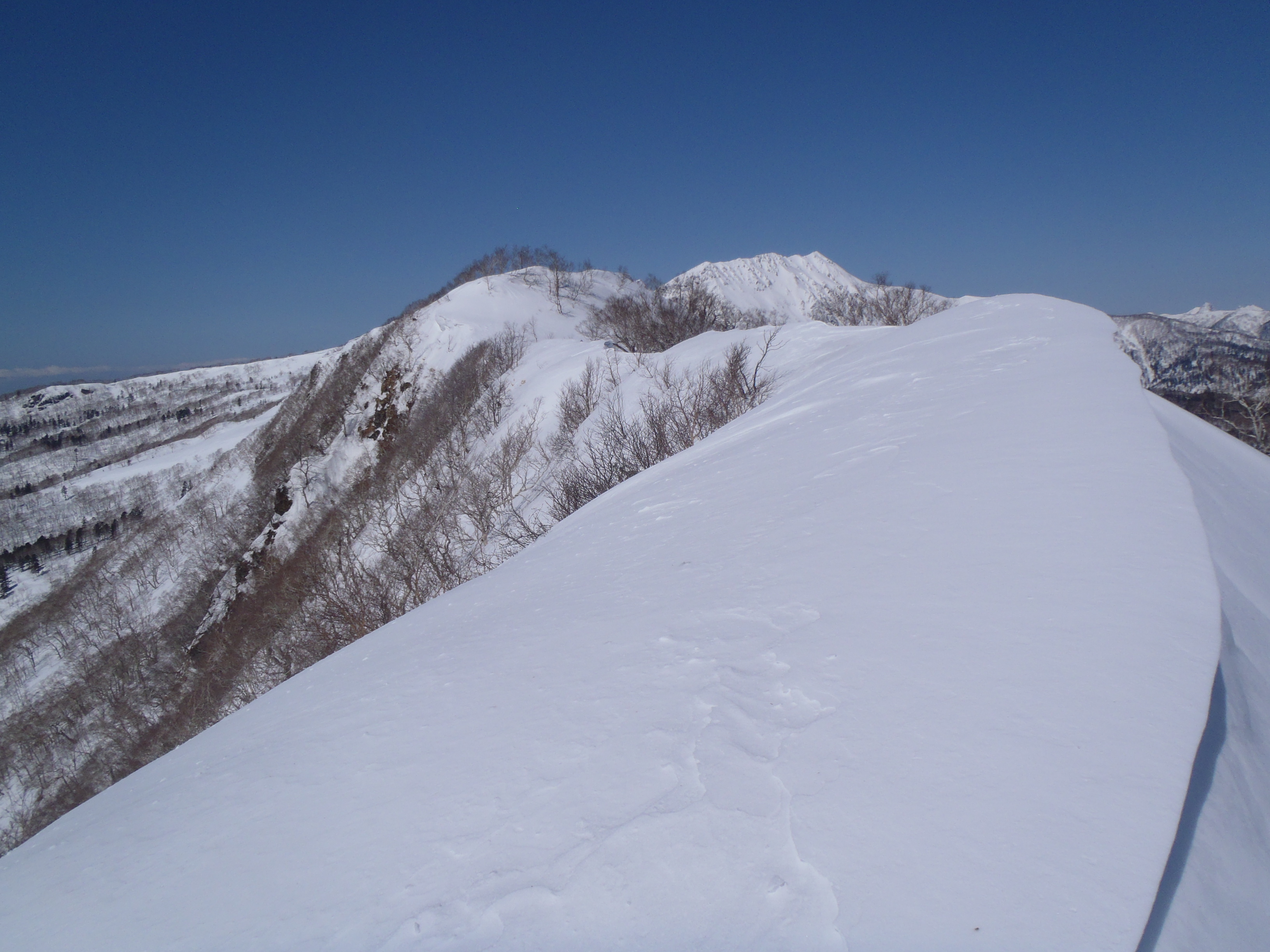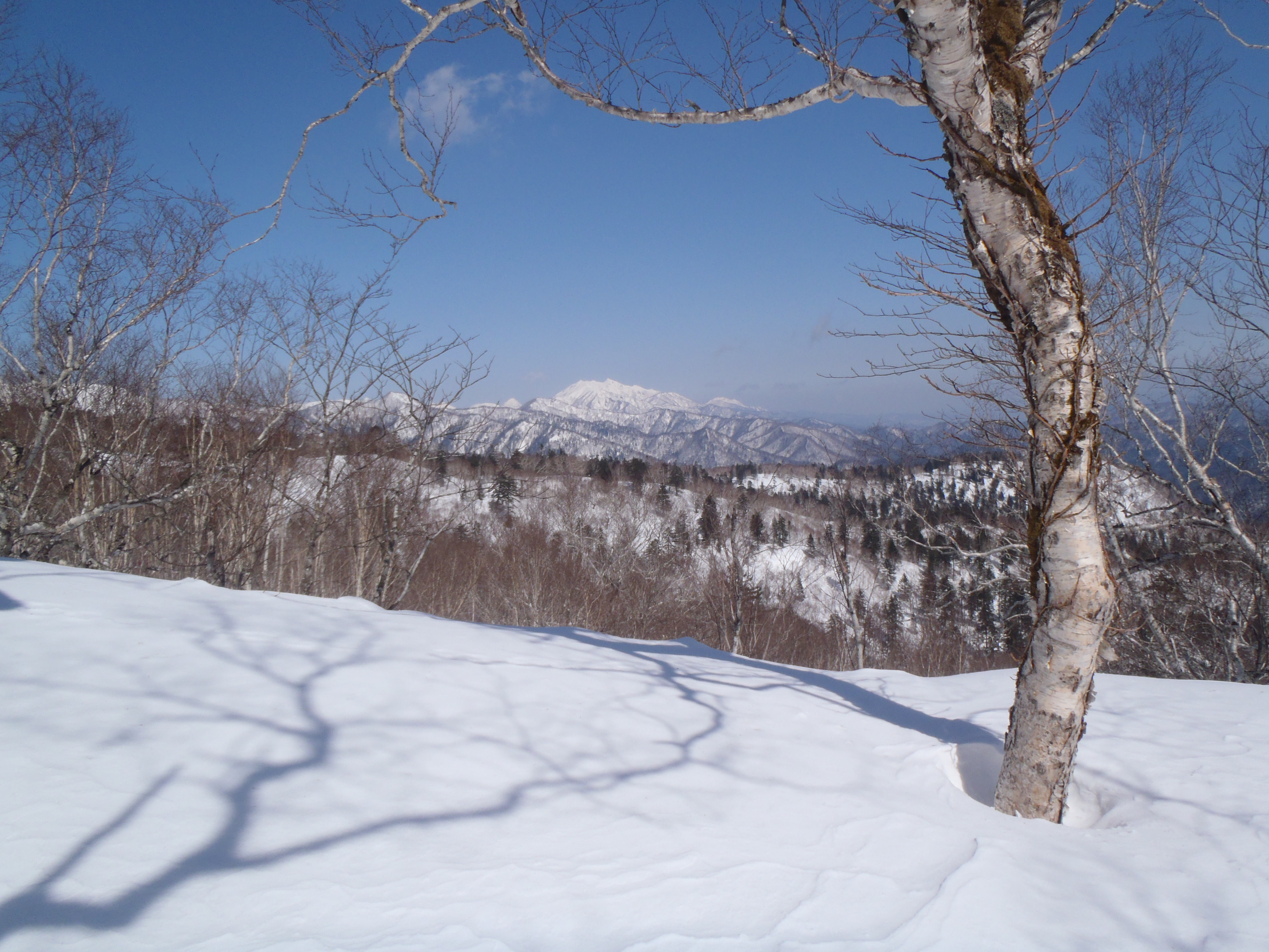 尾根に上がると純白の屏風山が望めました。やる気が復活。