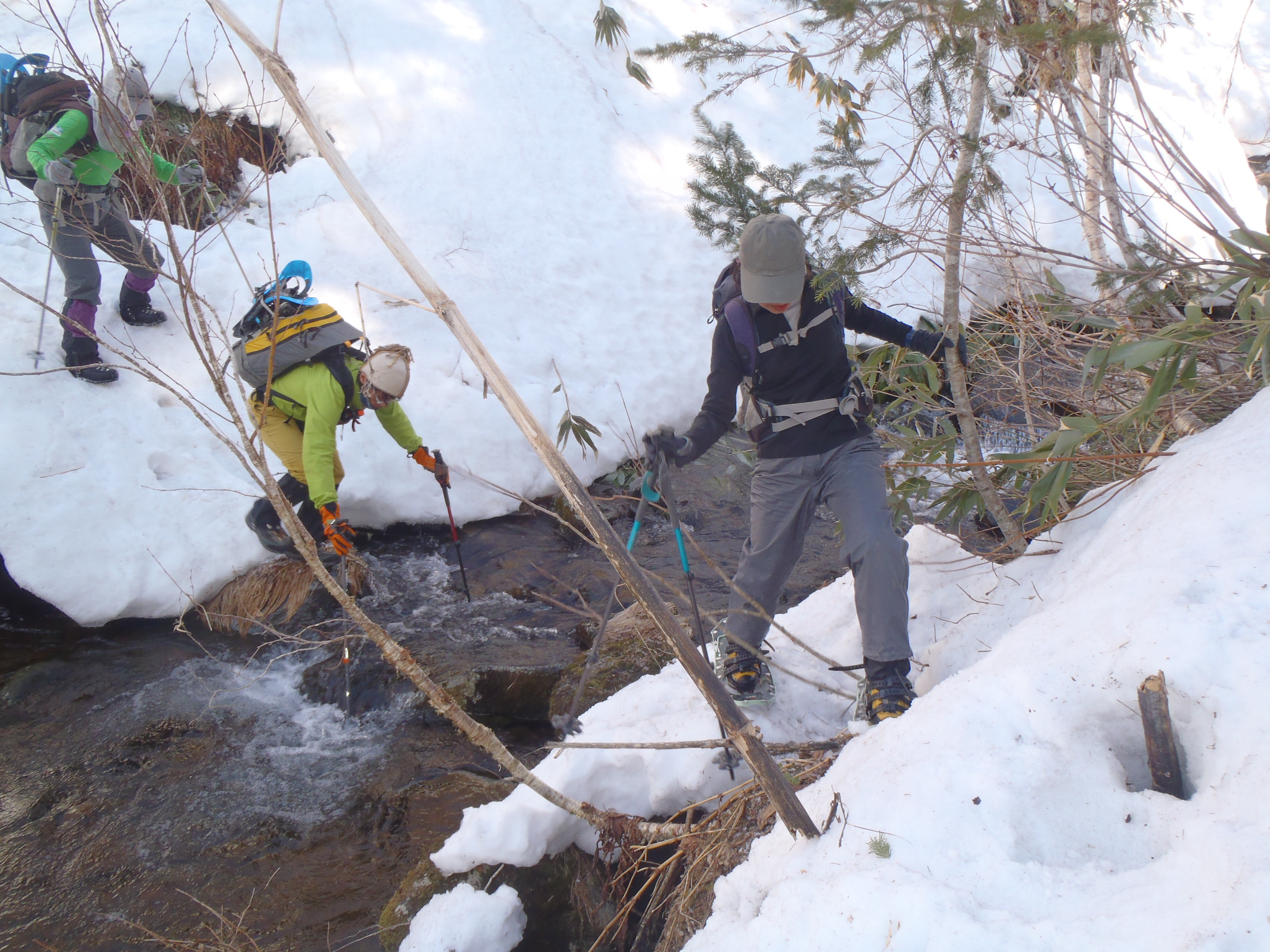 渡渉は 岩が凍っていて 危うく落ちそうになりました。
