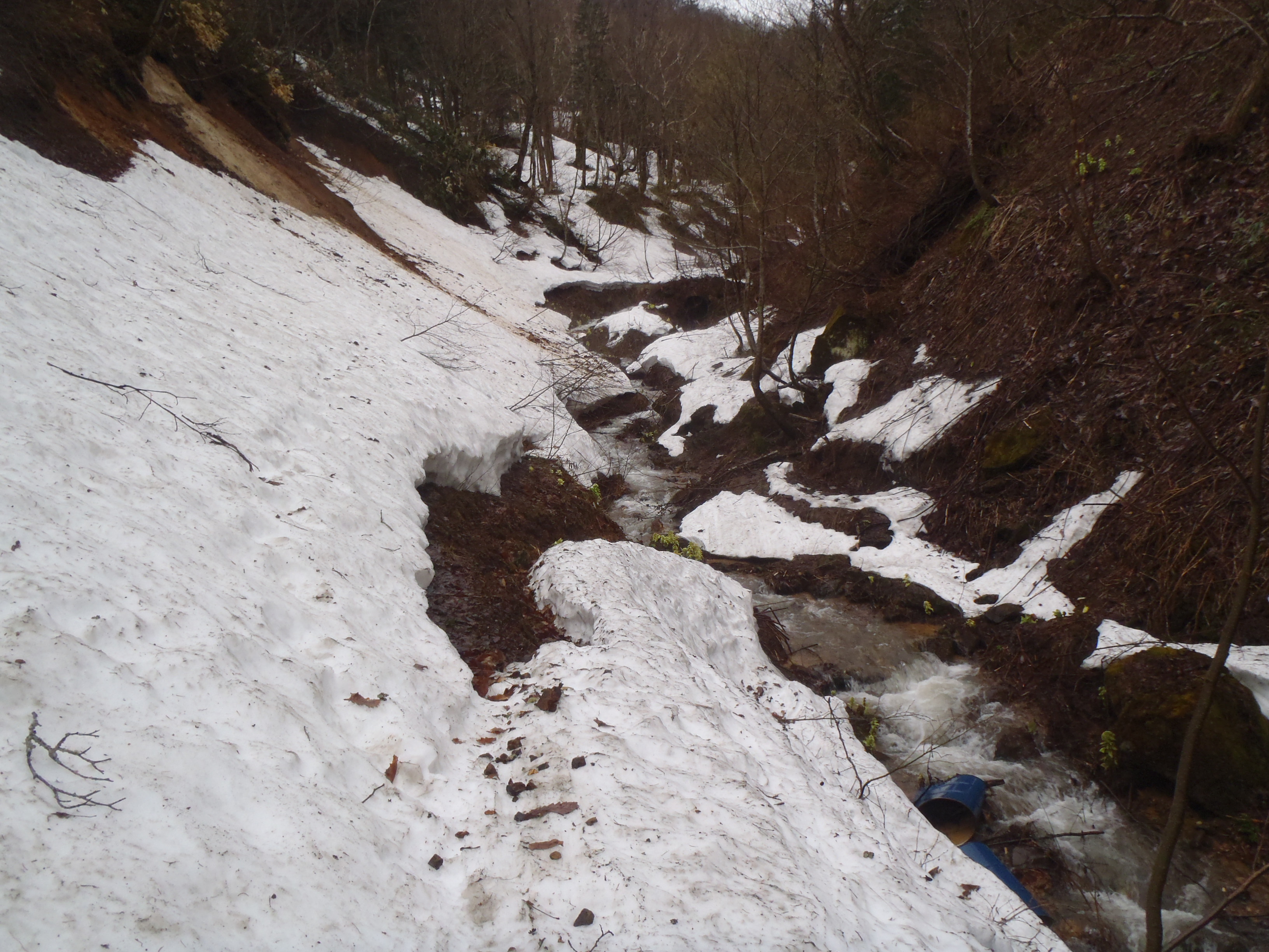 古い林道はコルゲート管が流されて渡渉を余儀なくされました。