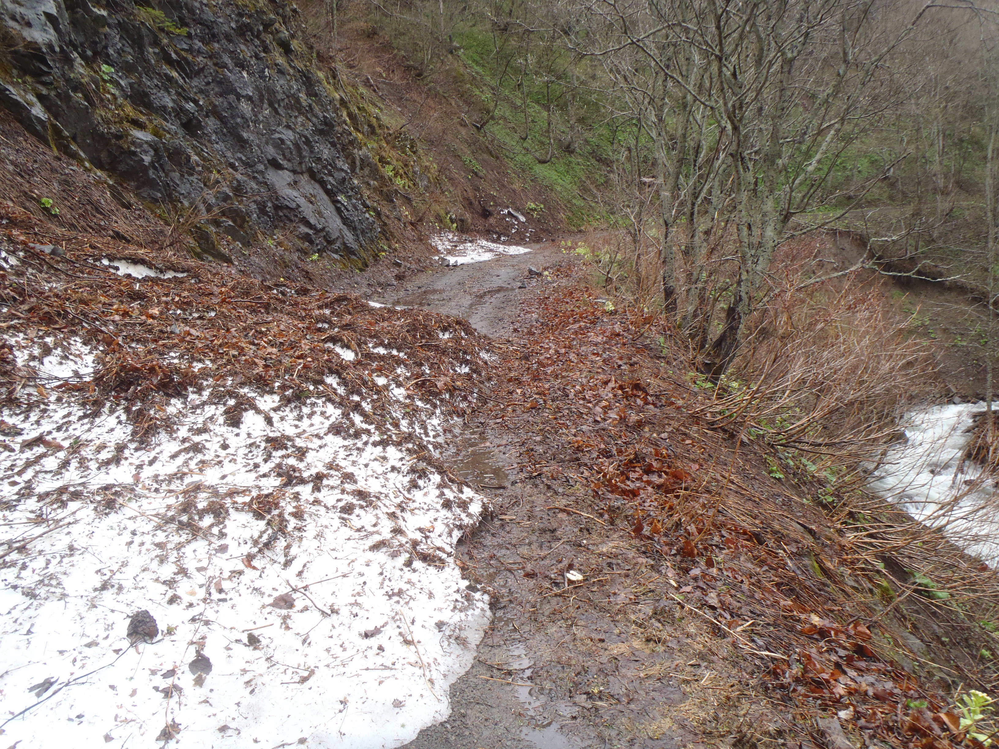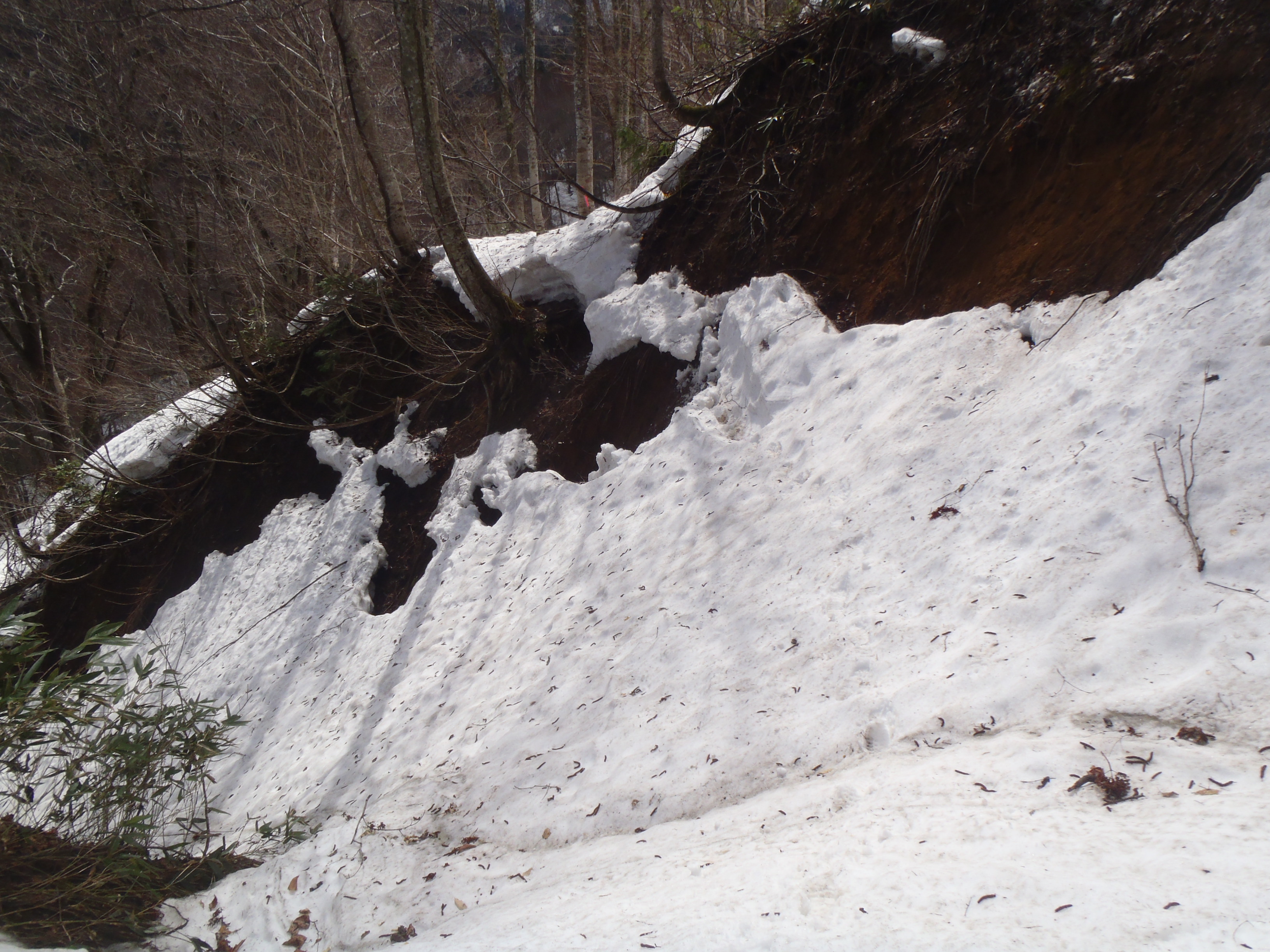 作業道も崩れて・・・おっと滑落しそう。