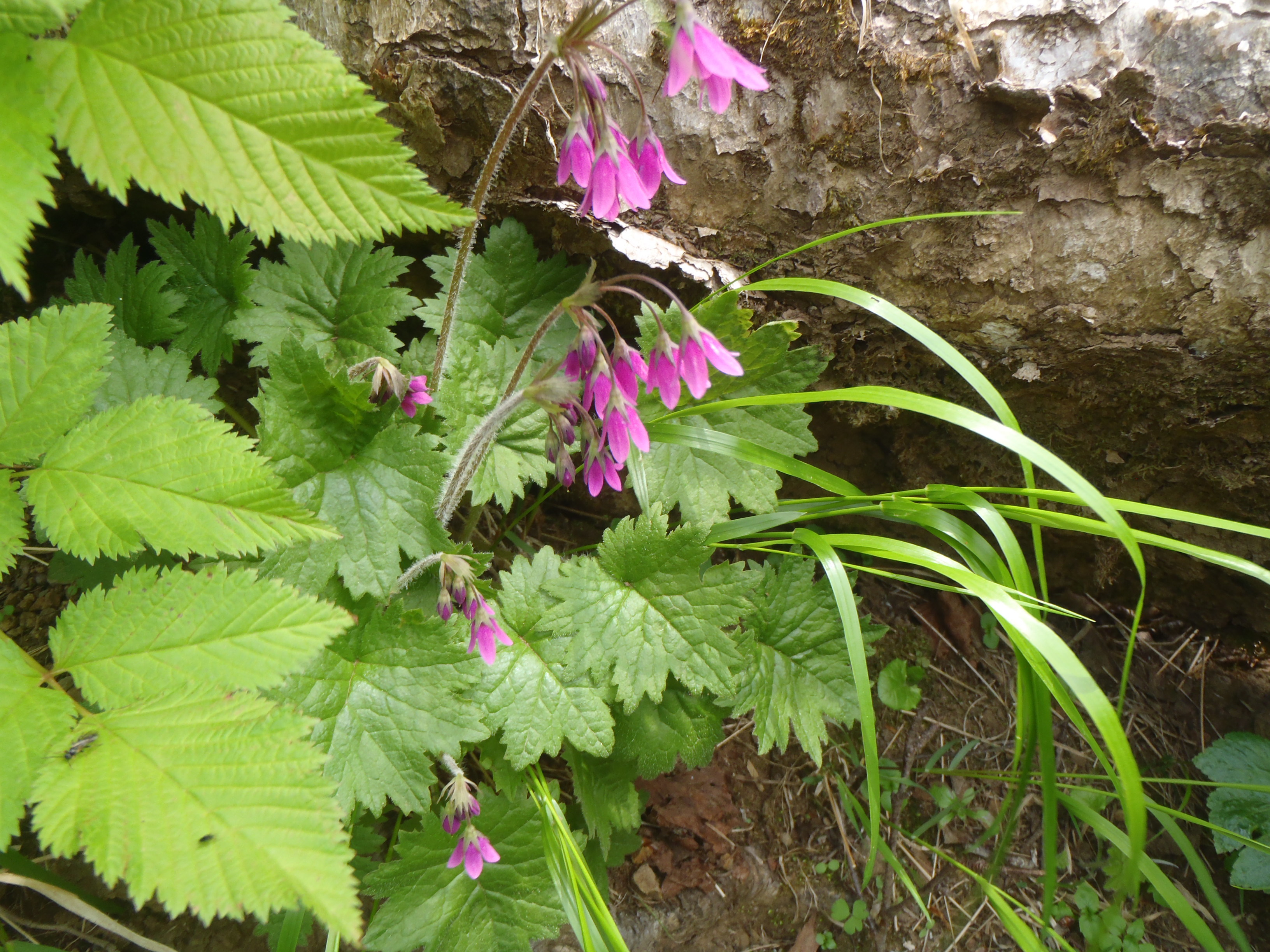 崖の上には紫色の花が・・・フウロかな?