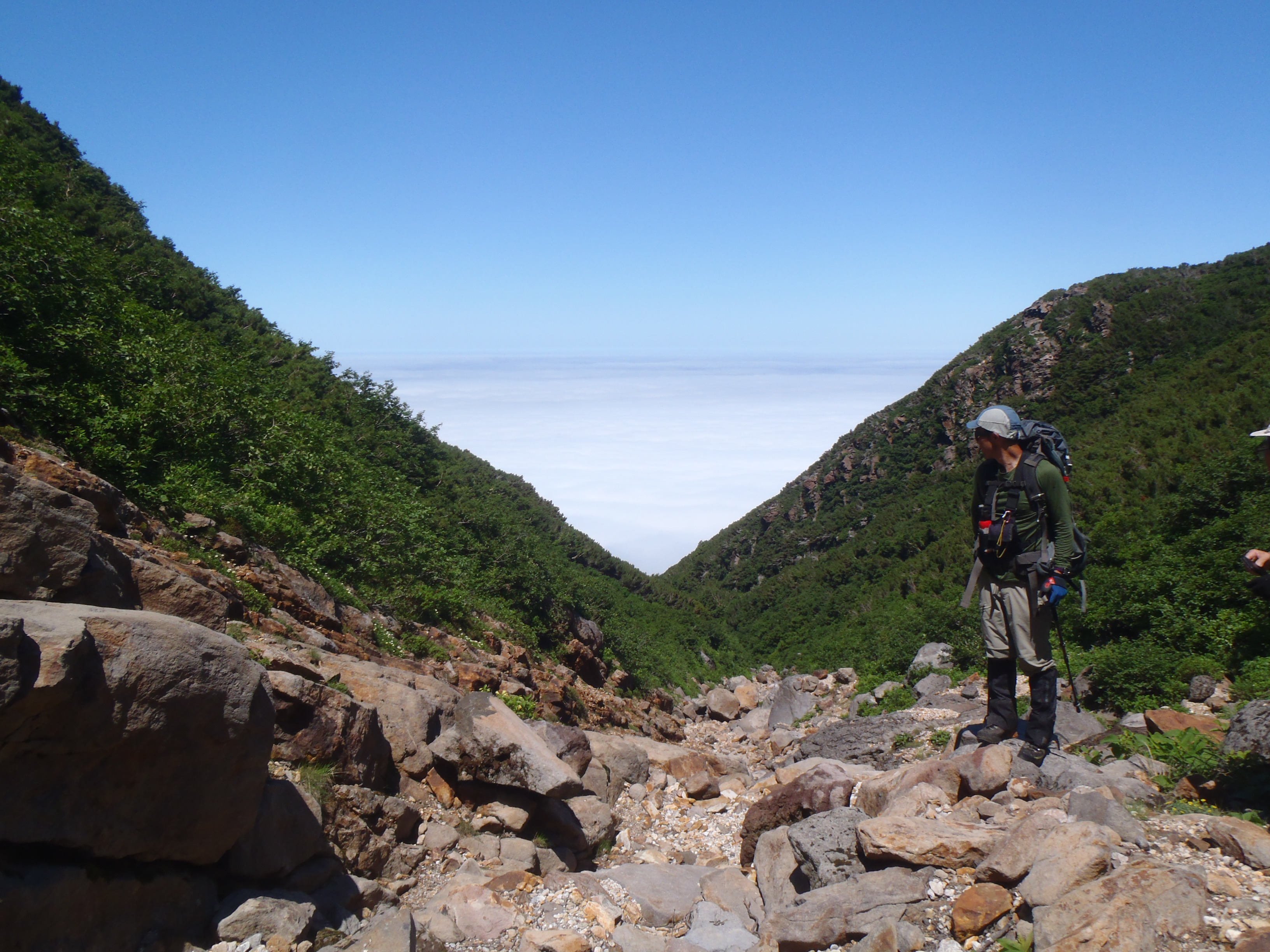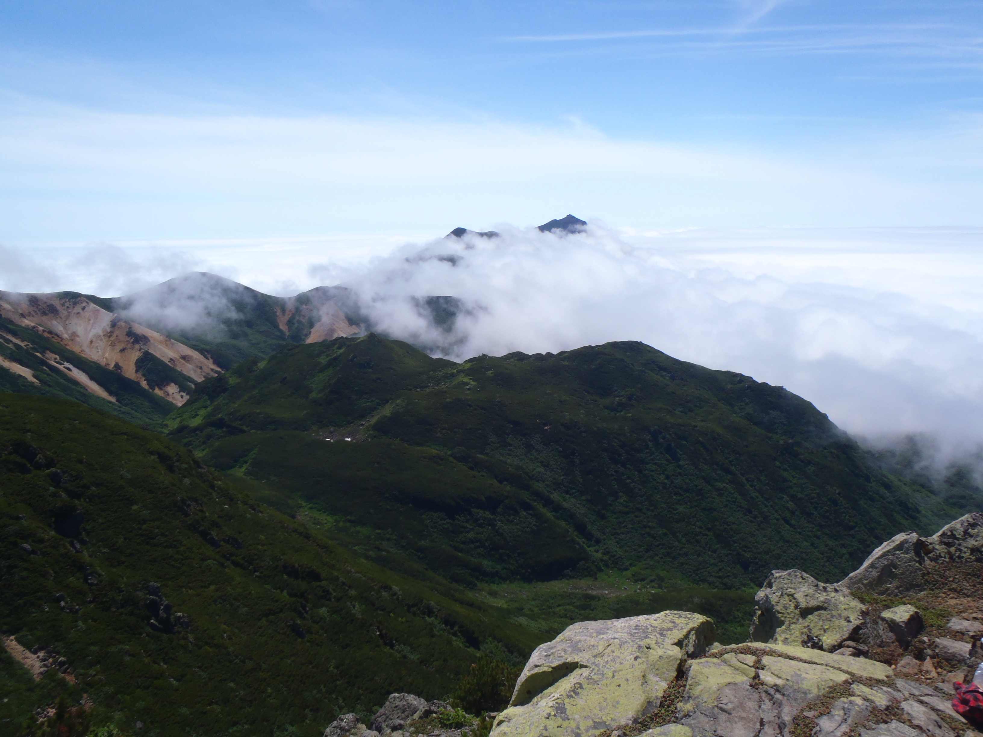 雲海の上に突き出た爺爺岳(チャチャヌプリ)。
