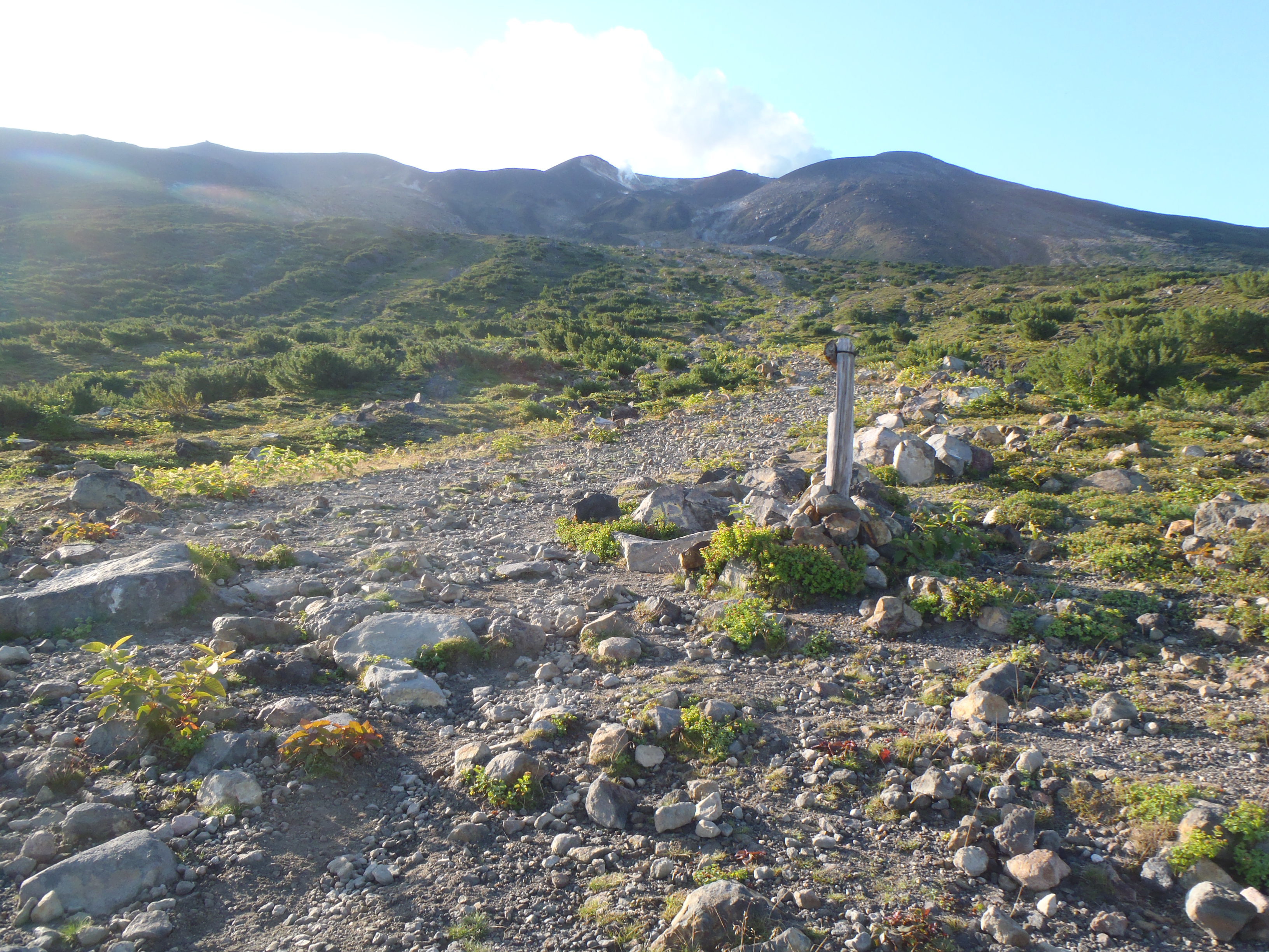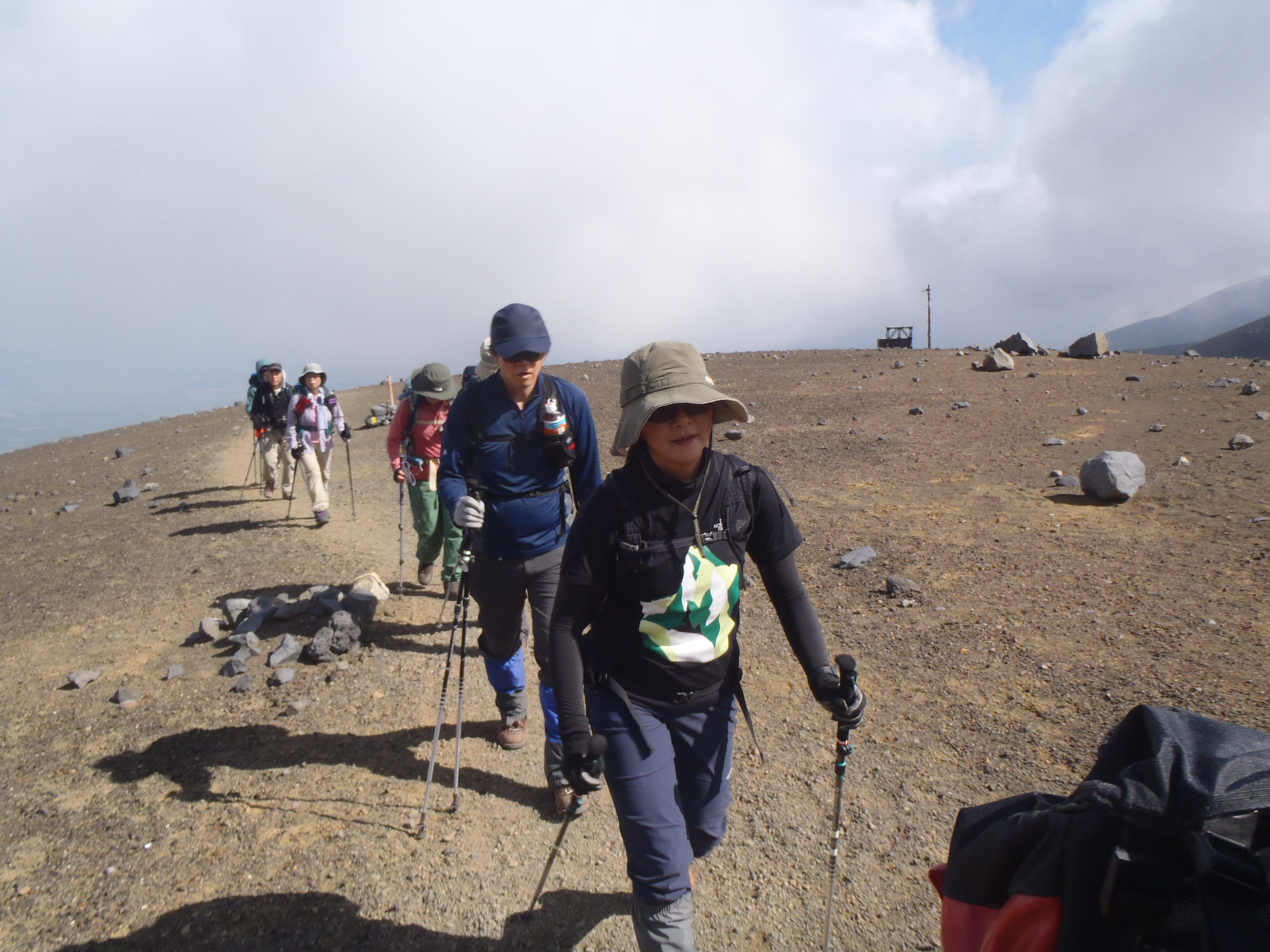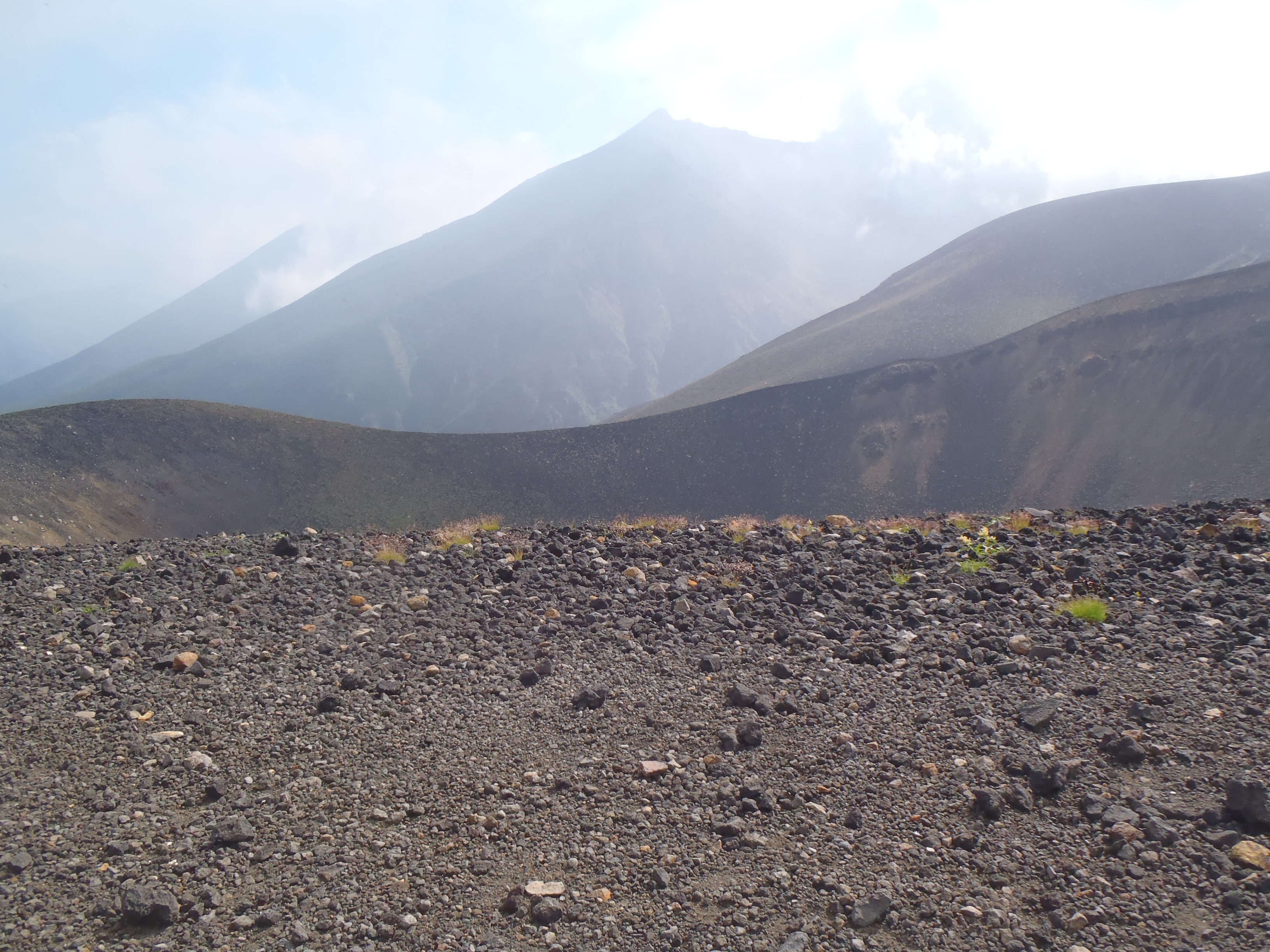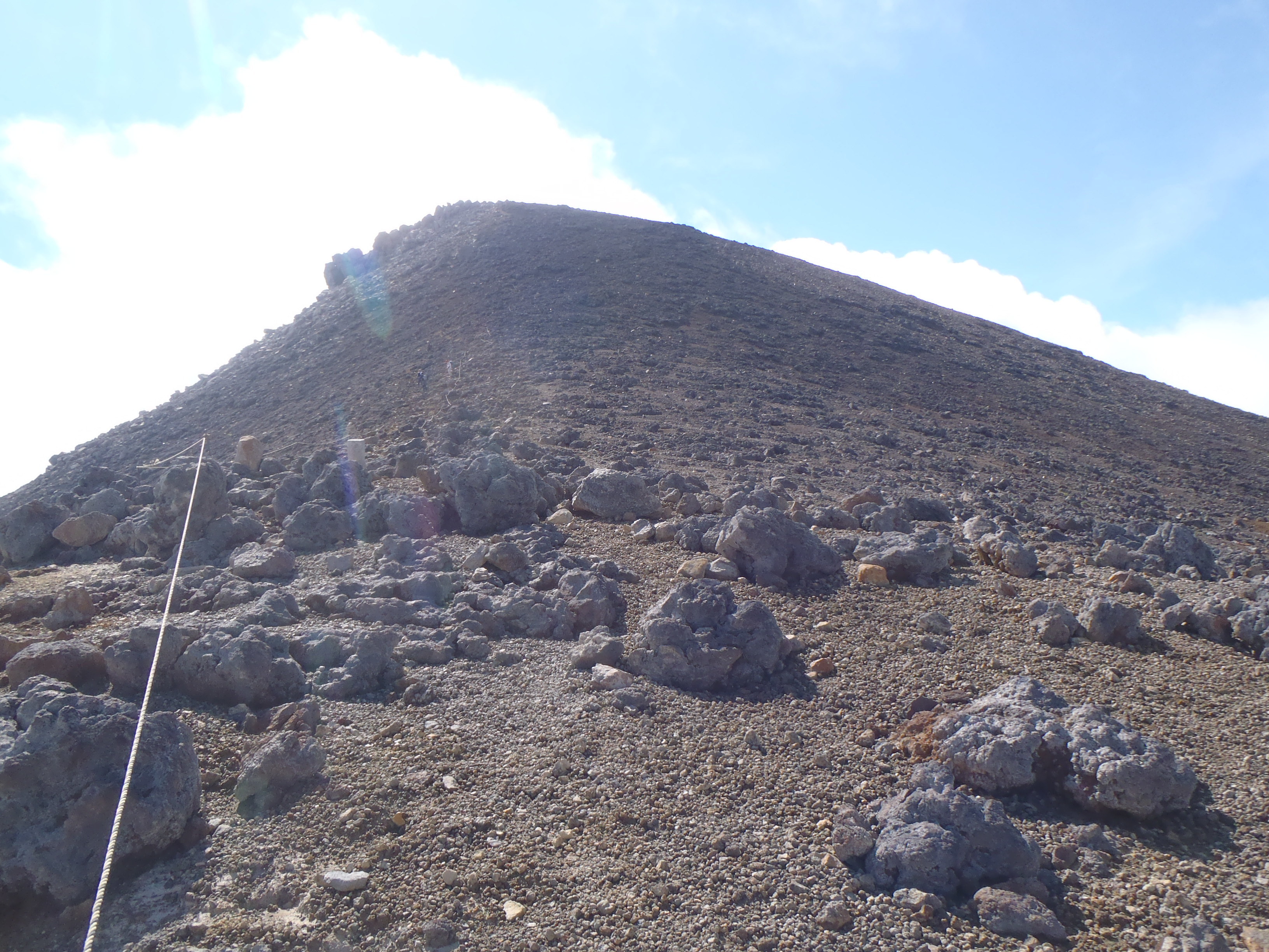 火山灰の山は植物も少なく 解説が苦手なガイドです。