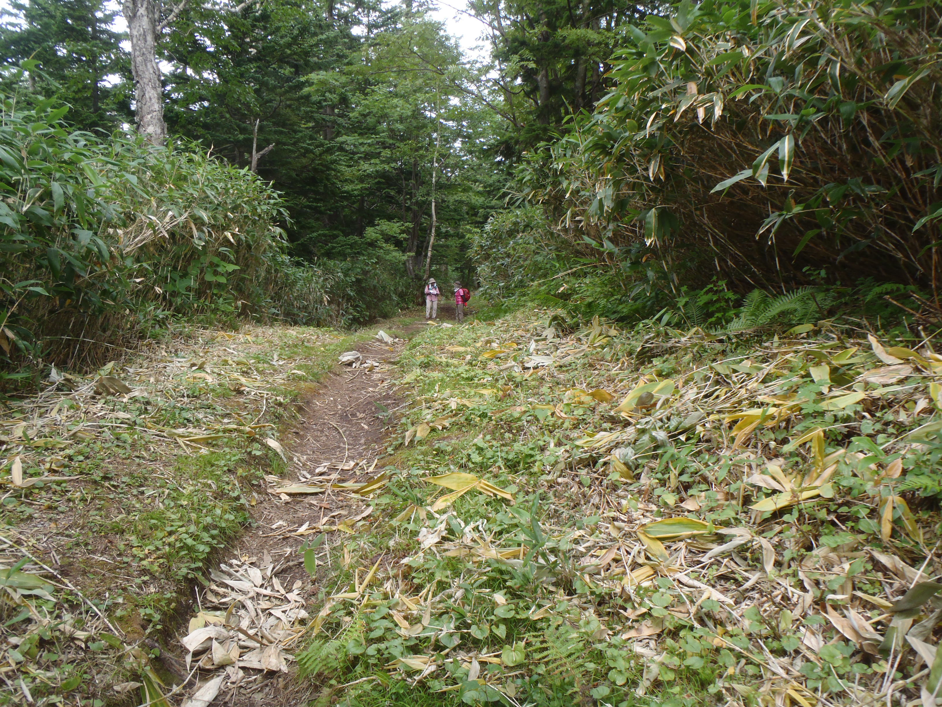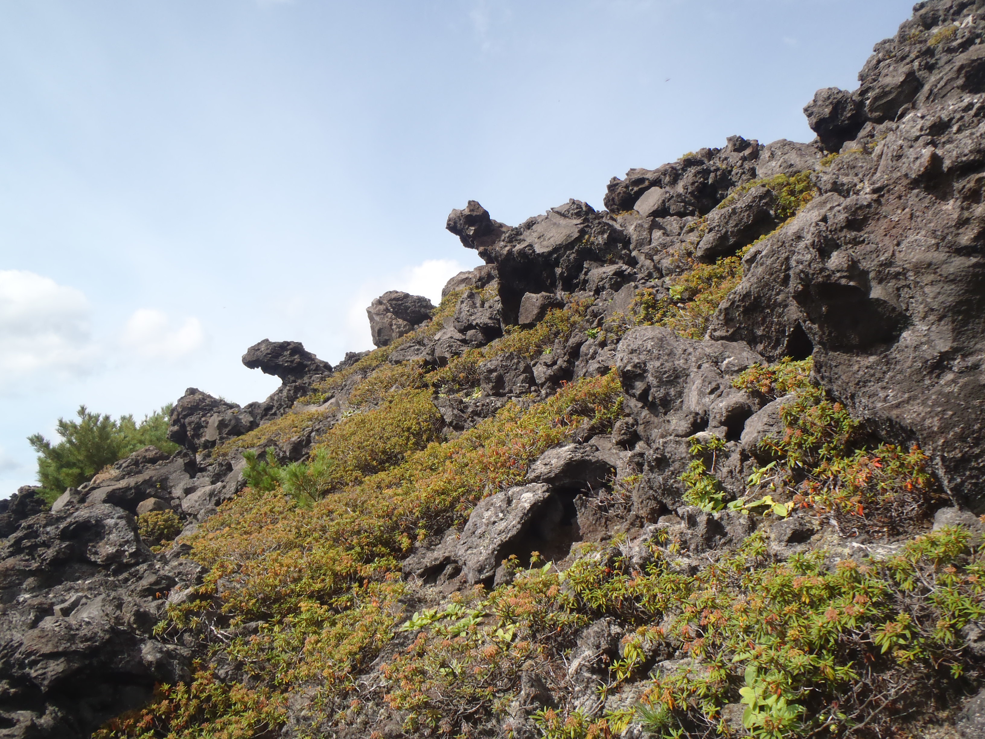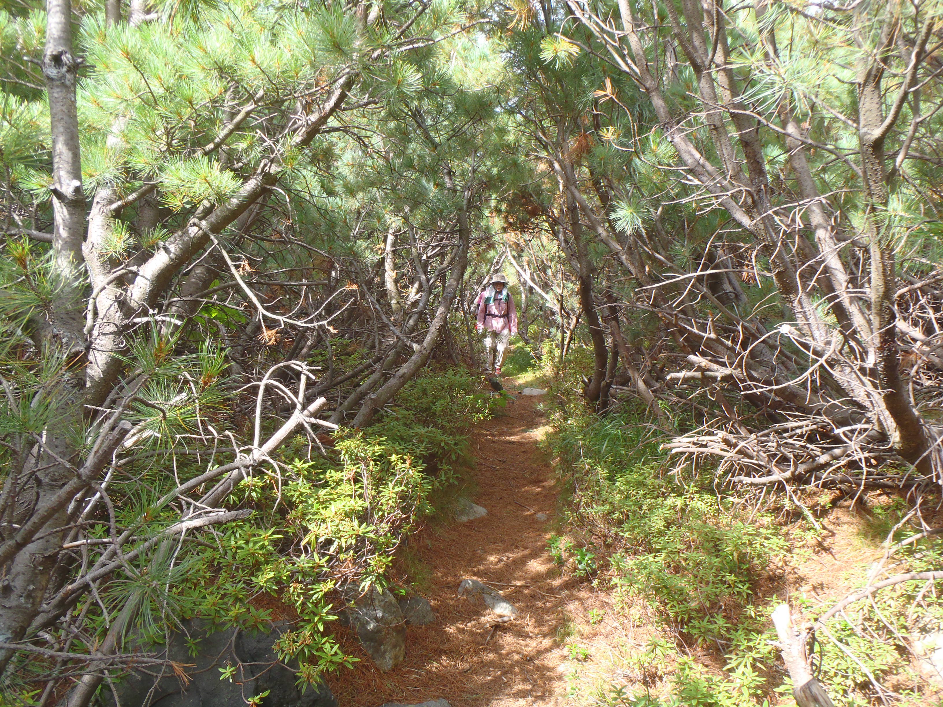 ハイ松帯を過ぎ、望岳台登山道の分岐で視界が開けた。