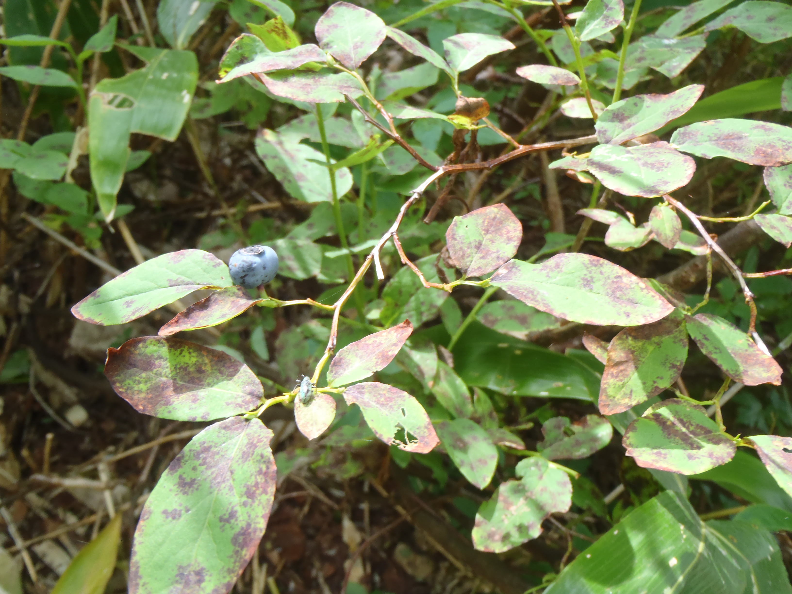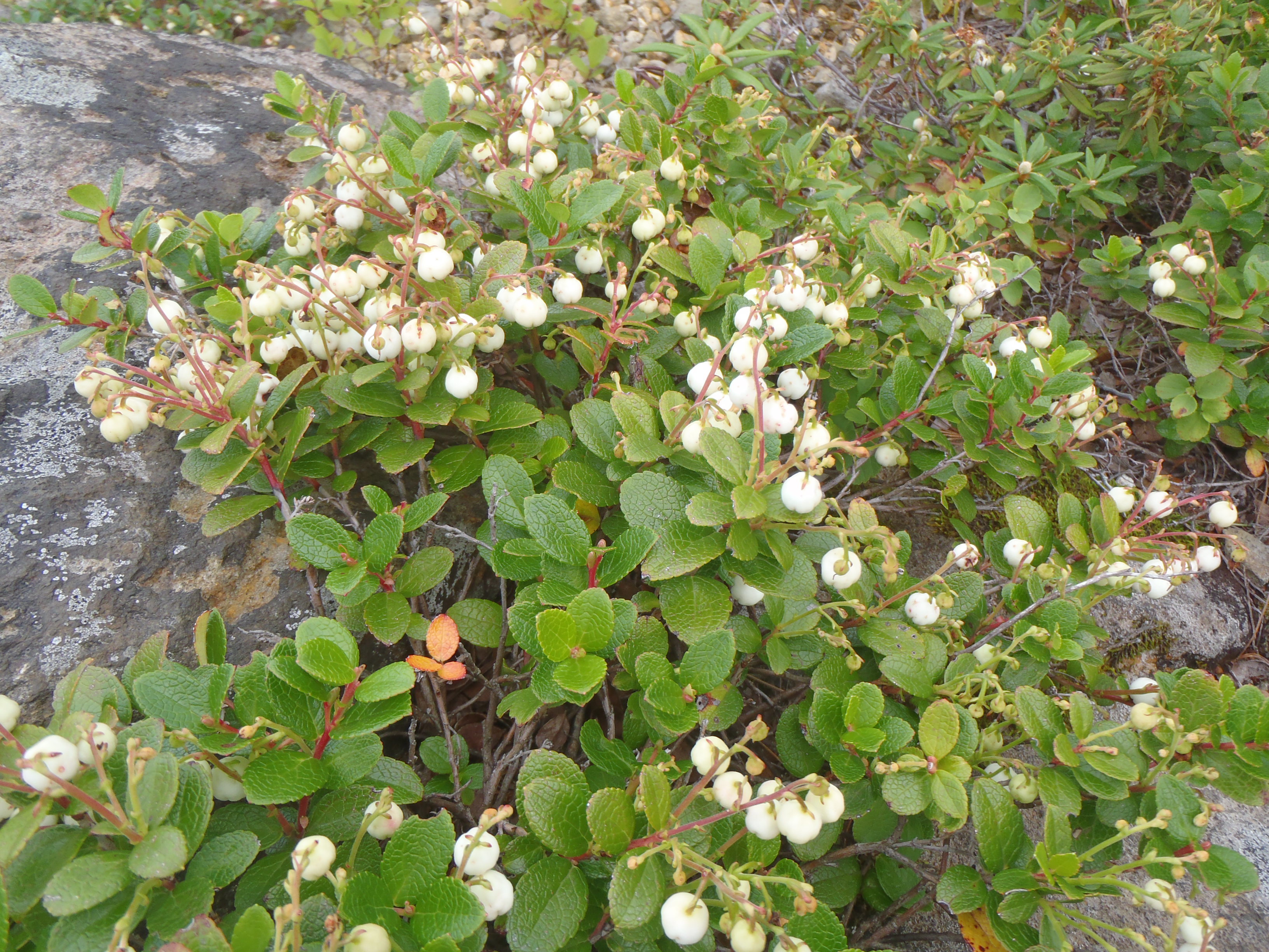 歩き始めて10分、クロウスゴ(野生のブルーベリー)頬張りながら歩きました。