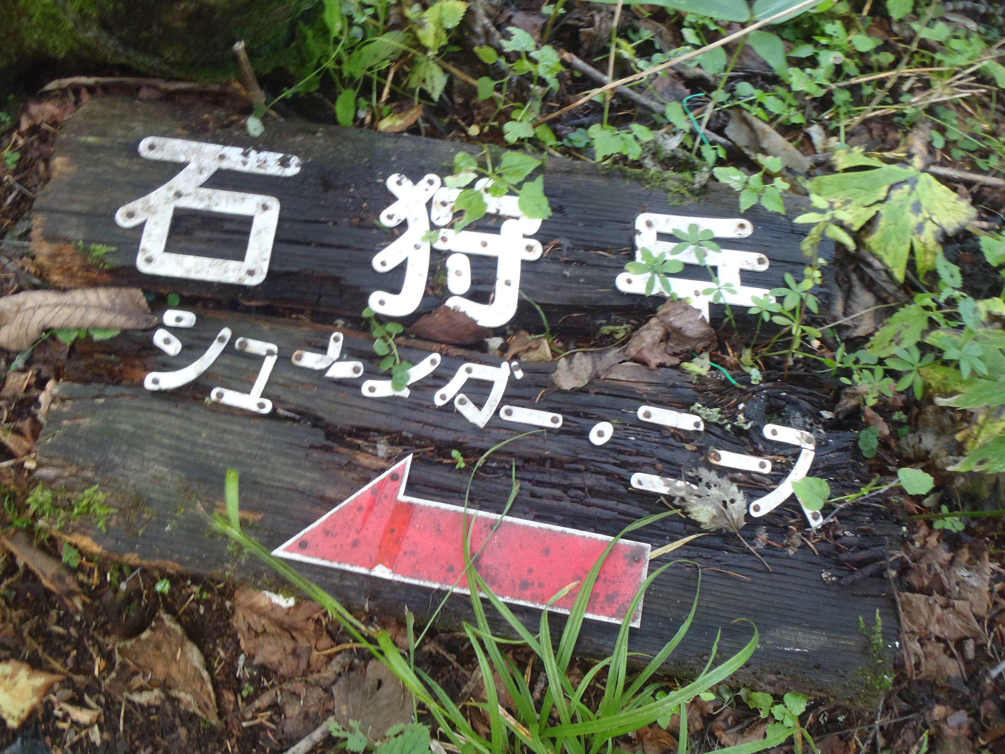 古い道標・・・アルミの文字プレートを丁寧に釘打ち 手間がかかっていました。
