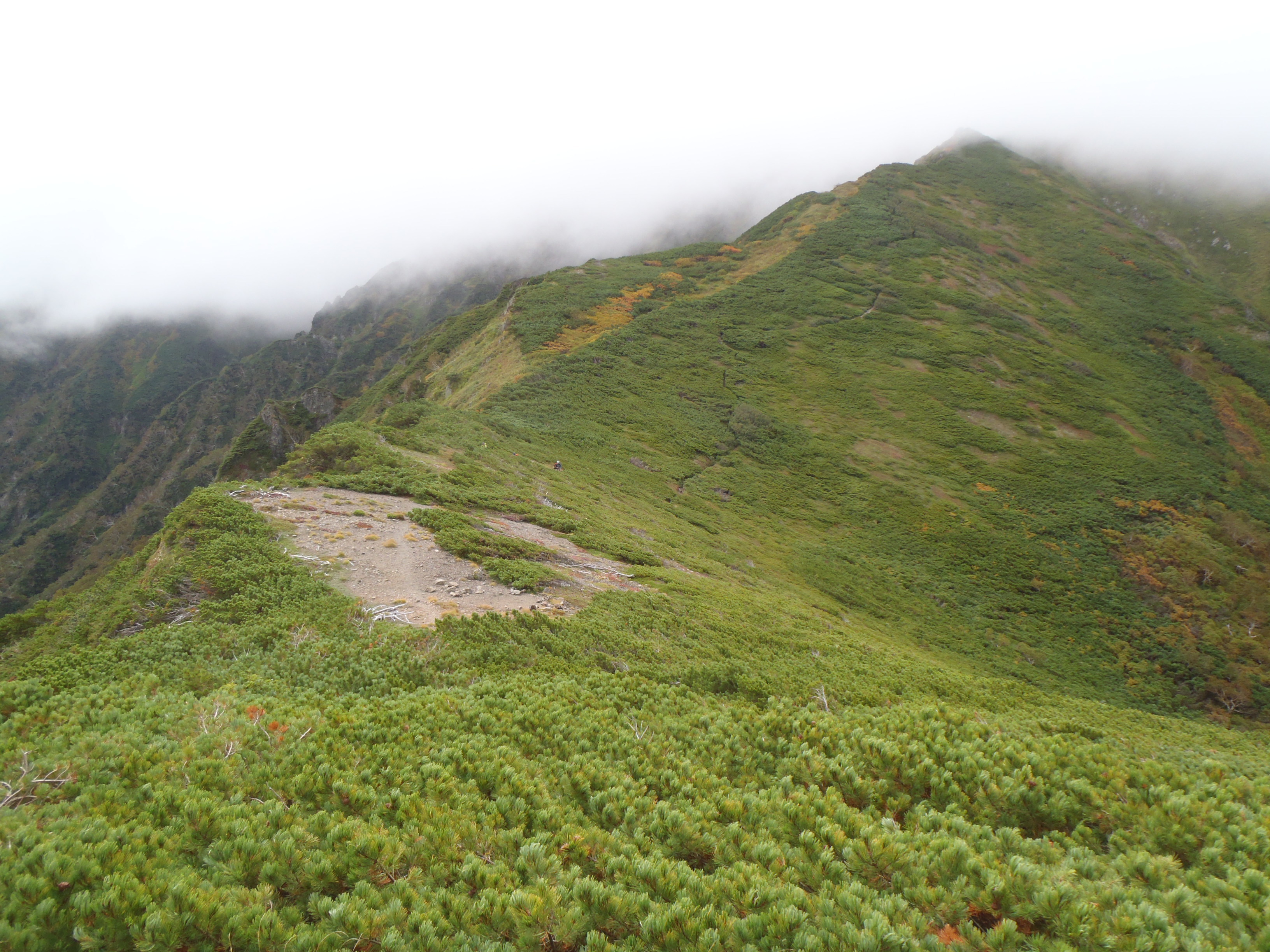 ガスは上がってきて視界は開けましたが山頂は雲の中。