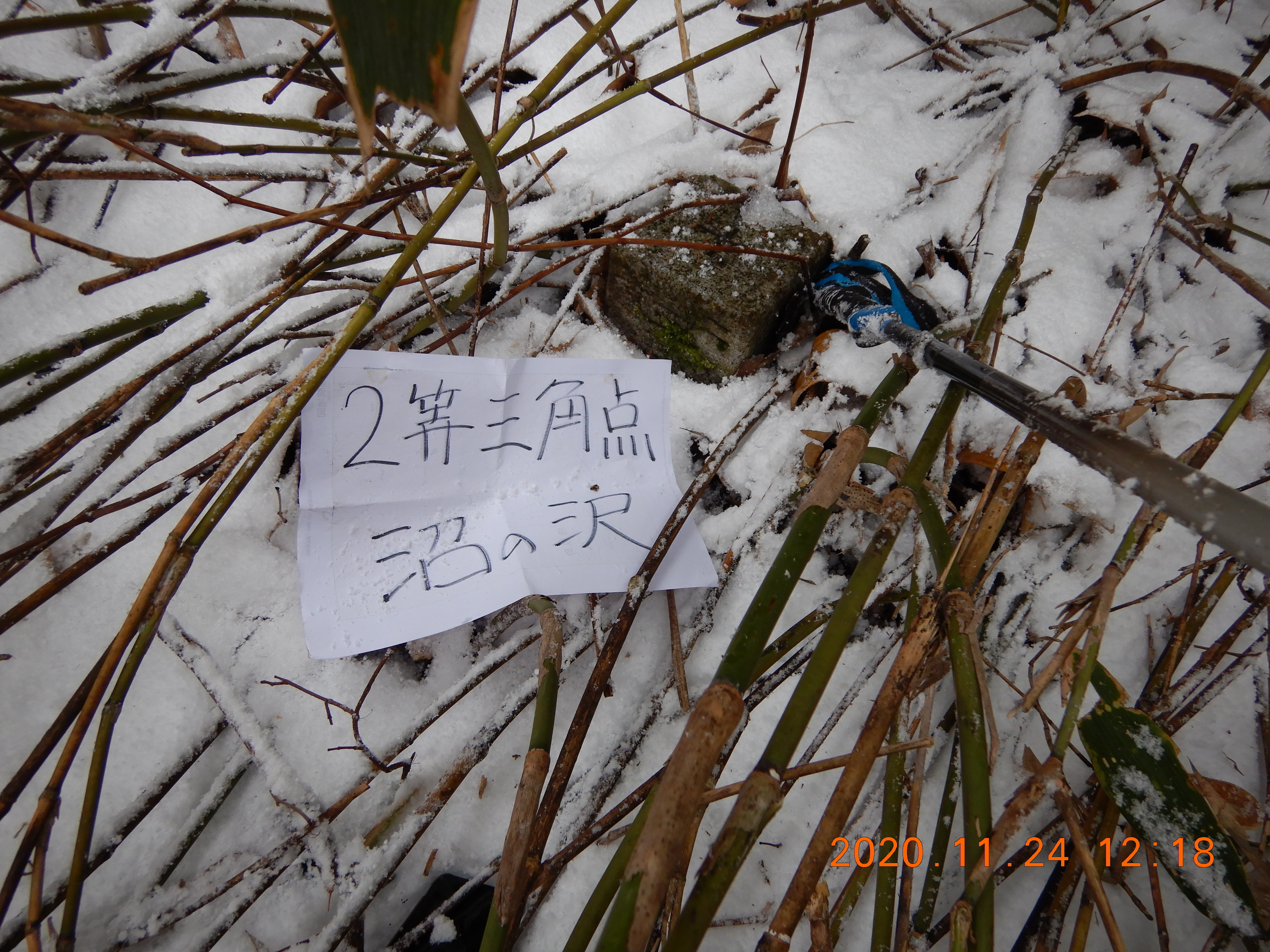 2周目で 倒れた笹薮の下に2等三角点「沼ノ沢」見つかりました。
