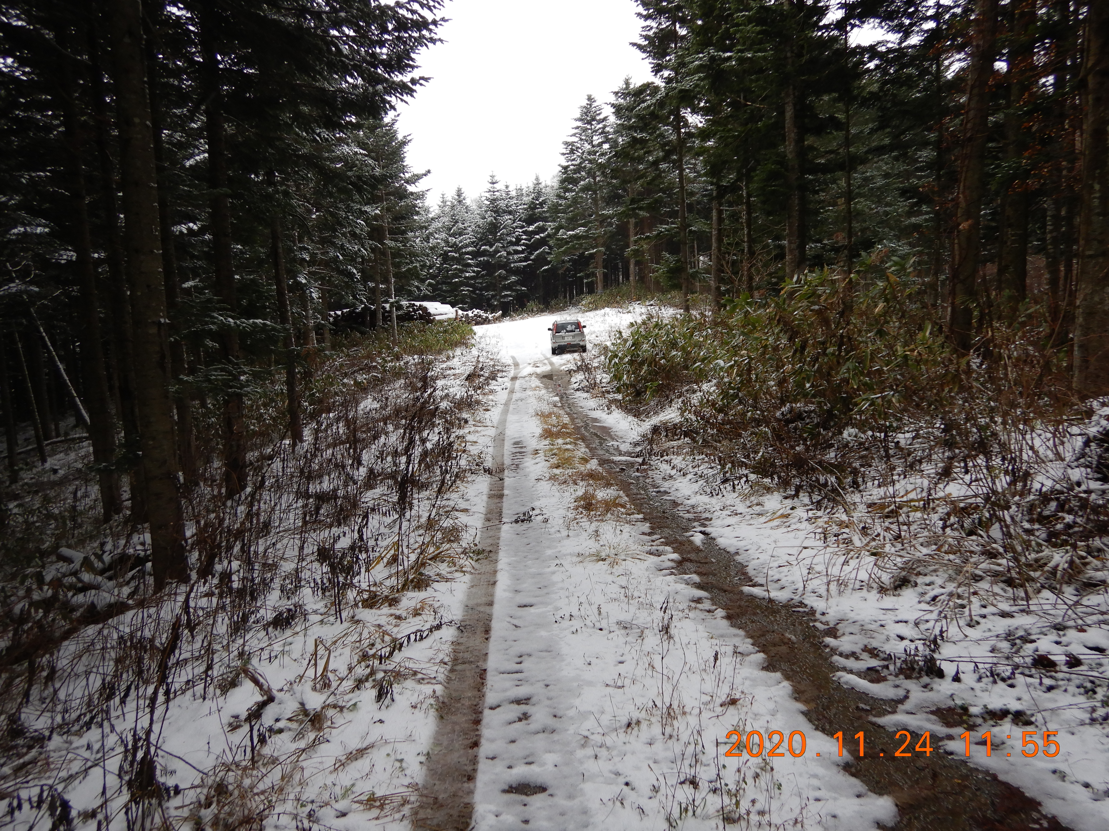 新しい轍があるので・・・やっぱり森林調査らしい車が入っていました。