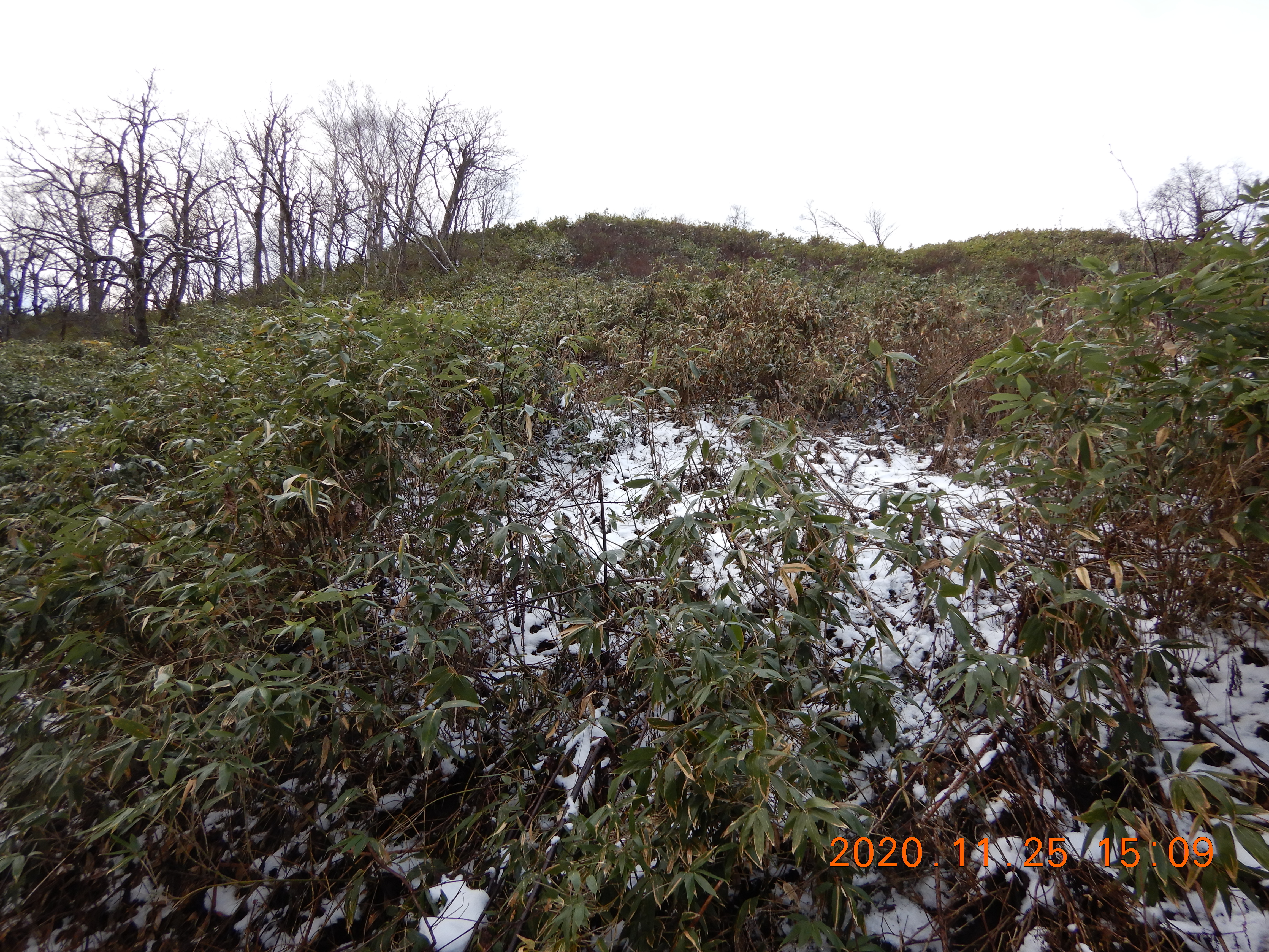 20分ほど藪漕ぎして山頂近くの尾根に来ました。
