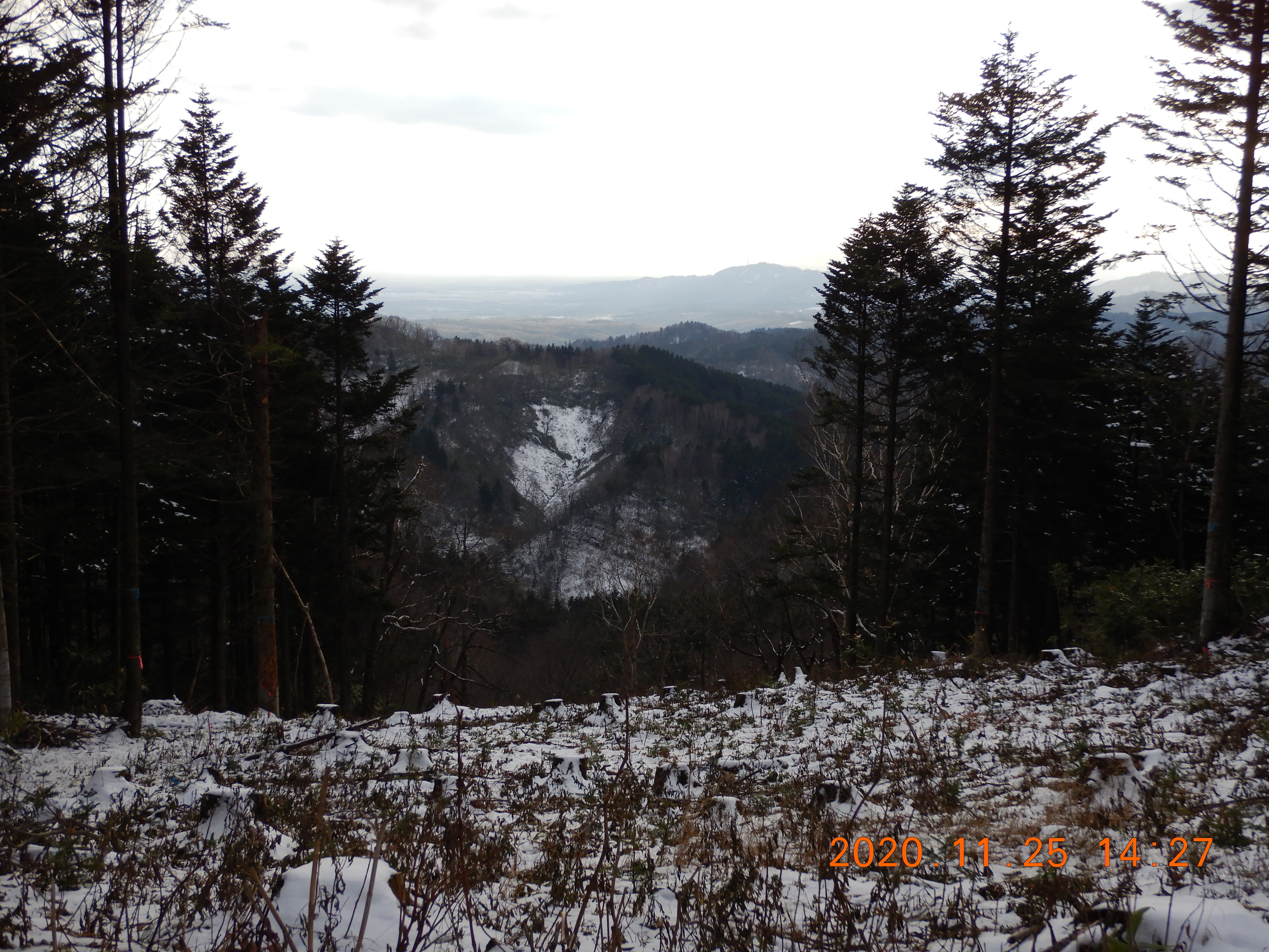 石狩平野の向こうに美唄山がみえましたが・・・手前の山並みにピントが合って写真には映っていません。