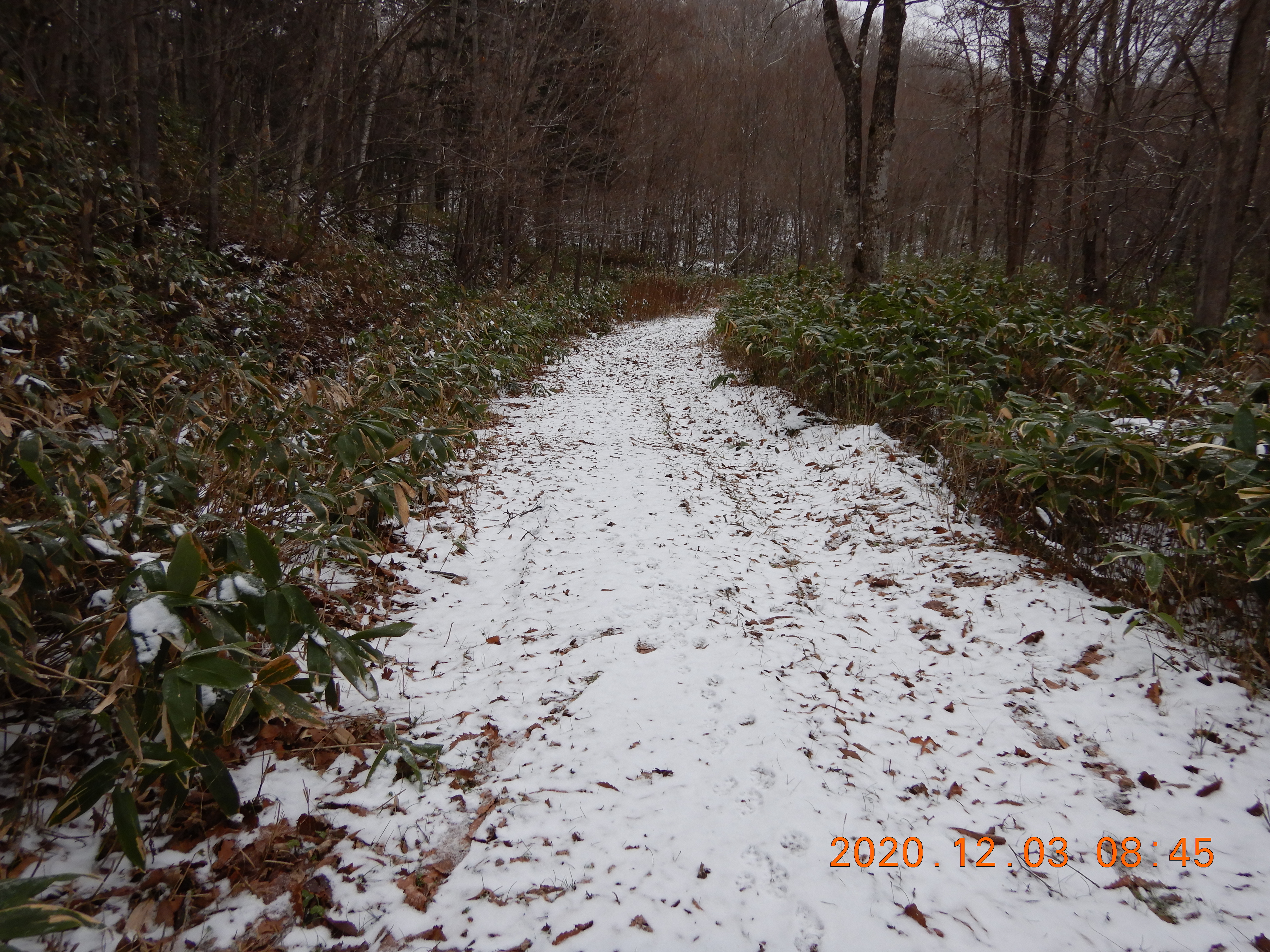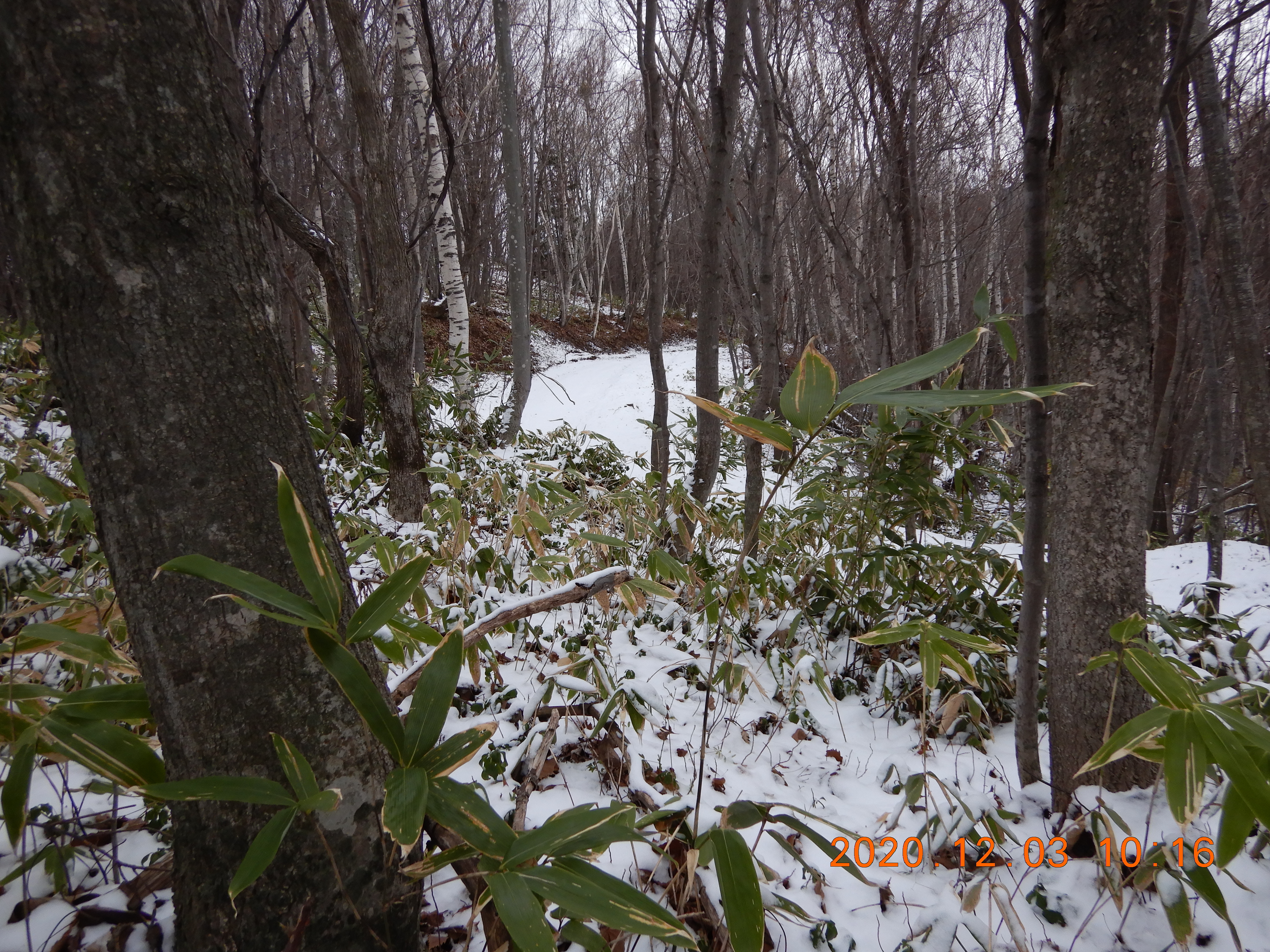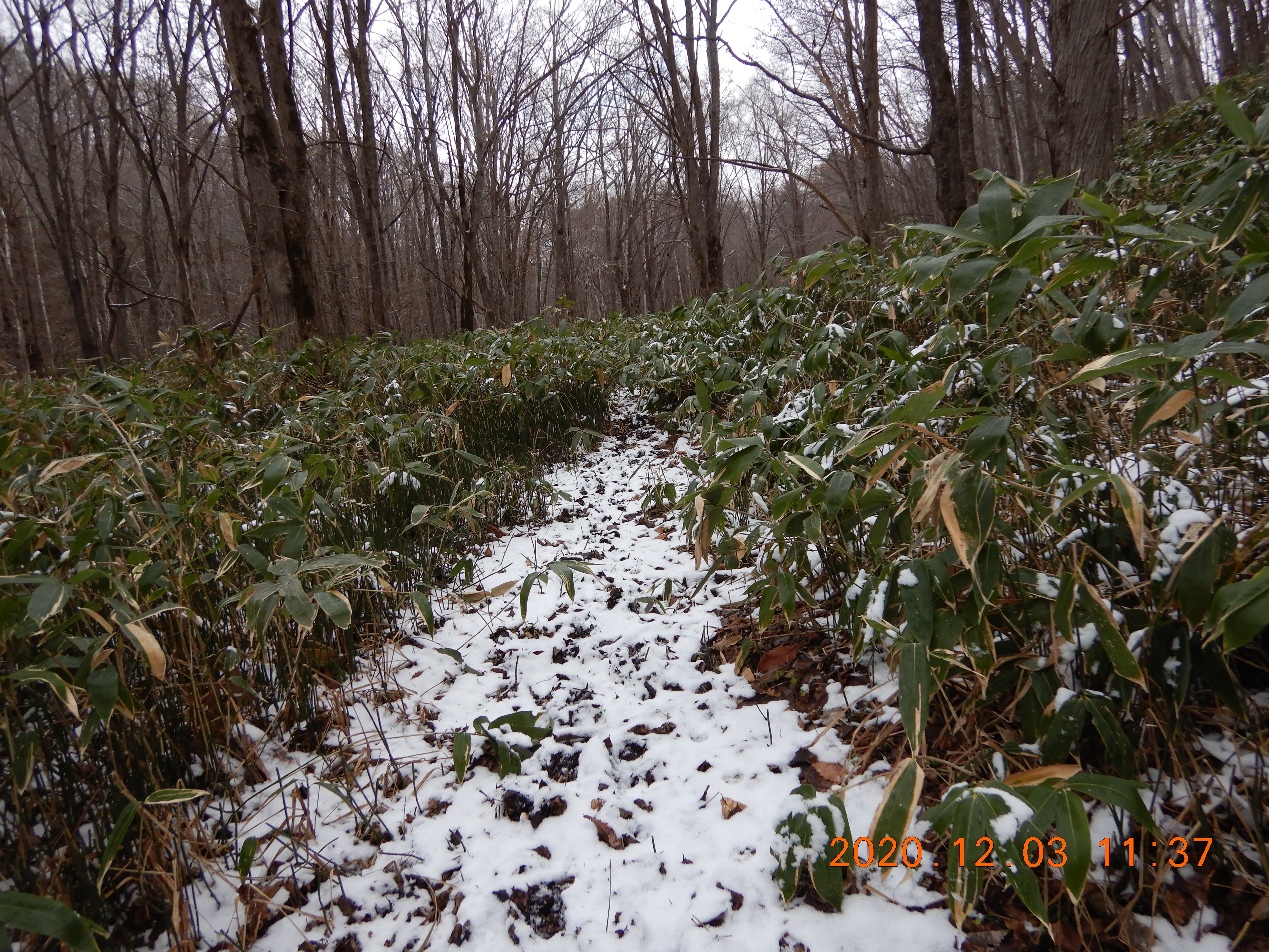天気は曇で気温は3℃くらい 雪が薄っすら積もっていました。(下山時に撮影)
