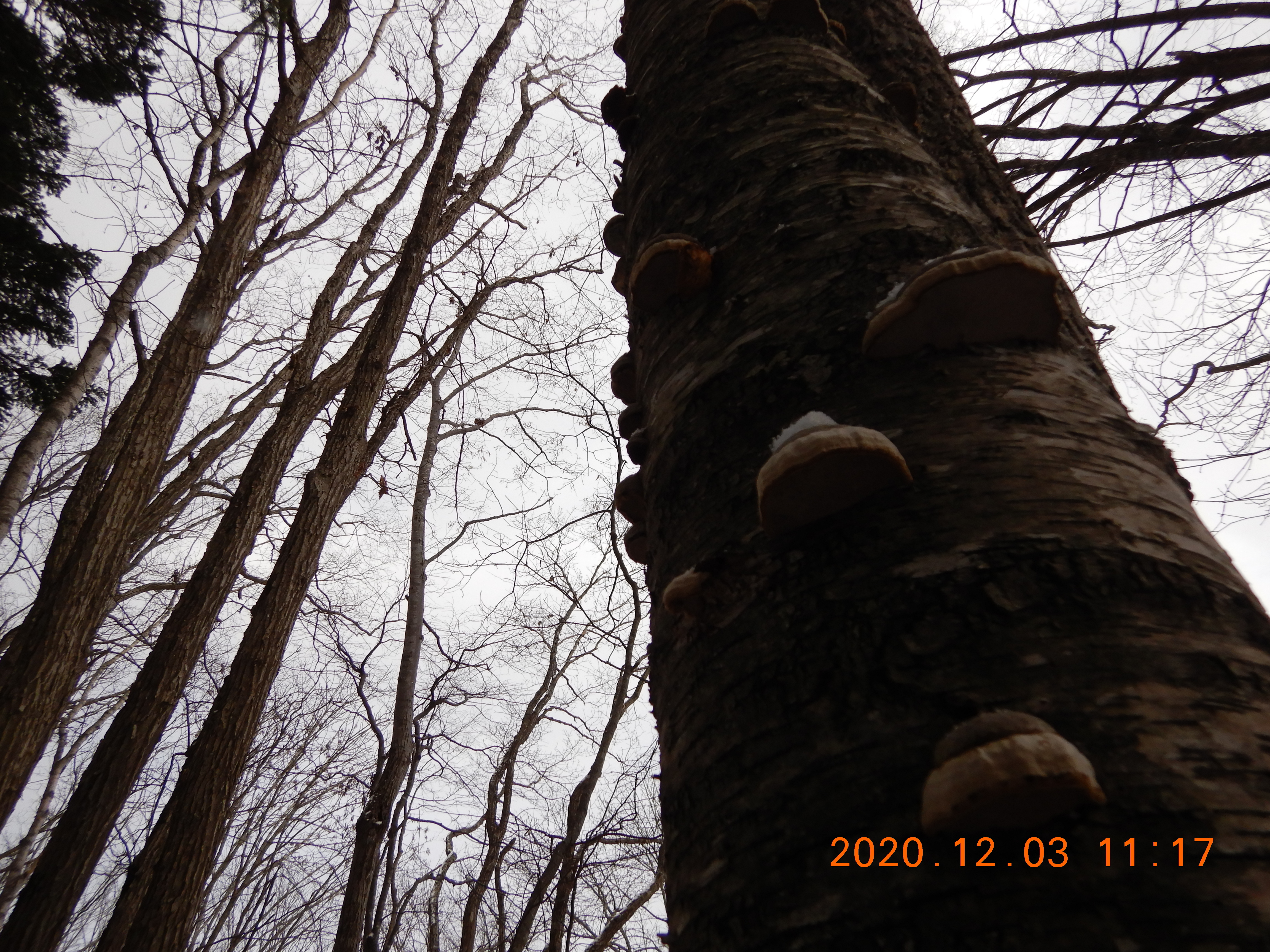 ウダイカンバに小さなサルノコシカケ 所狭しと群生していました。