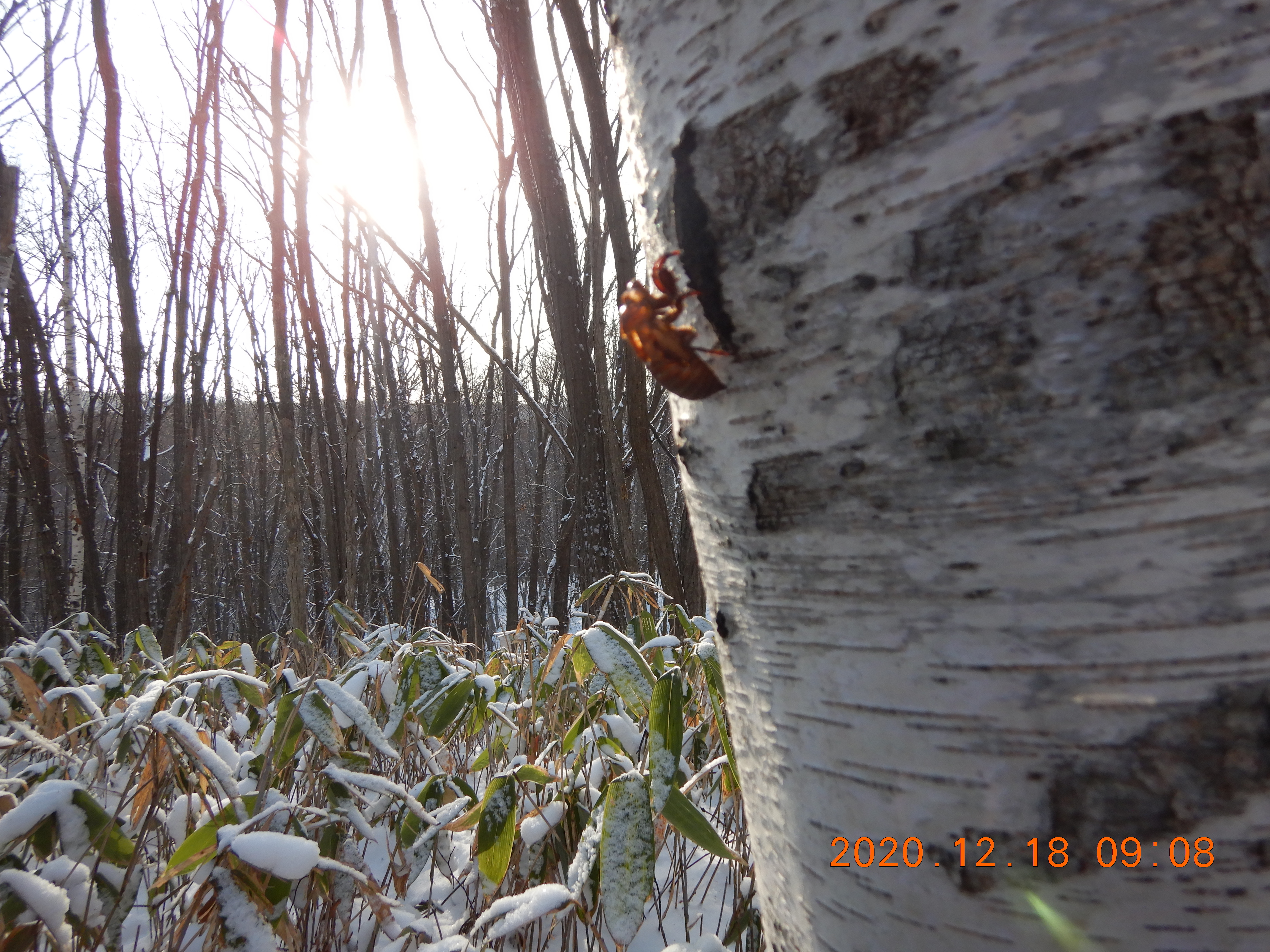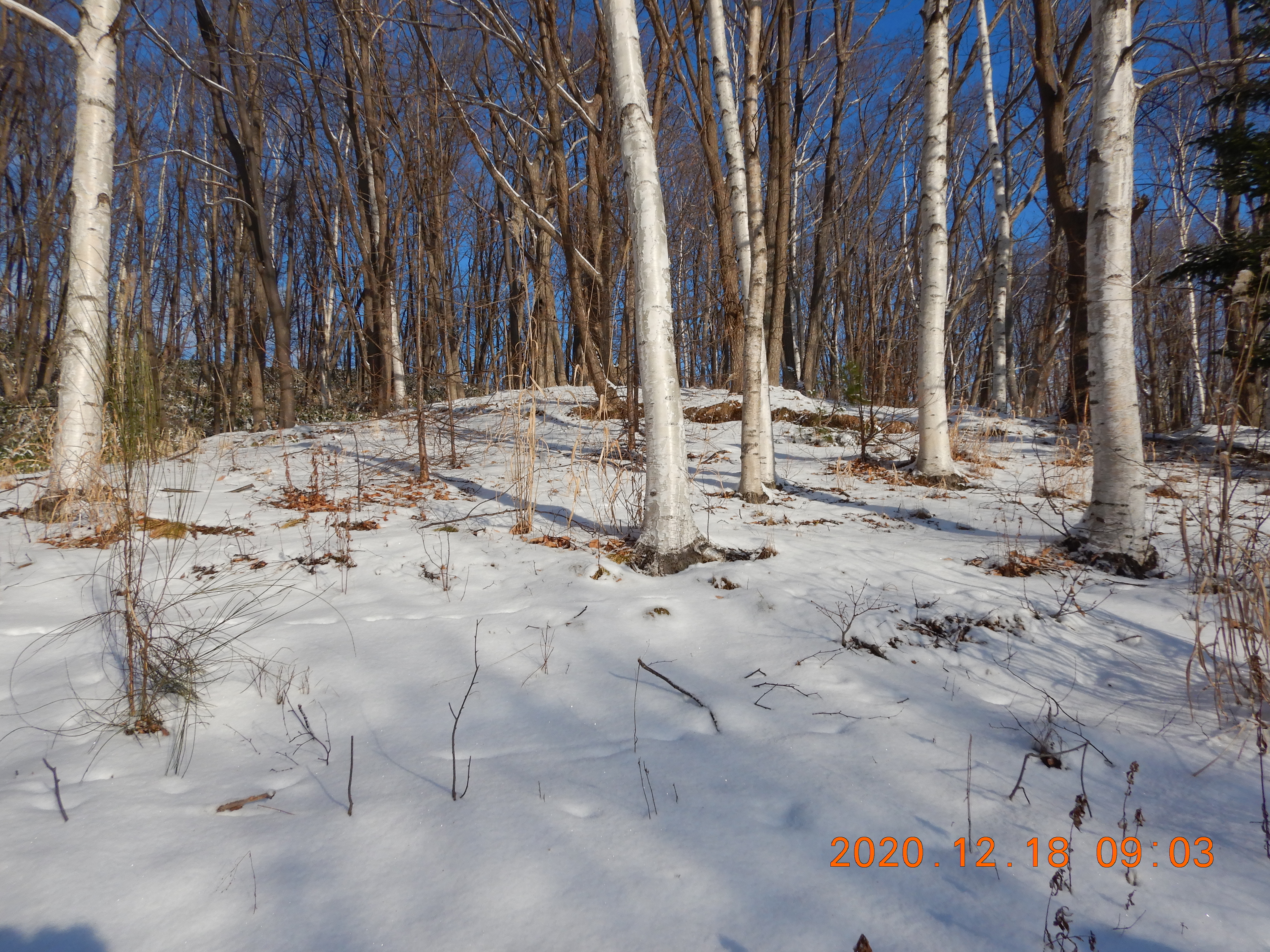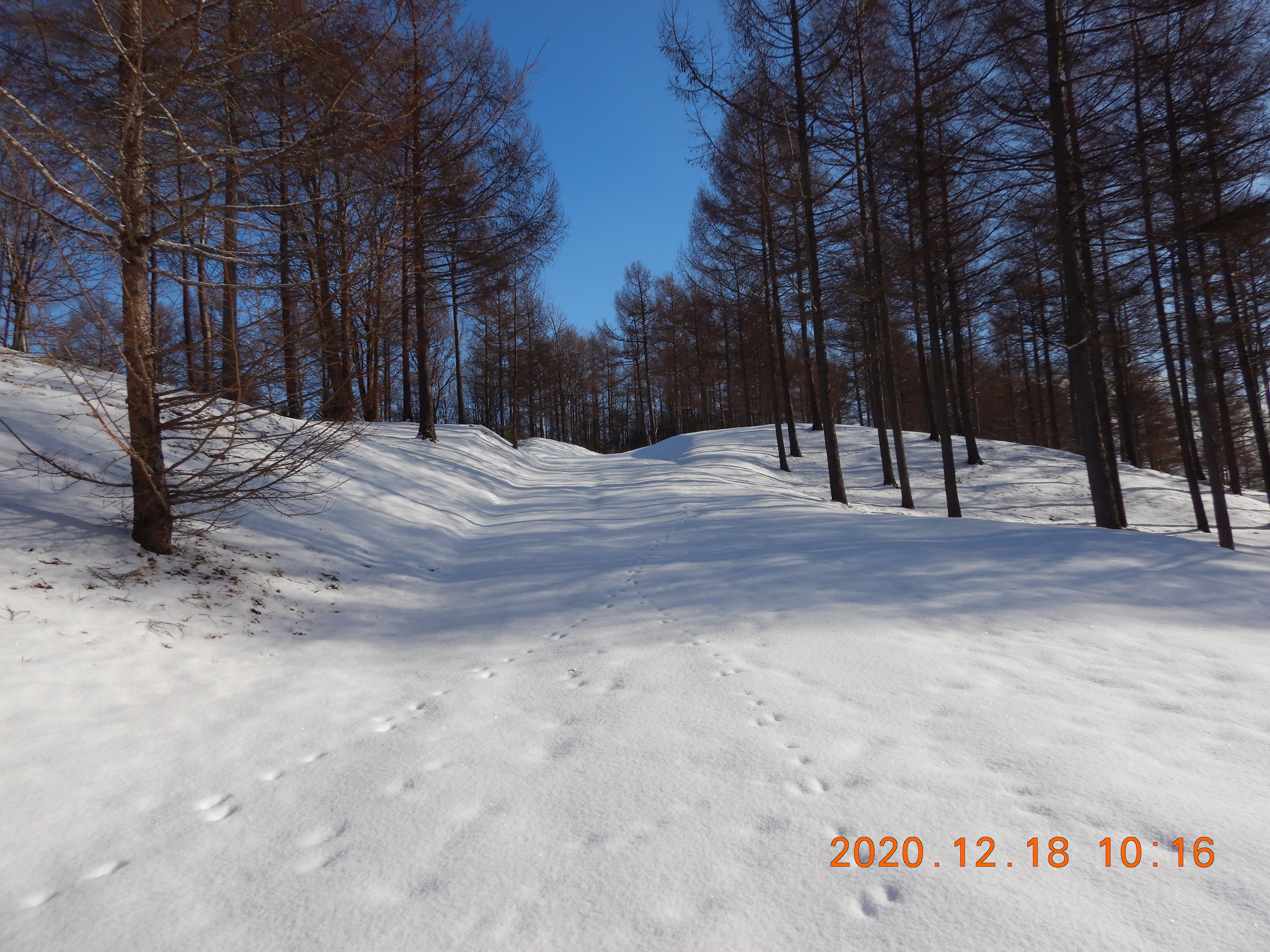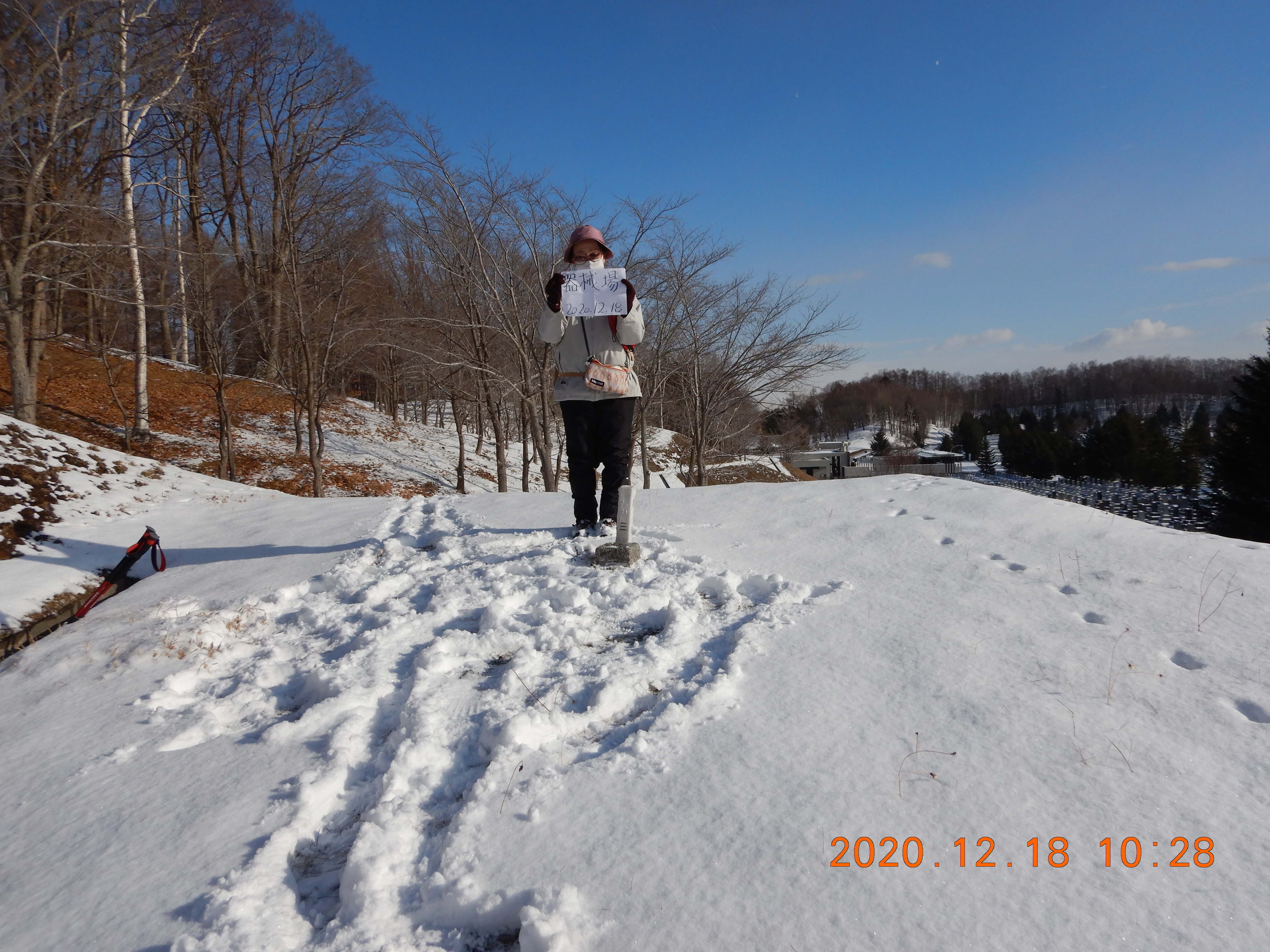 市立大学の裏山から稜線めがけて凍り付いた斜面を恐る恐る登りました。