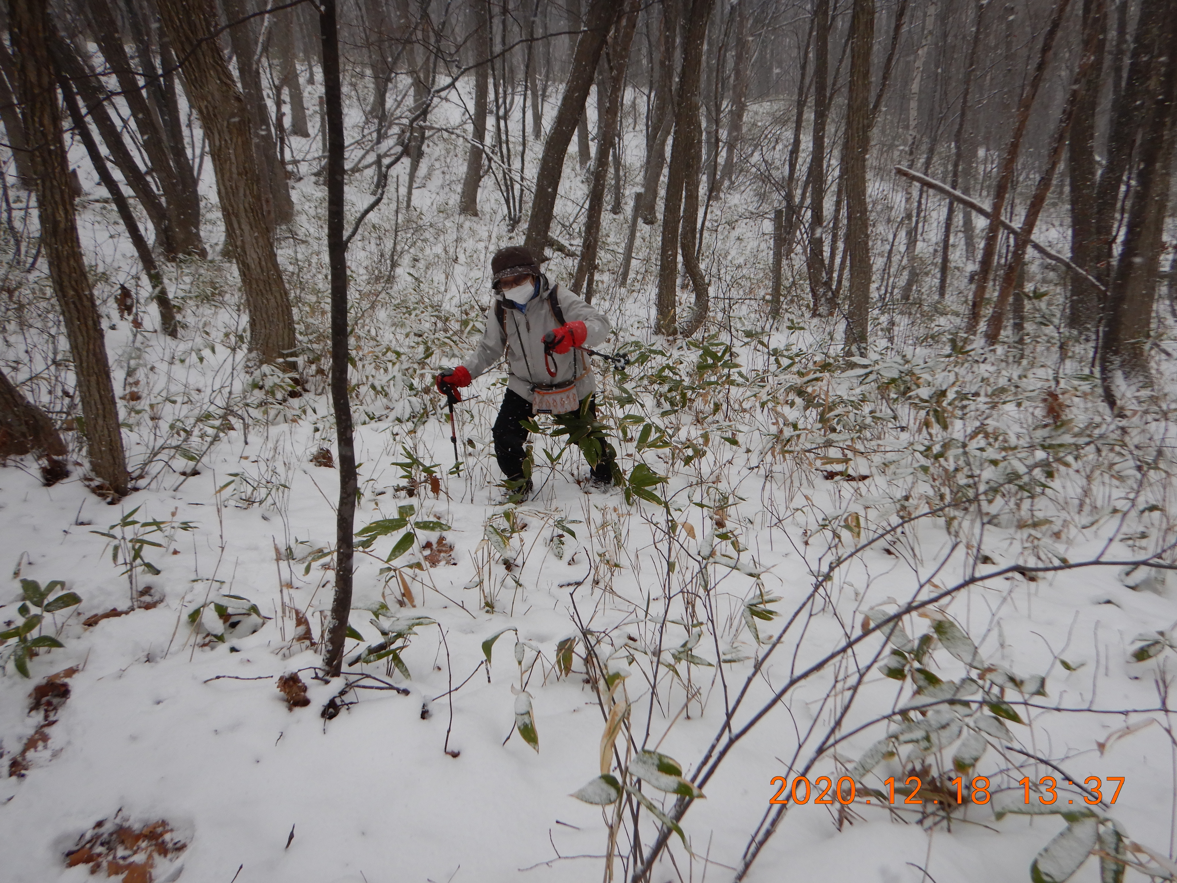 尾根に上がったら笹漕ぎで 汗がにじむほど頑張りました。