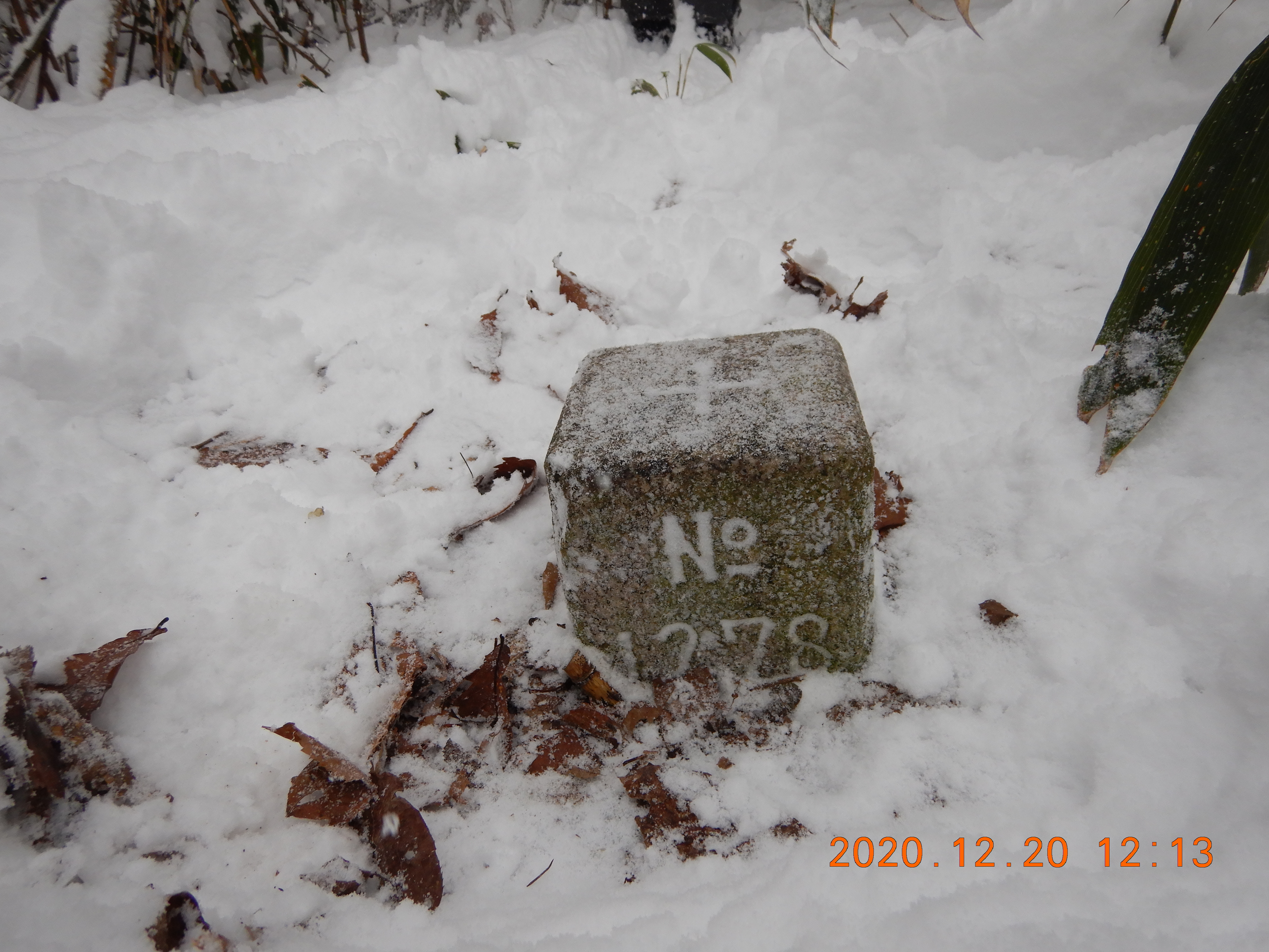 凍り付いていた蓋をこじ開けたら お宝のように標柱が現れました。