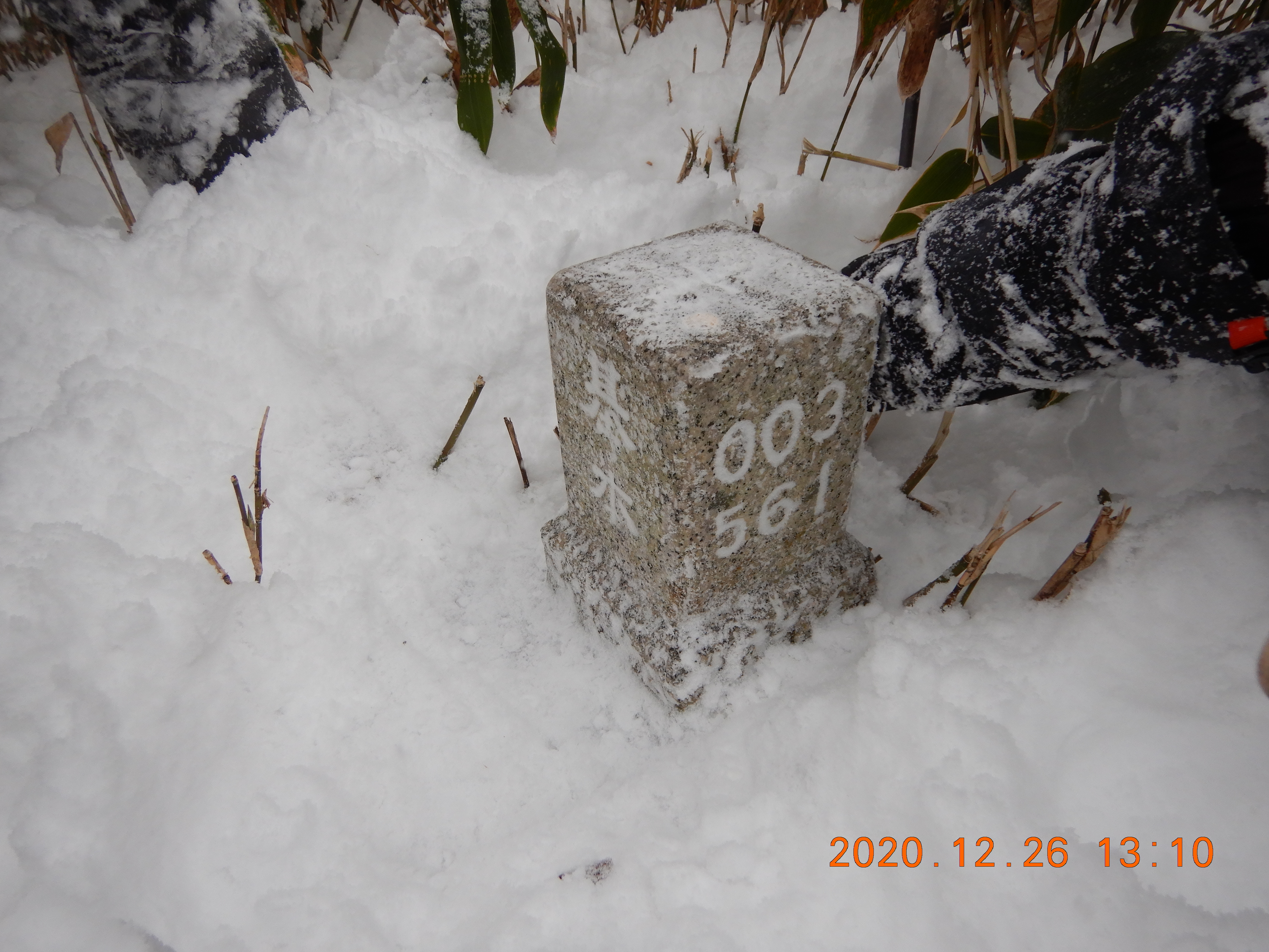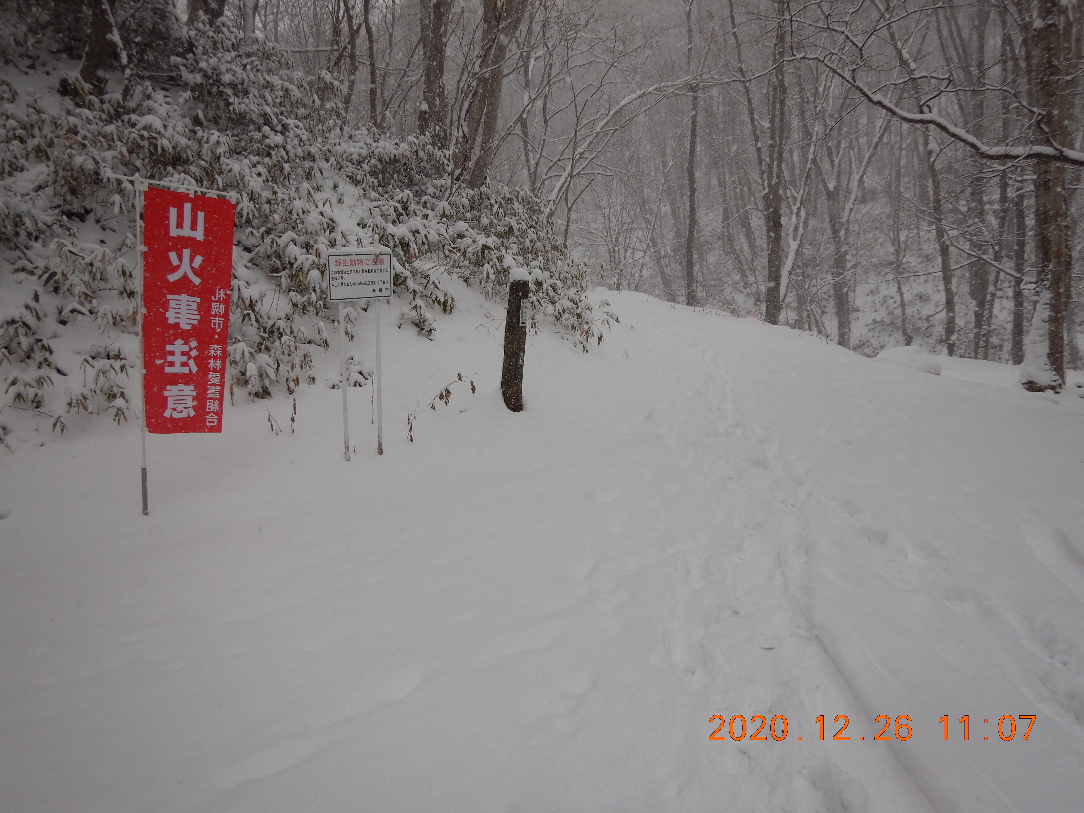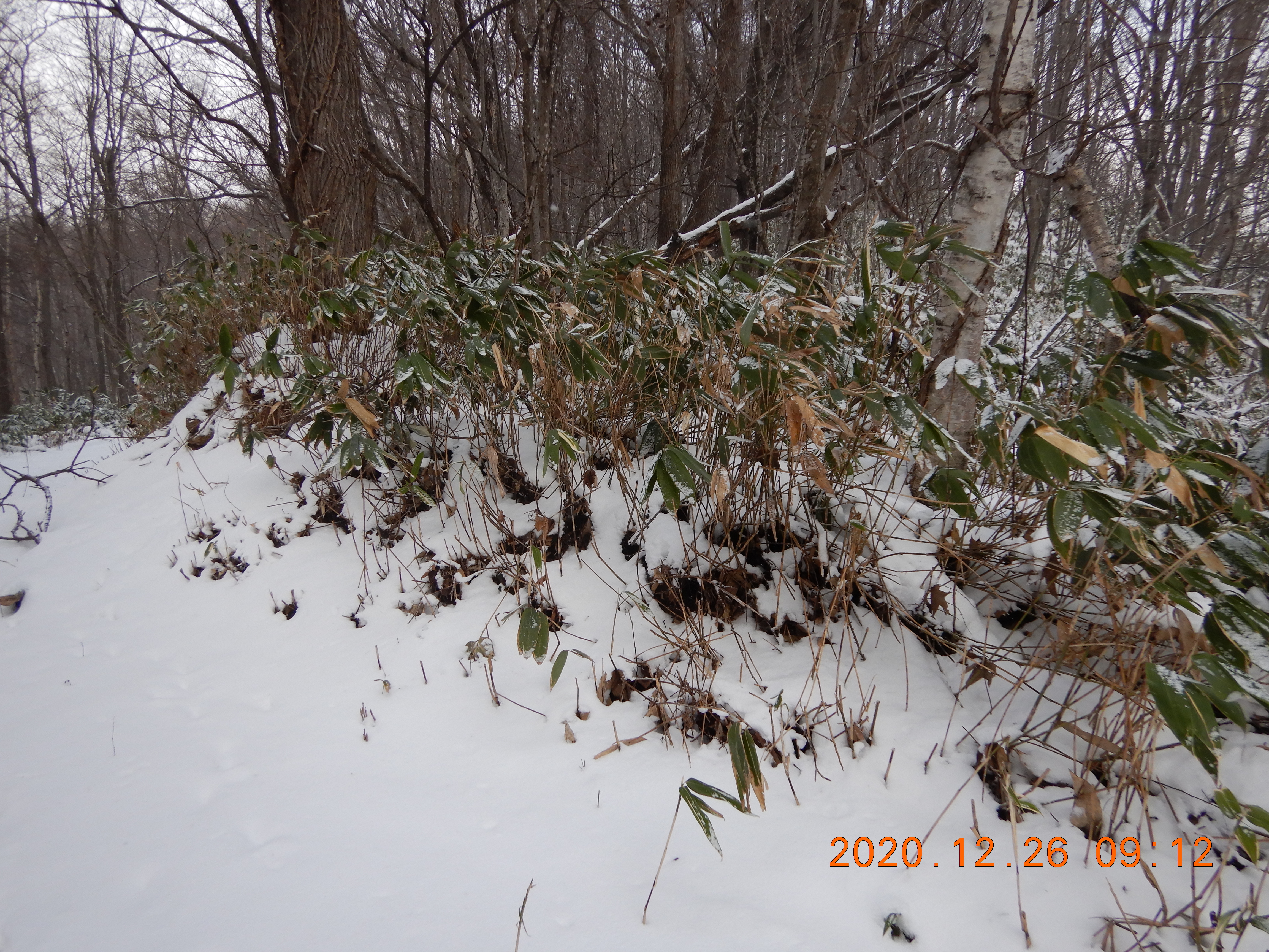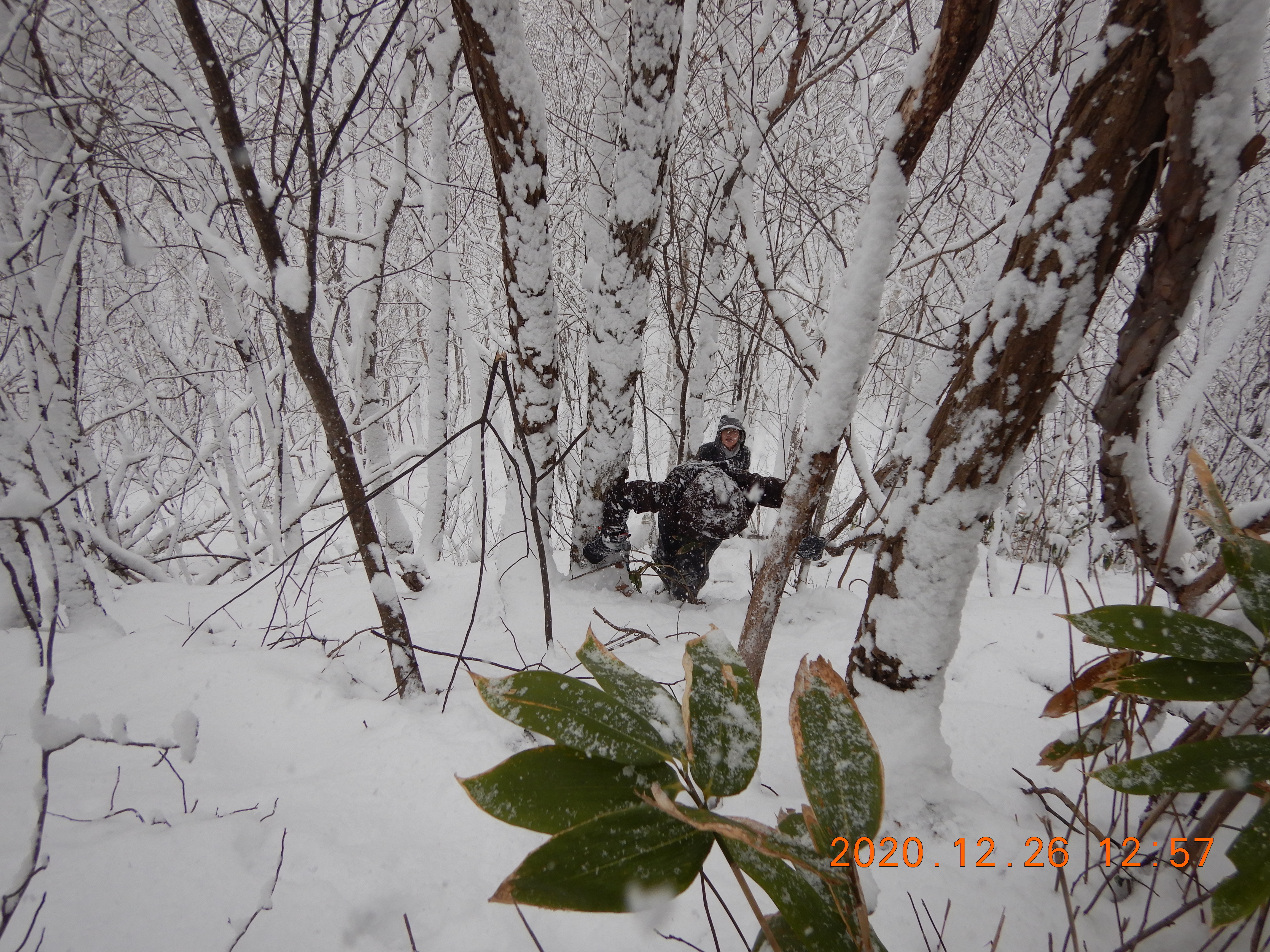 登山道を離れ植林地帯に入ったら膝までのラッセルでした。