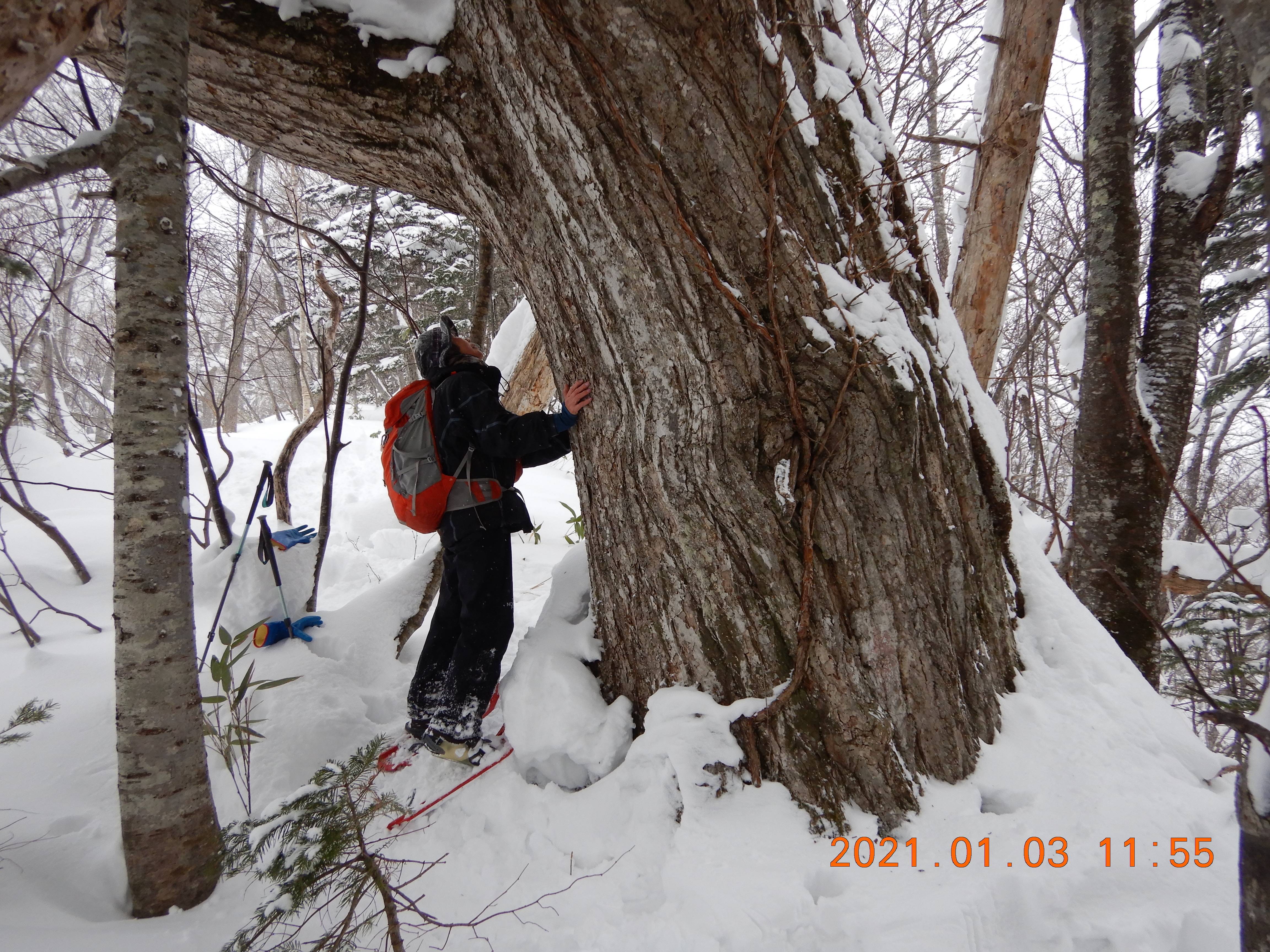 帰路 気が付いたポコ付近のミズナラの巨木。