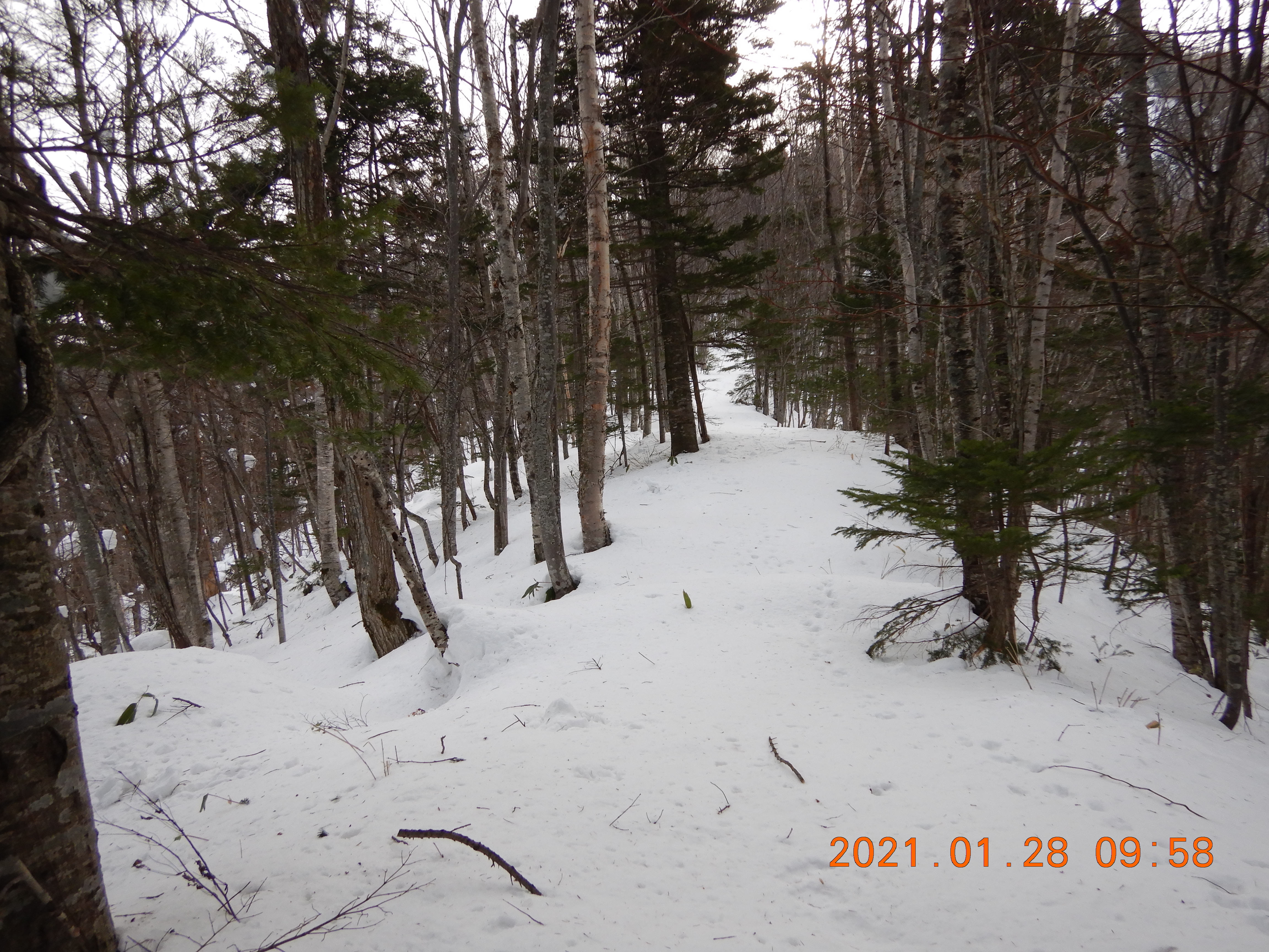 ヘアピンカーブから尾根に取りつくと作業道が出てきてラッキー!