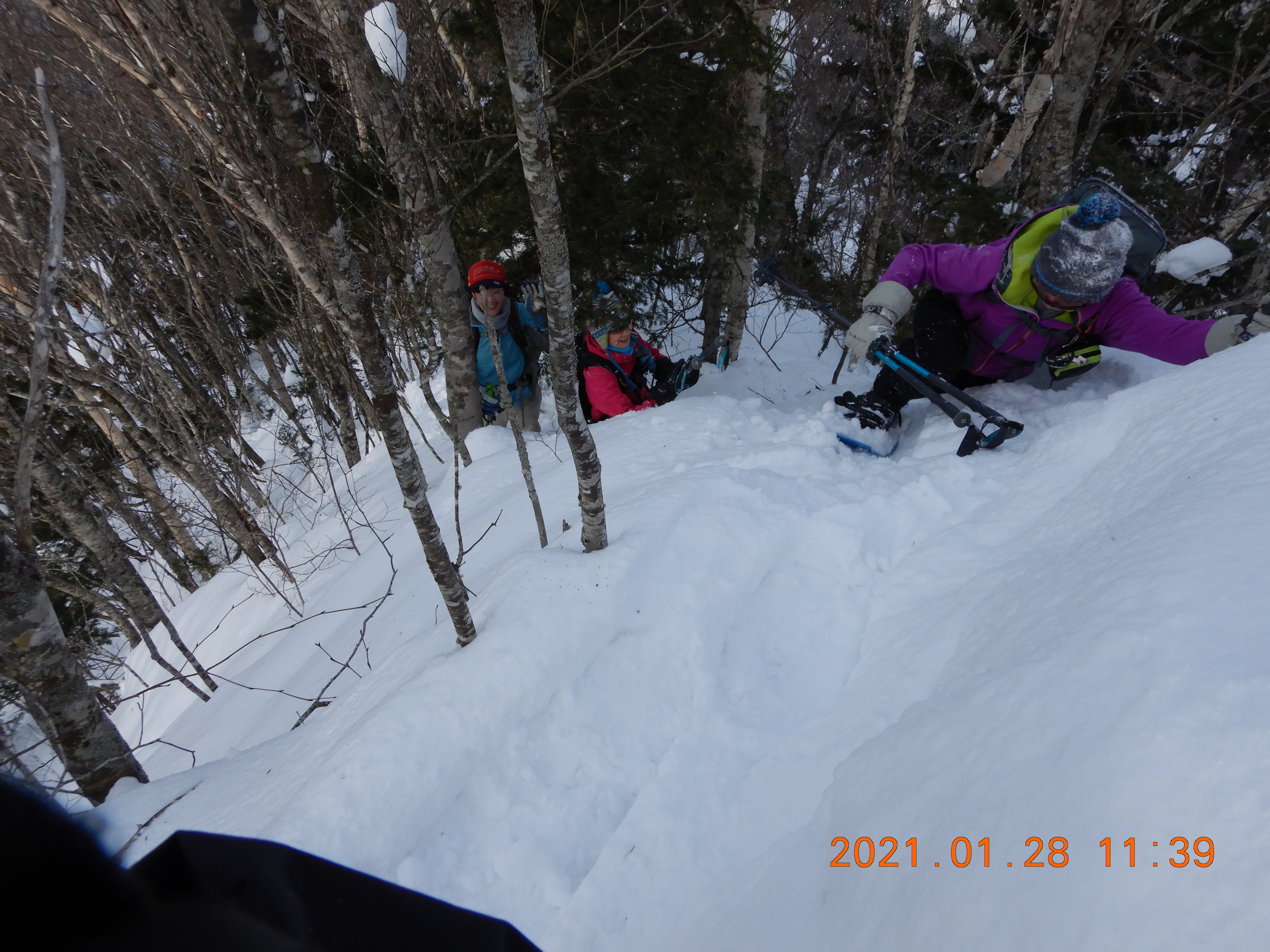 モナカ雪なので スノーシューのステップが崩れて ヒェ~。