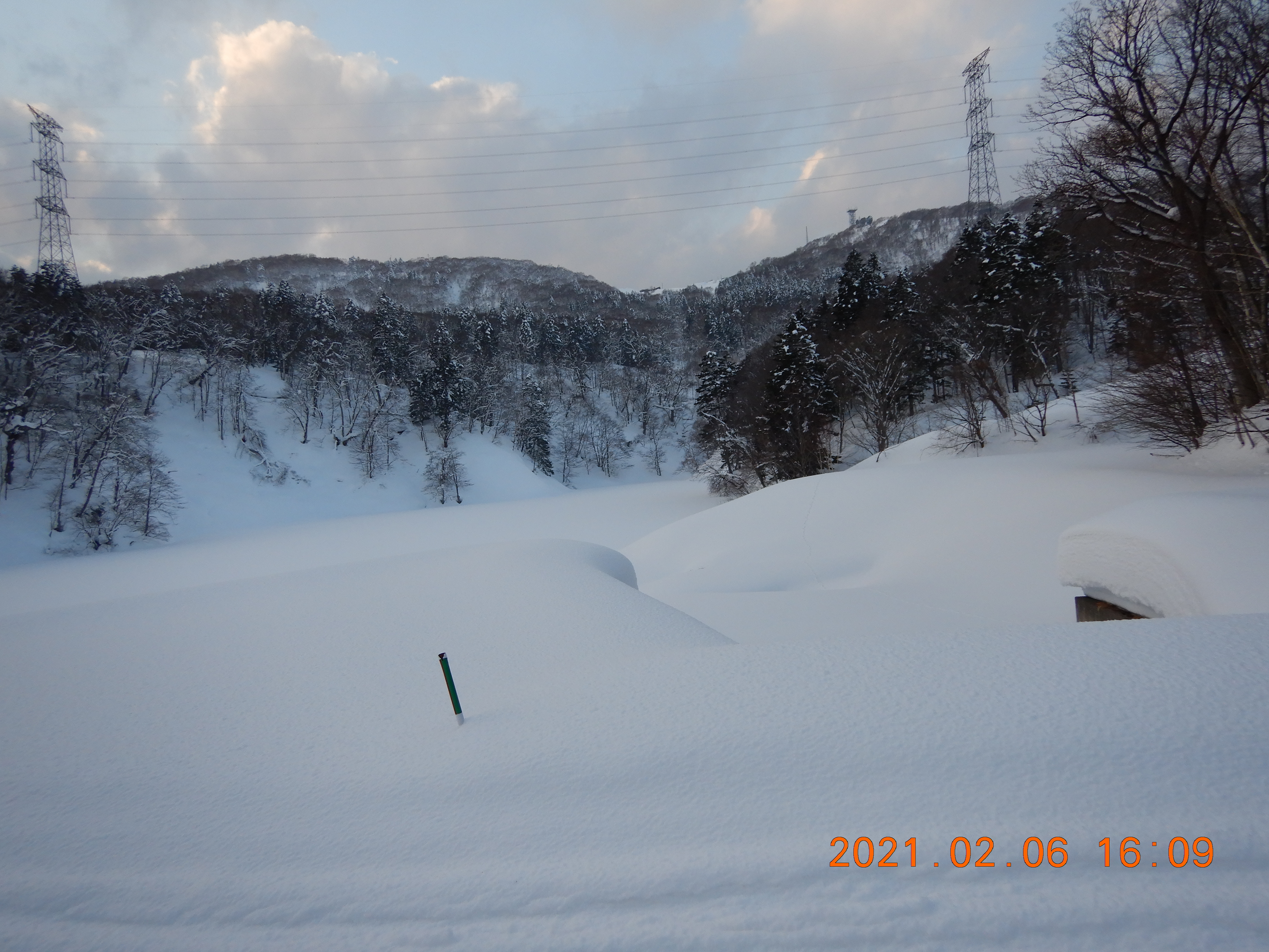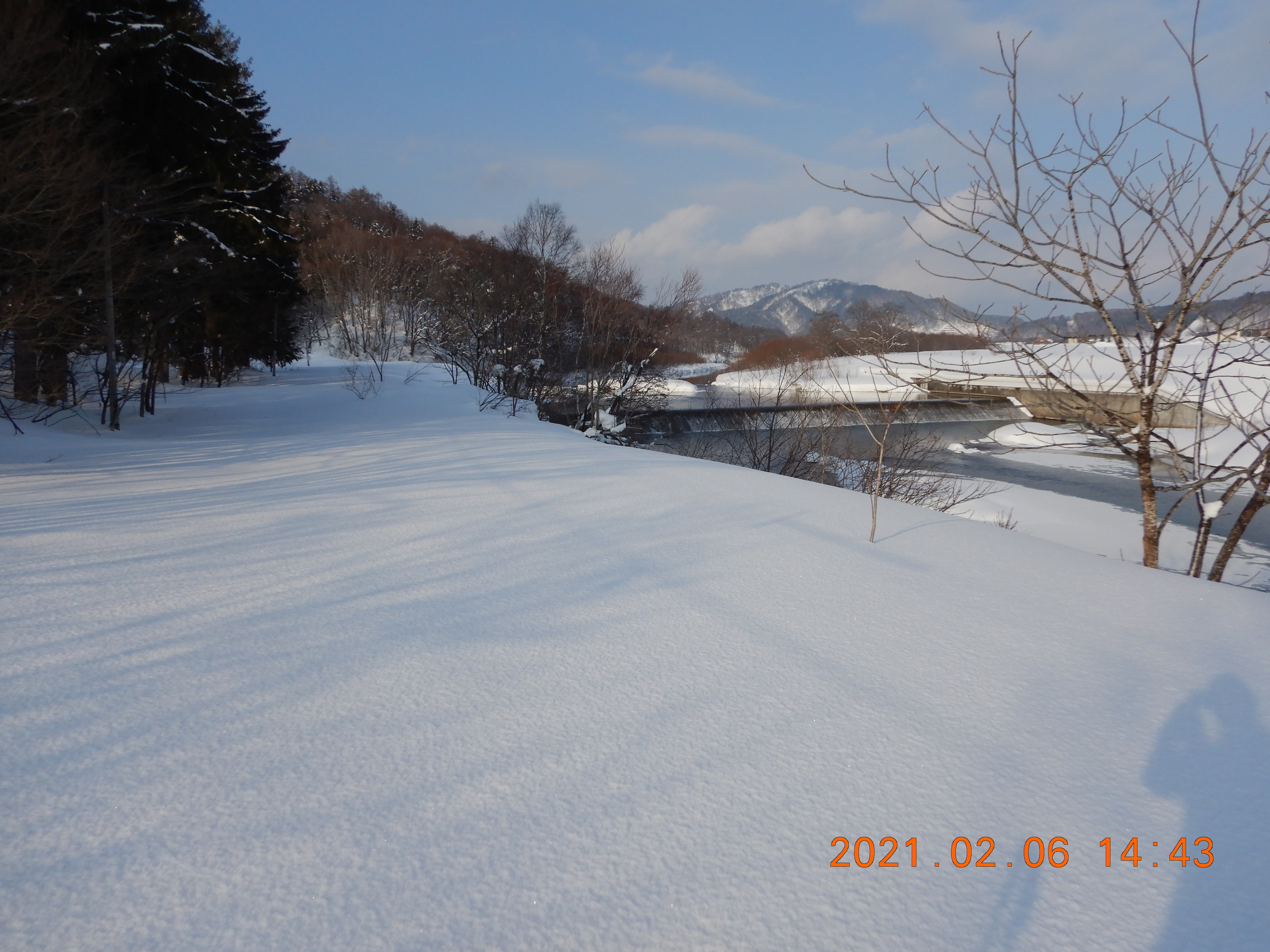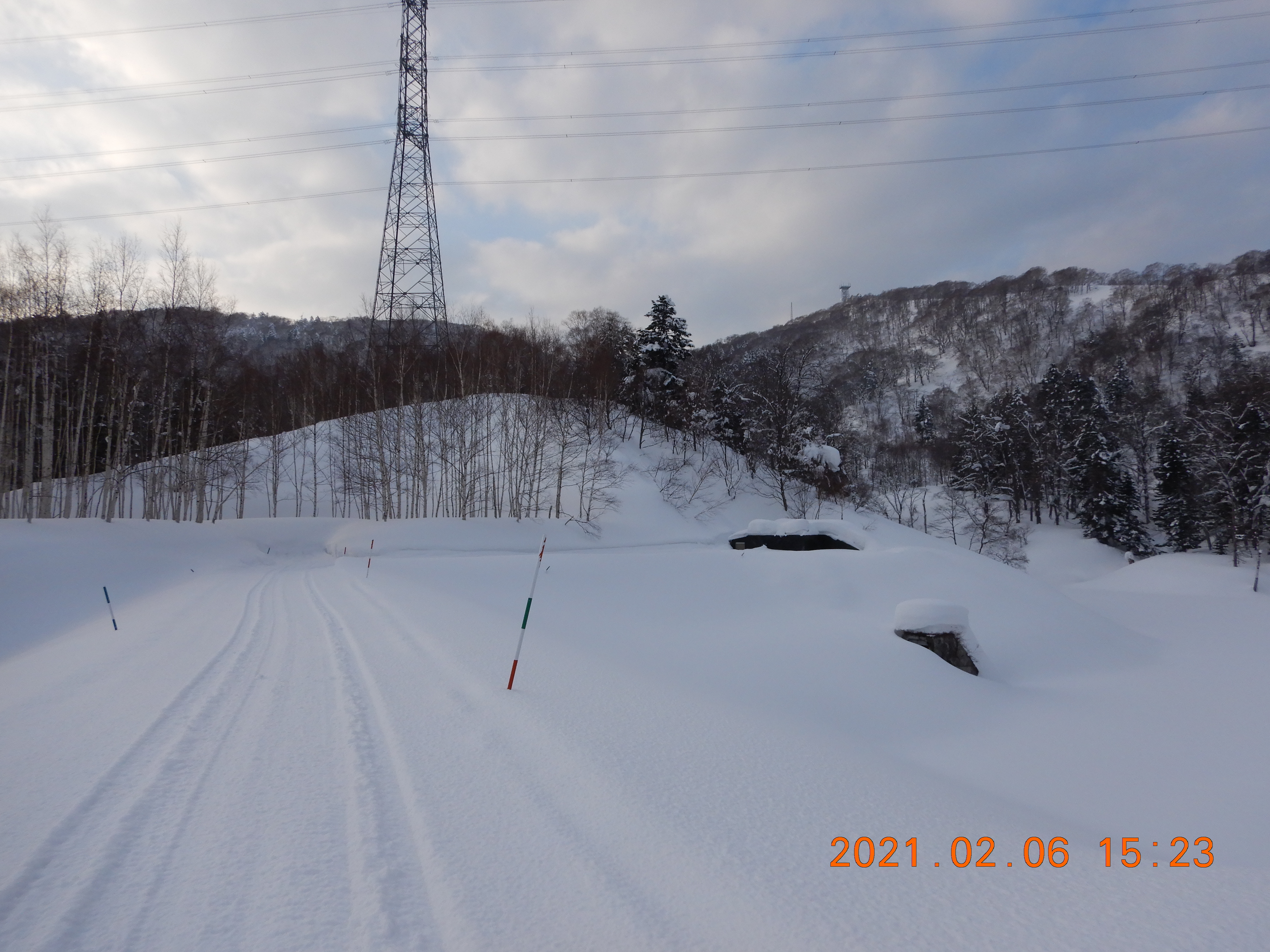 「怪しい施設」の横を通り抜けて尾根に出たら・・・予想通りなかなかイイ斜面が広がっていました。