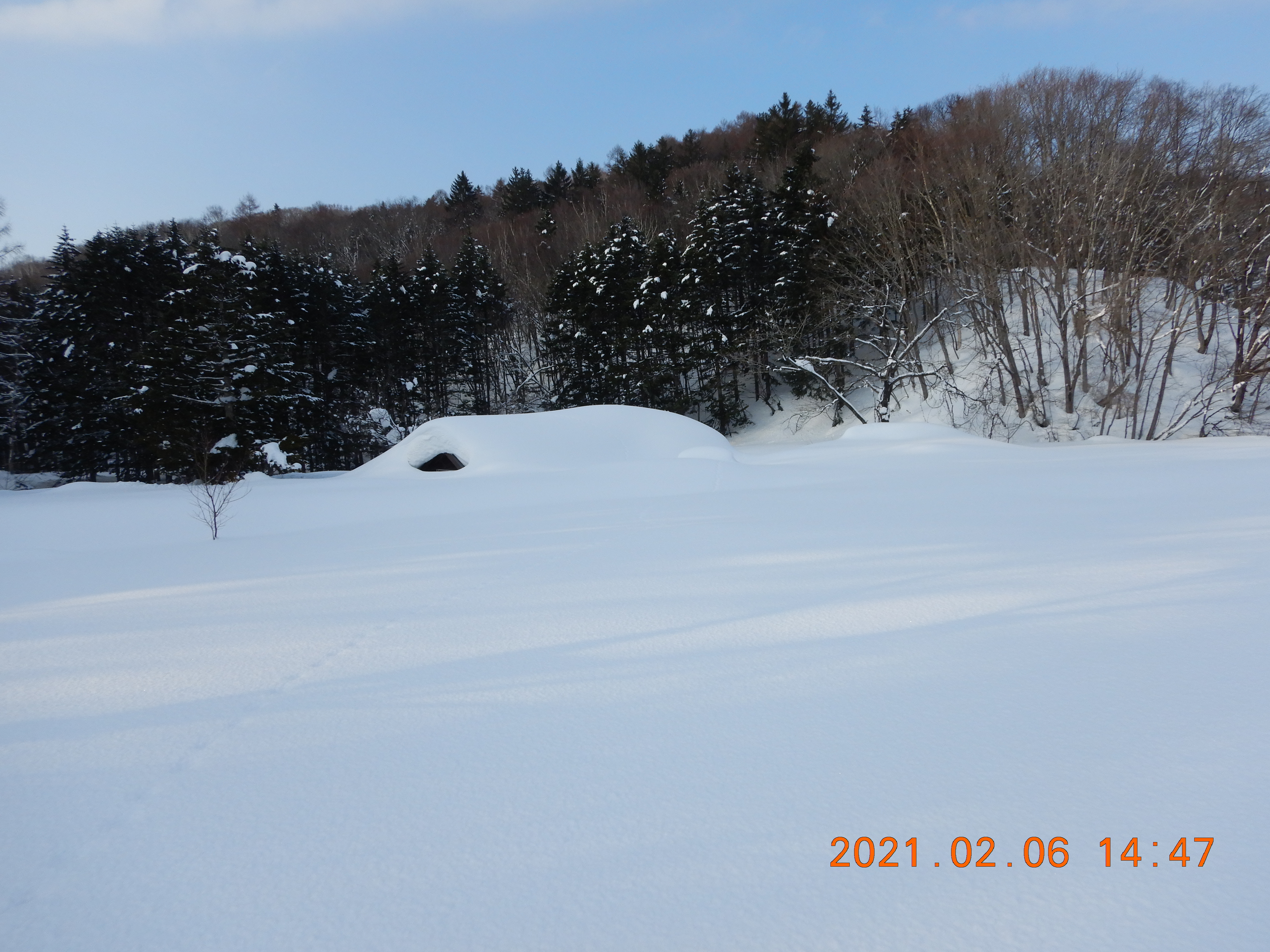 10分ほど辿ると トーチカのような怪しいコンクリート施設が雪に隠されていました。