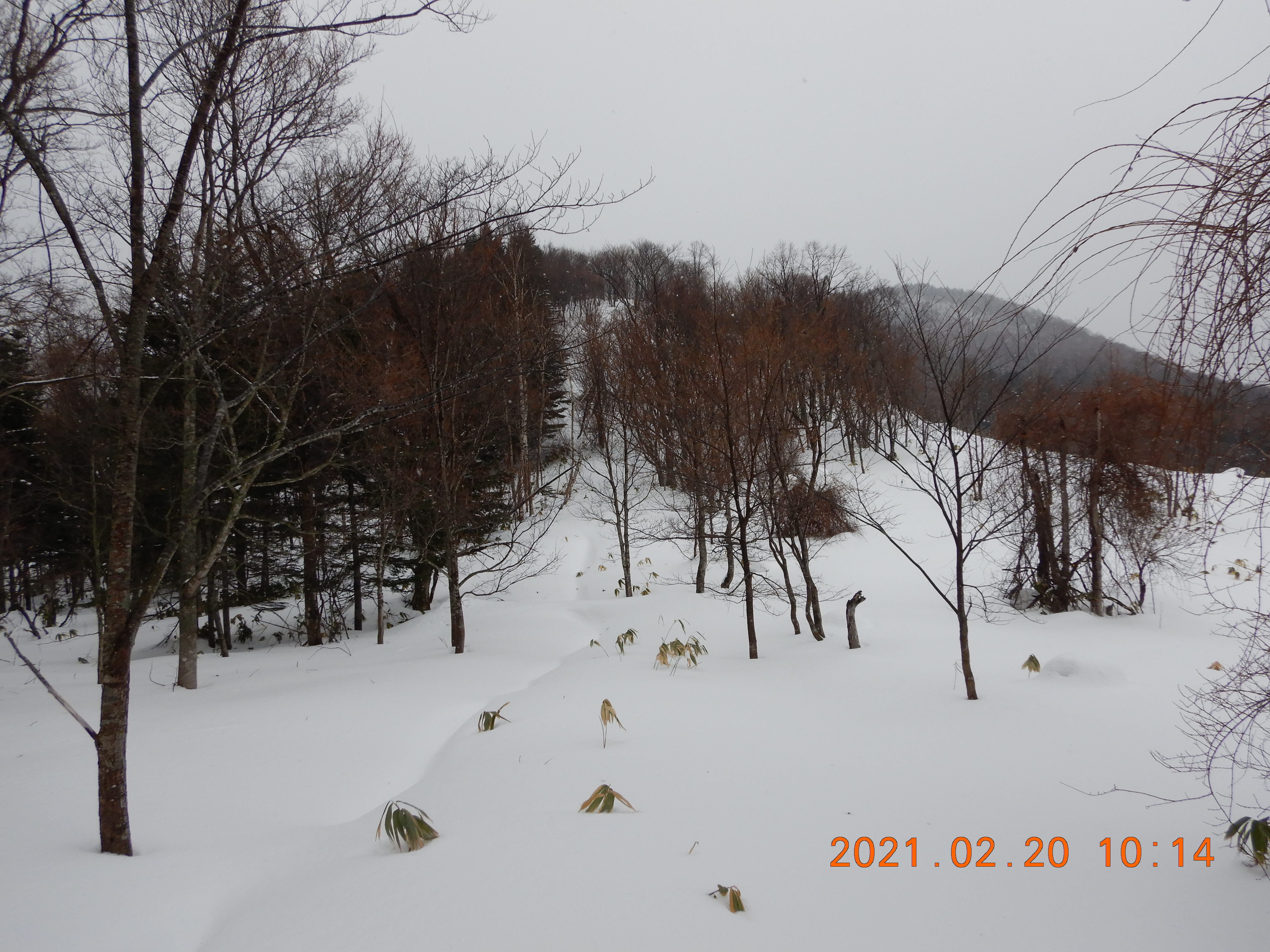 スキー場から登ってきたトレースがありました。