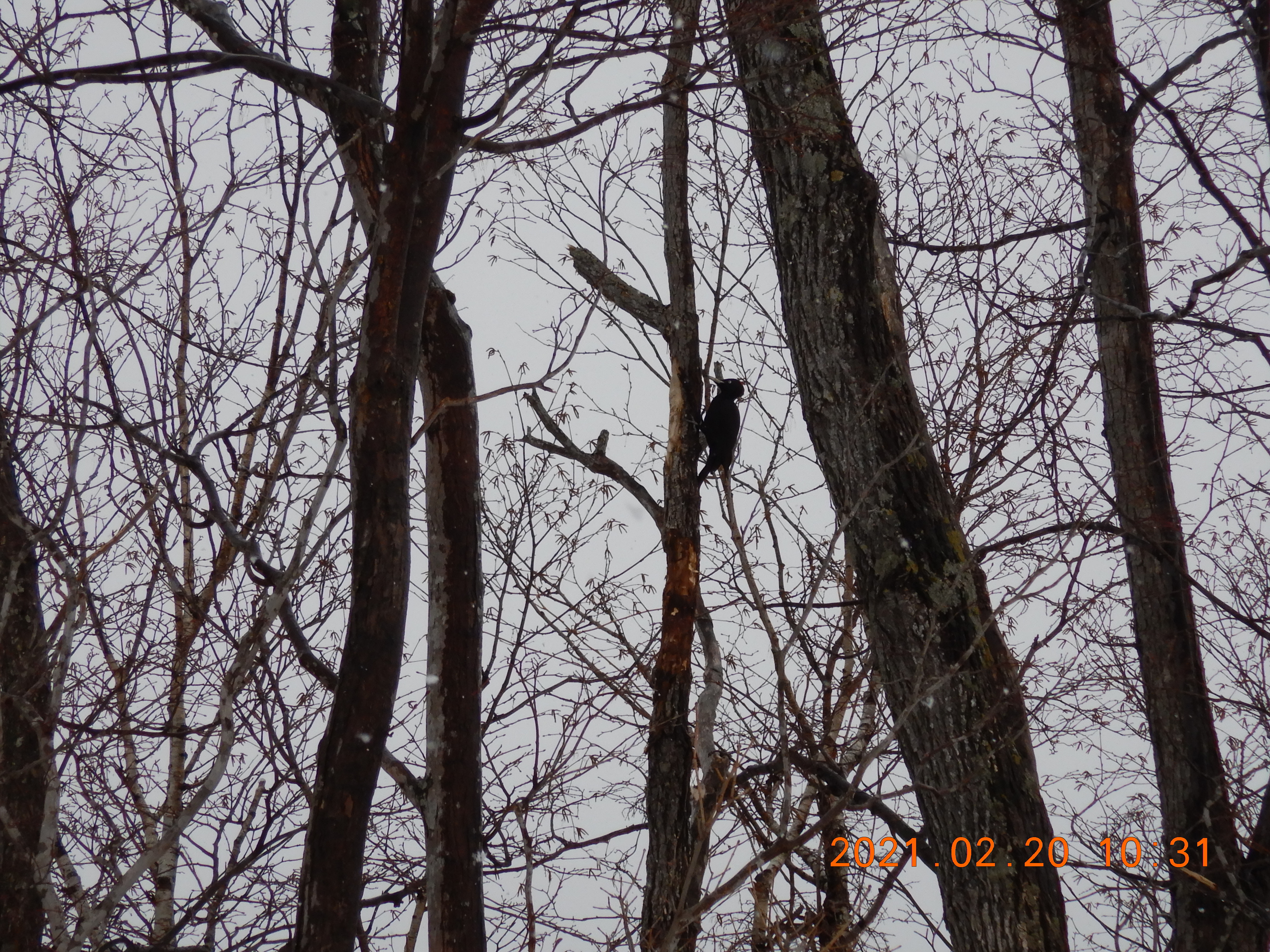 クマゲラの幼鳥が逃げもせず ドラミングで楽しませてくれました。