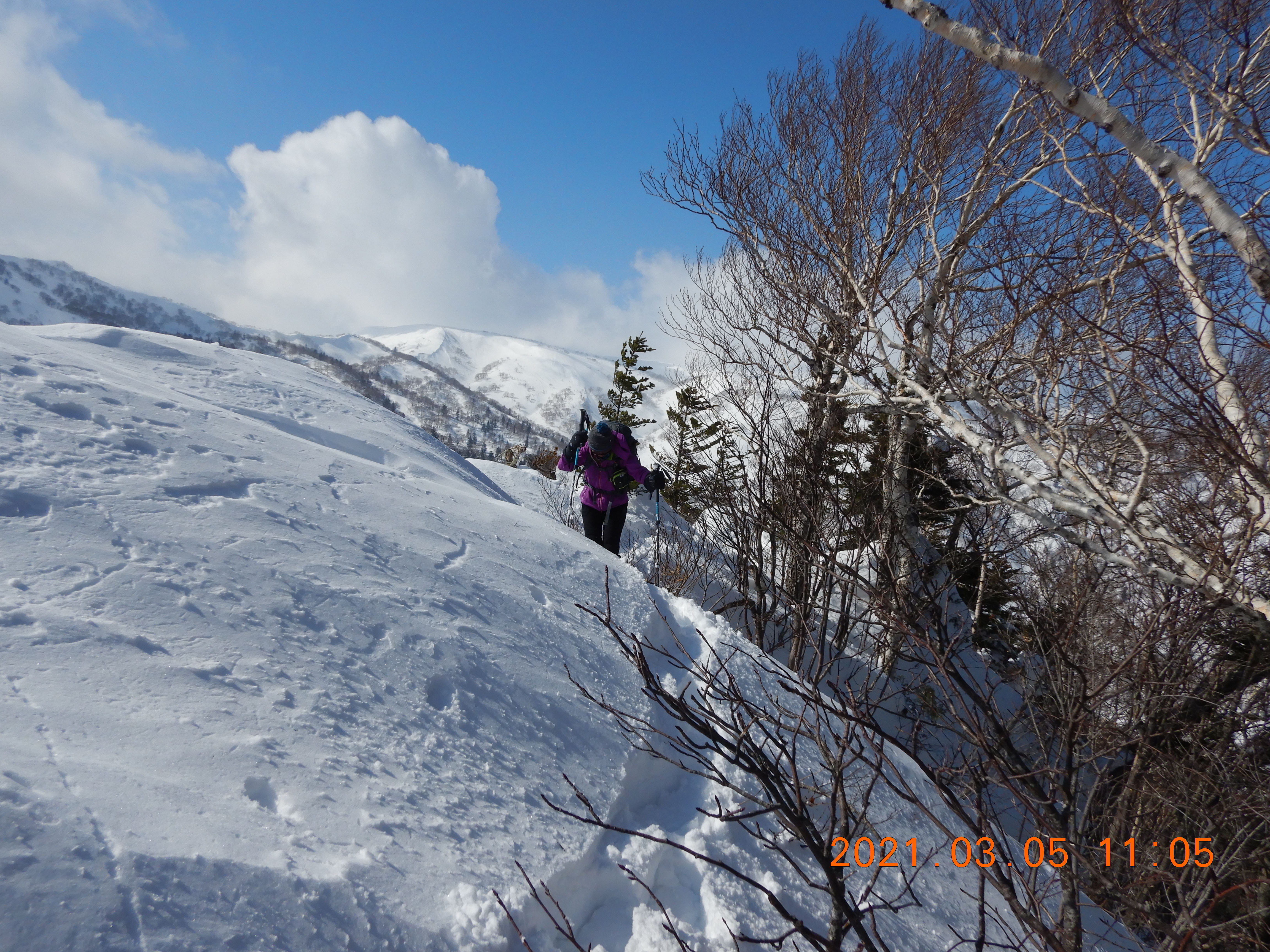山頂直下の雪庇 必死に登ってくるゲスト。