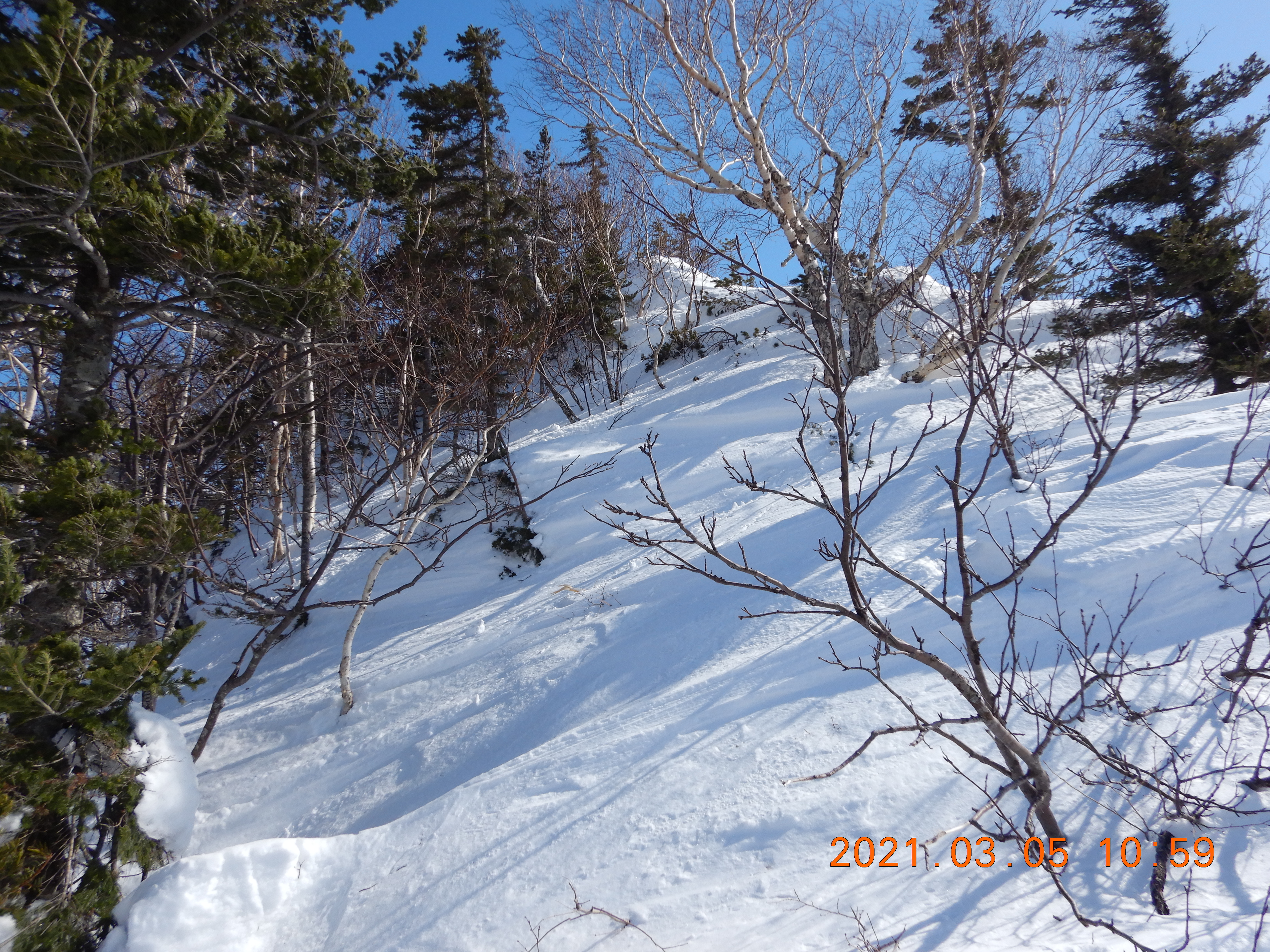 800mまで上がってきたらクラストしていて 15m以上の強風で煽られました。