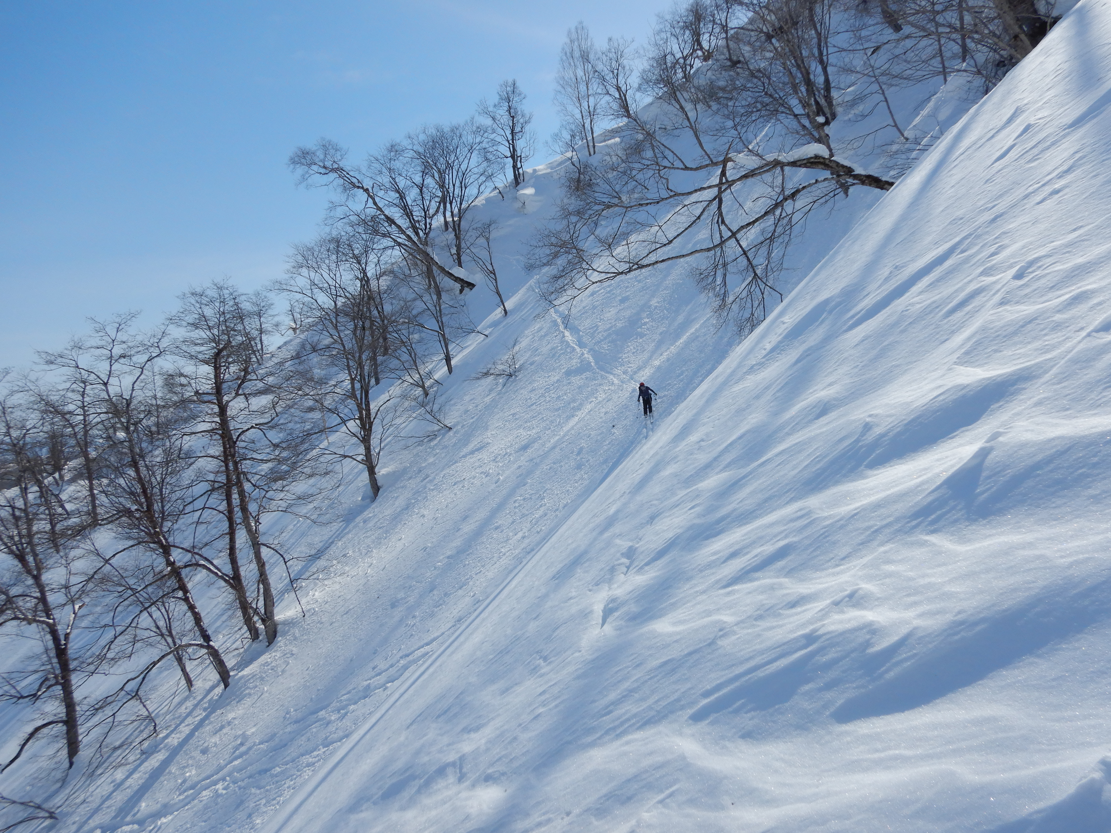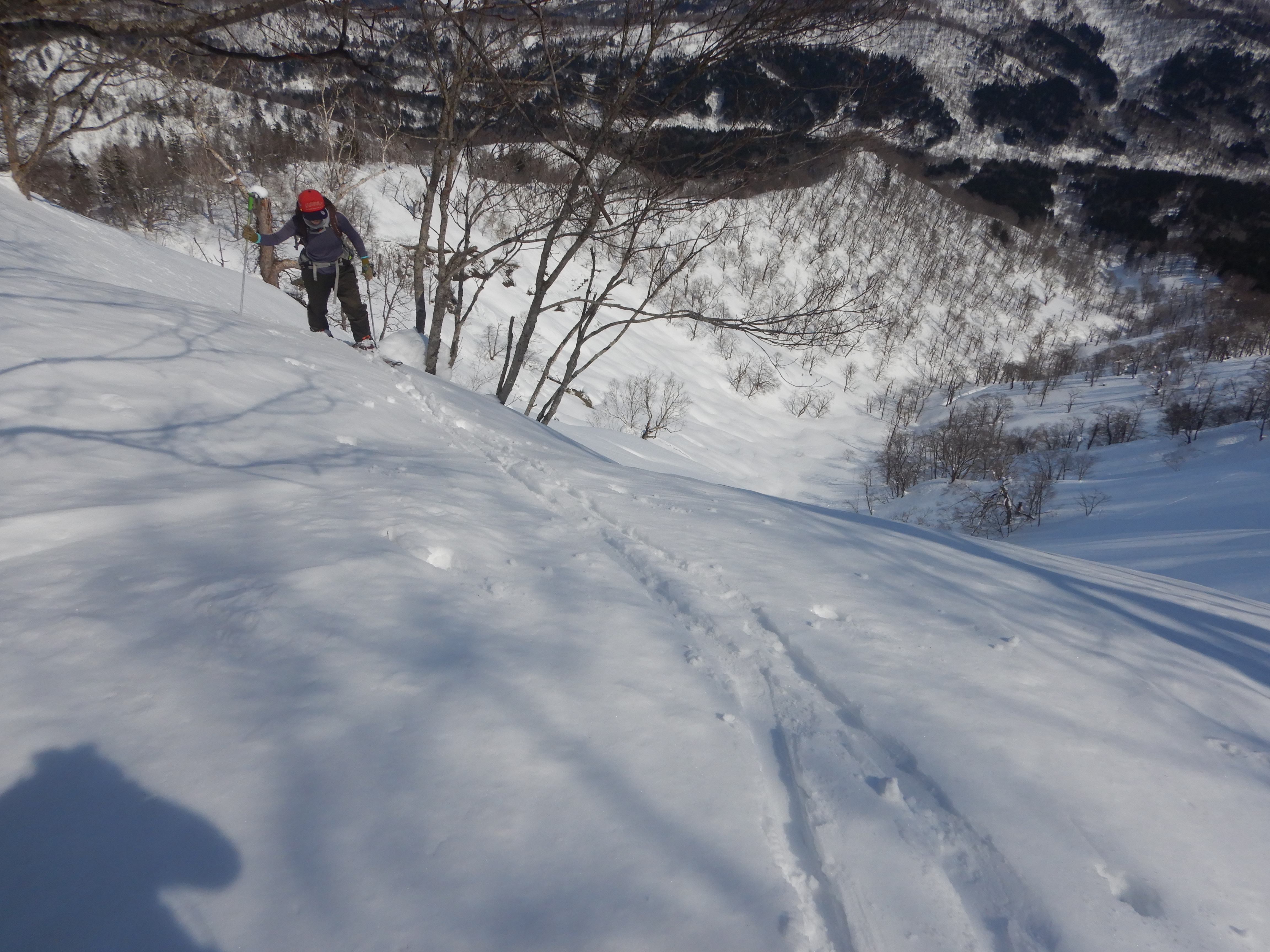 トラバースから沢の源頭に・・ルートを目で追いました。