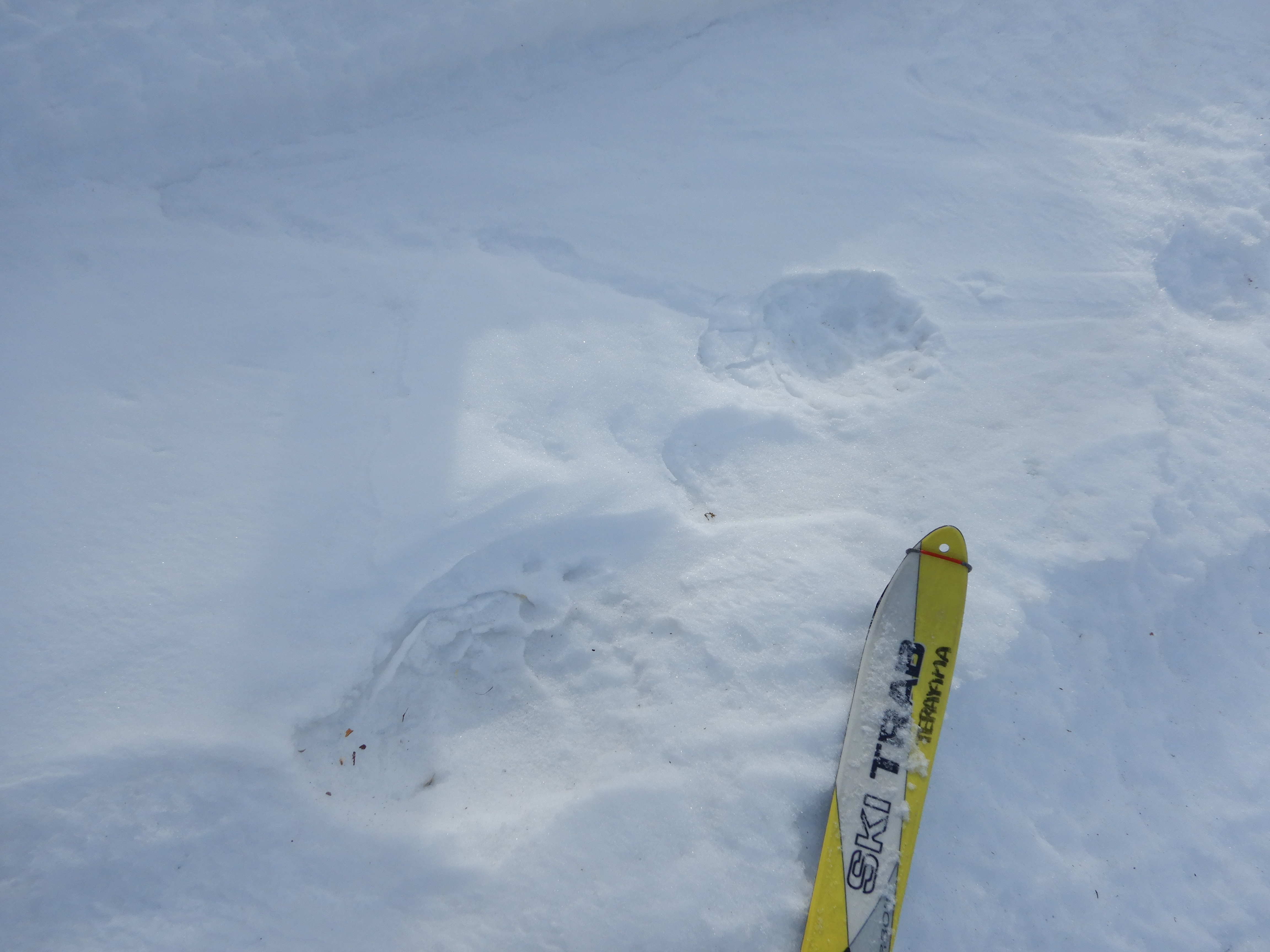 尾根に上がったら大きな足跡 もう目覚めてウロウロしていました。