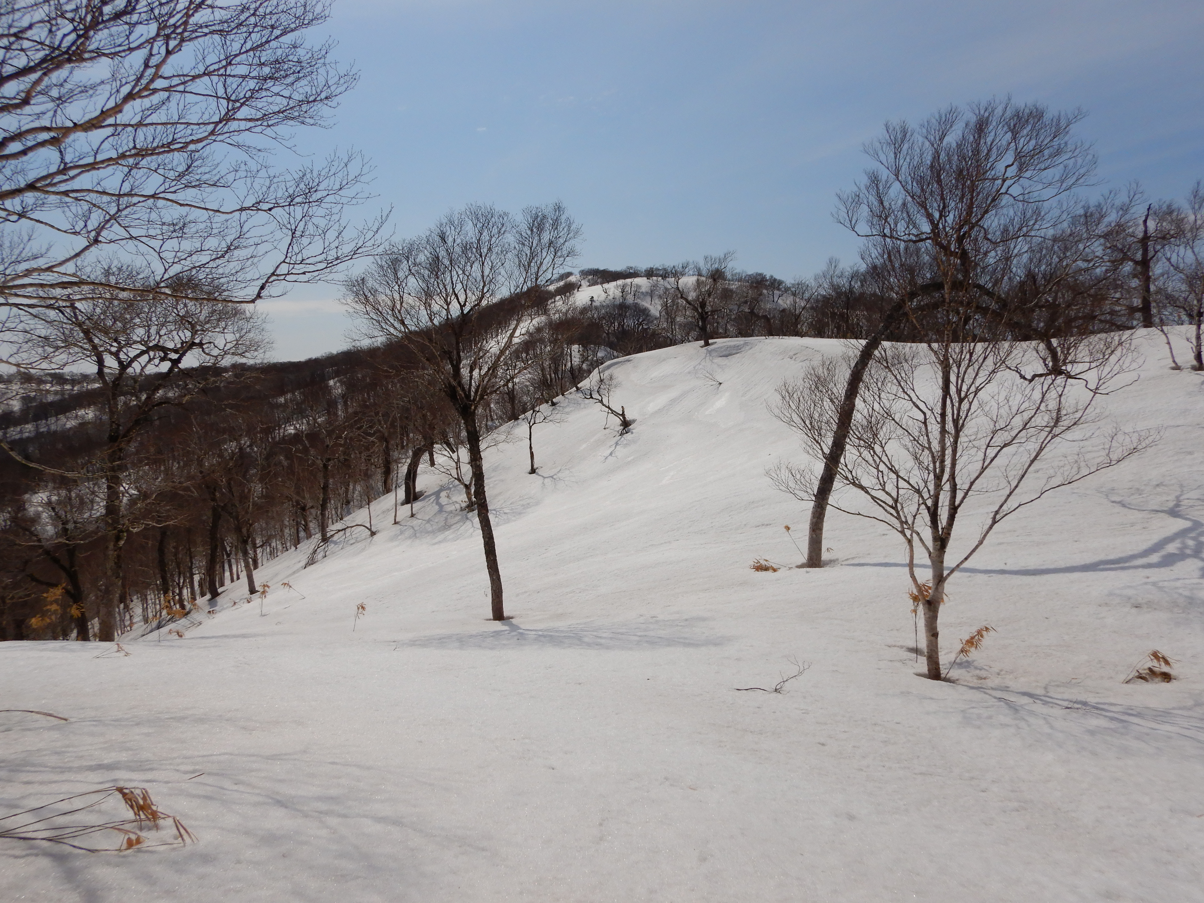ザラメ雪は歩きやすく 尾根にでたら立派な作業道ありました。