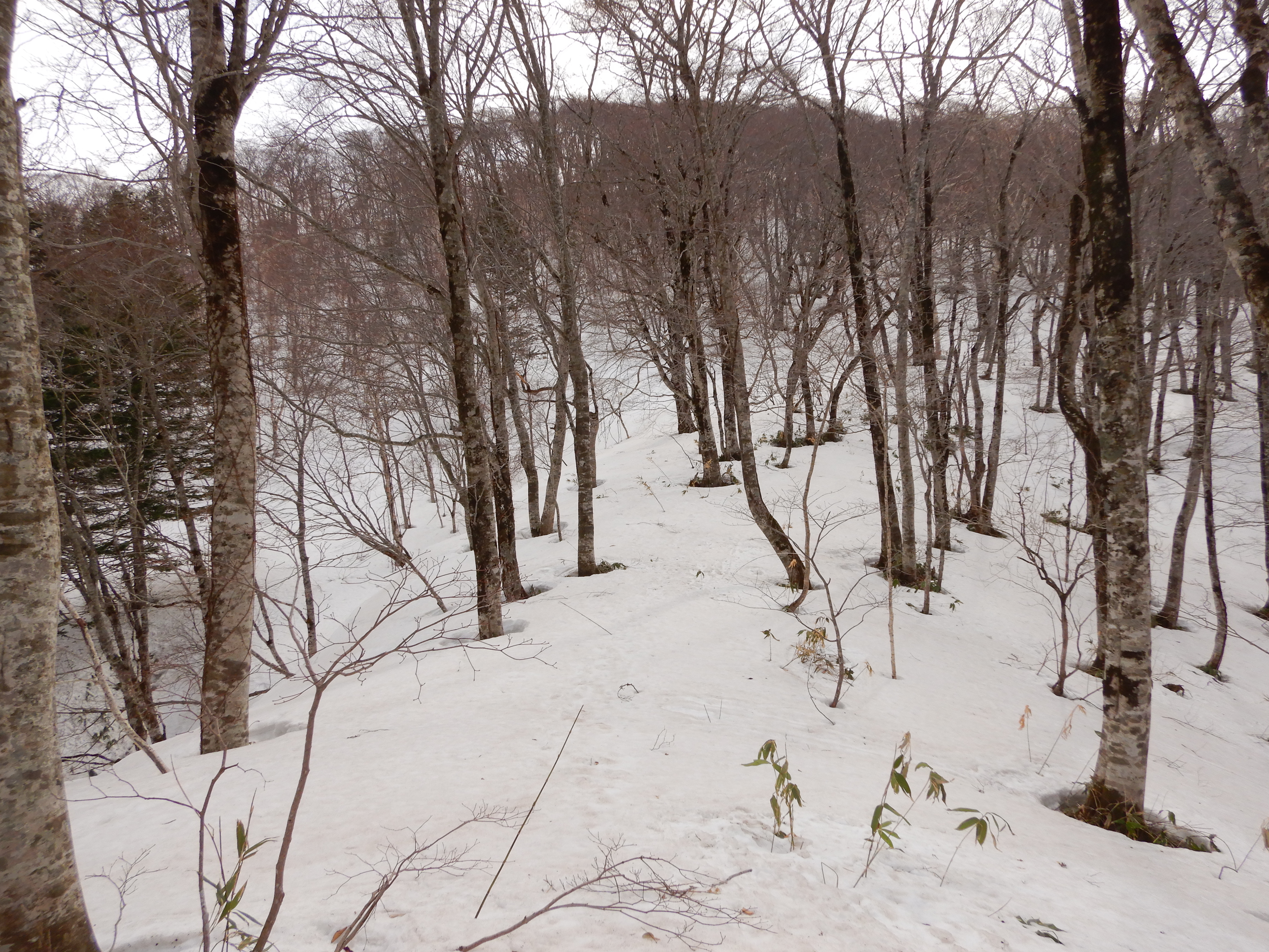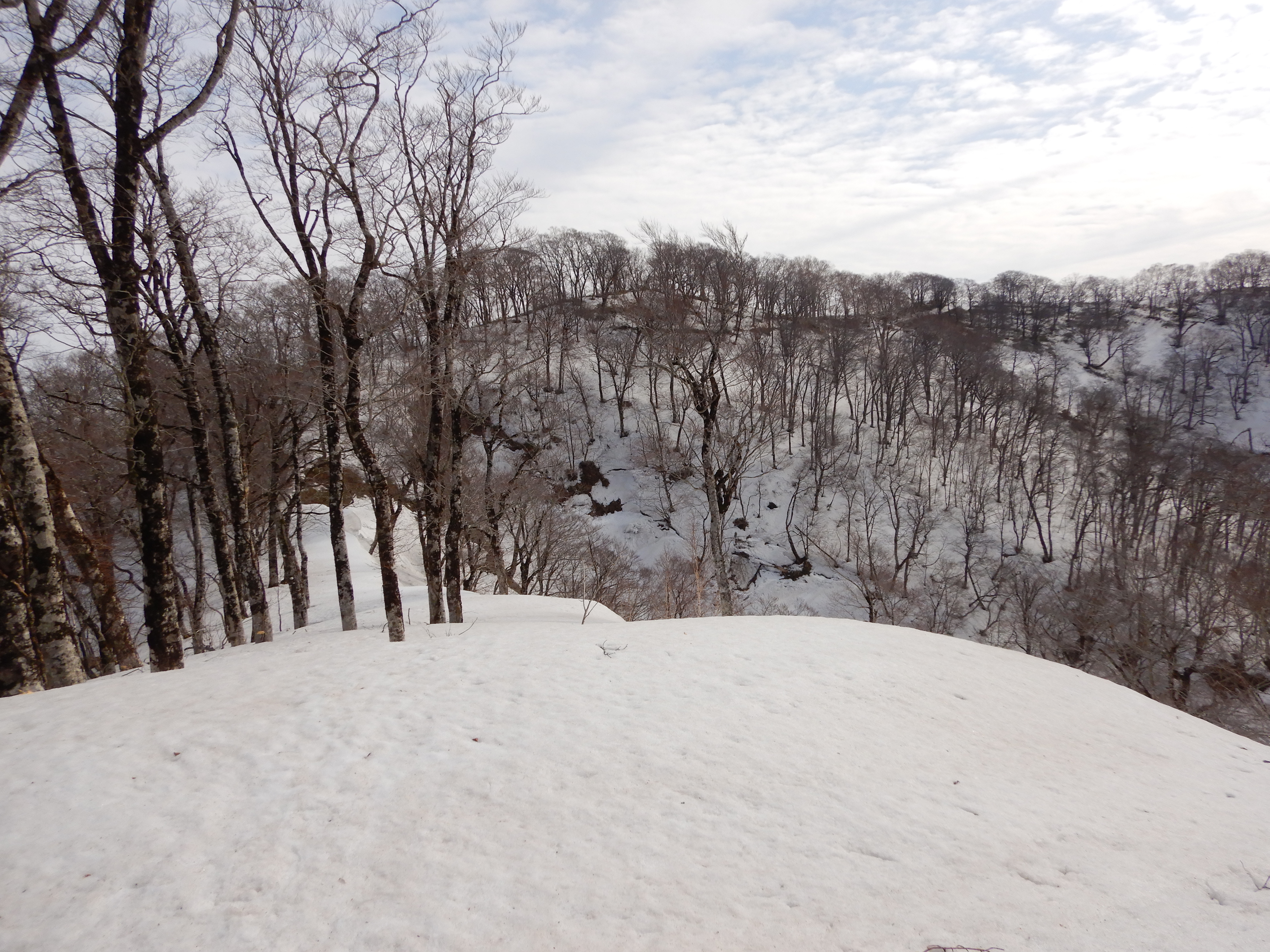 尾根に取りつくと積雪は50cm程度で 1週間もすればブッシュがうるさそう。