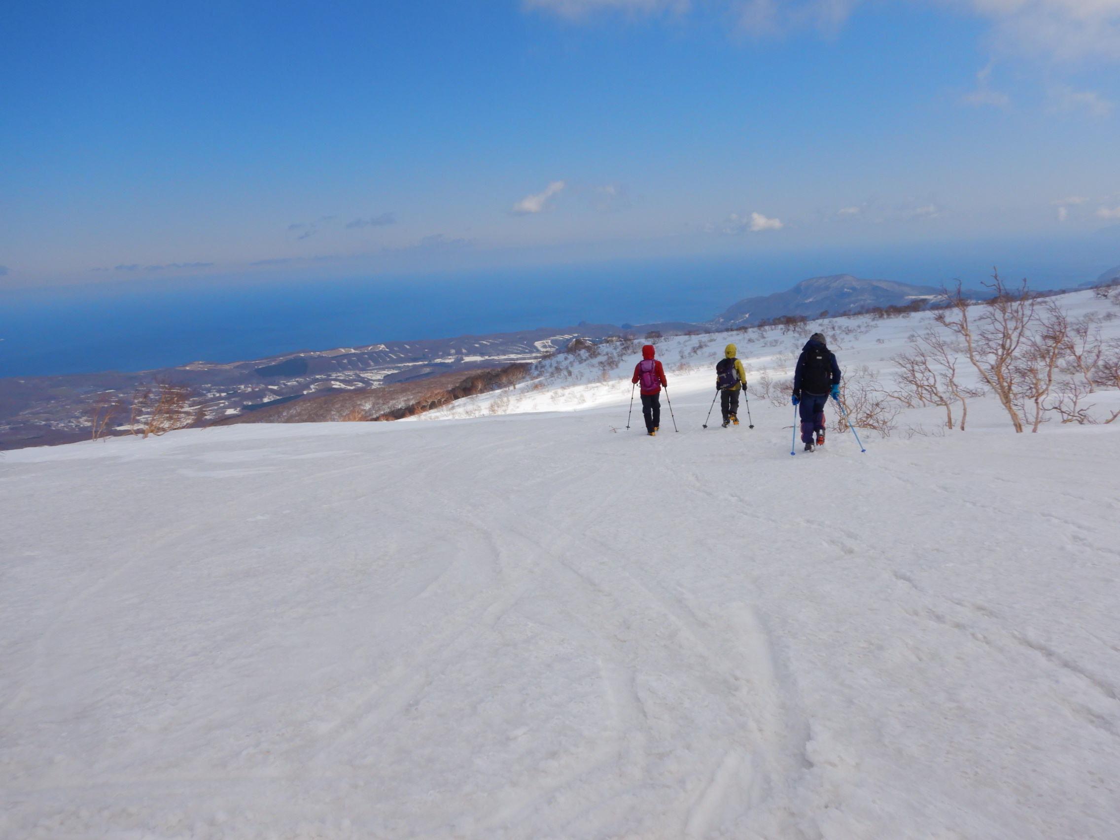 スキーとスノーシューのパーティーが積丹岳から下山してきた。