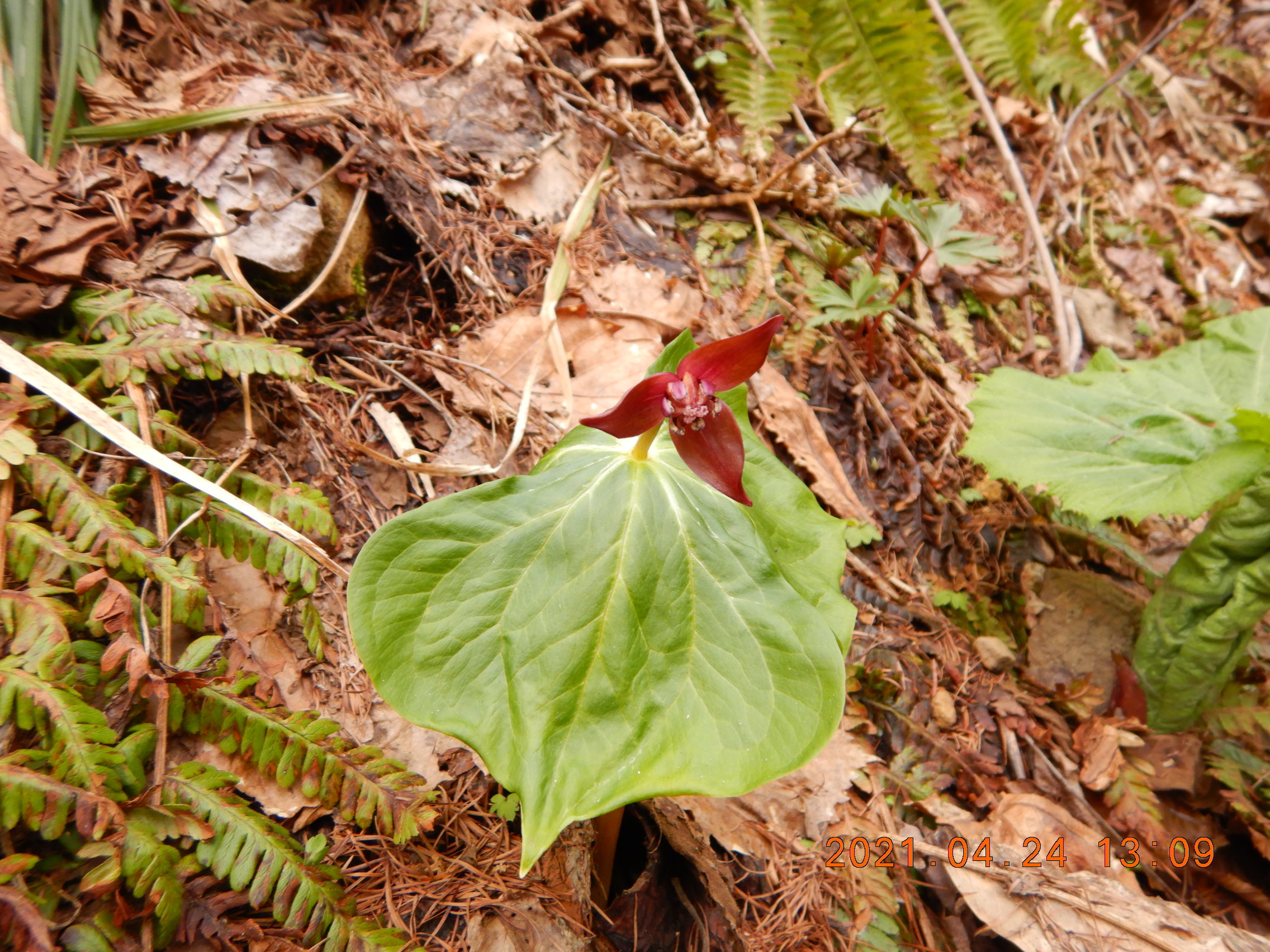 林道に降りてきたら朝にはなかったエンレイソウ咲いていました。