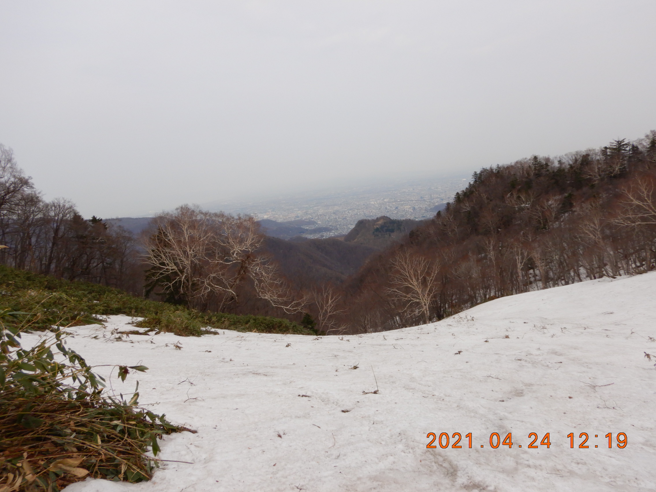 札幌の市街地は水蒸気がたまって霞がかかっていました。