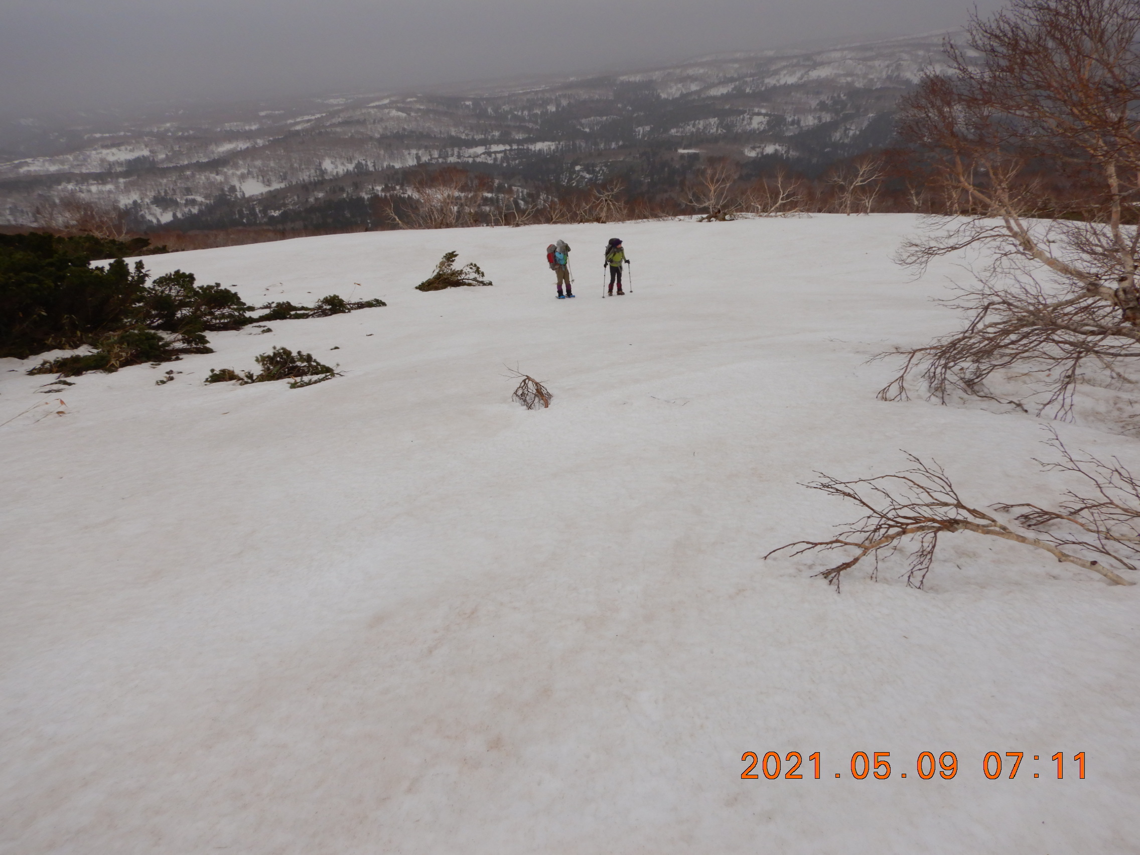 標高が下ると雨でトレースは消え 根曲竹のブッシュは立ち上がっていました。