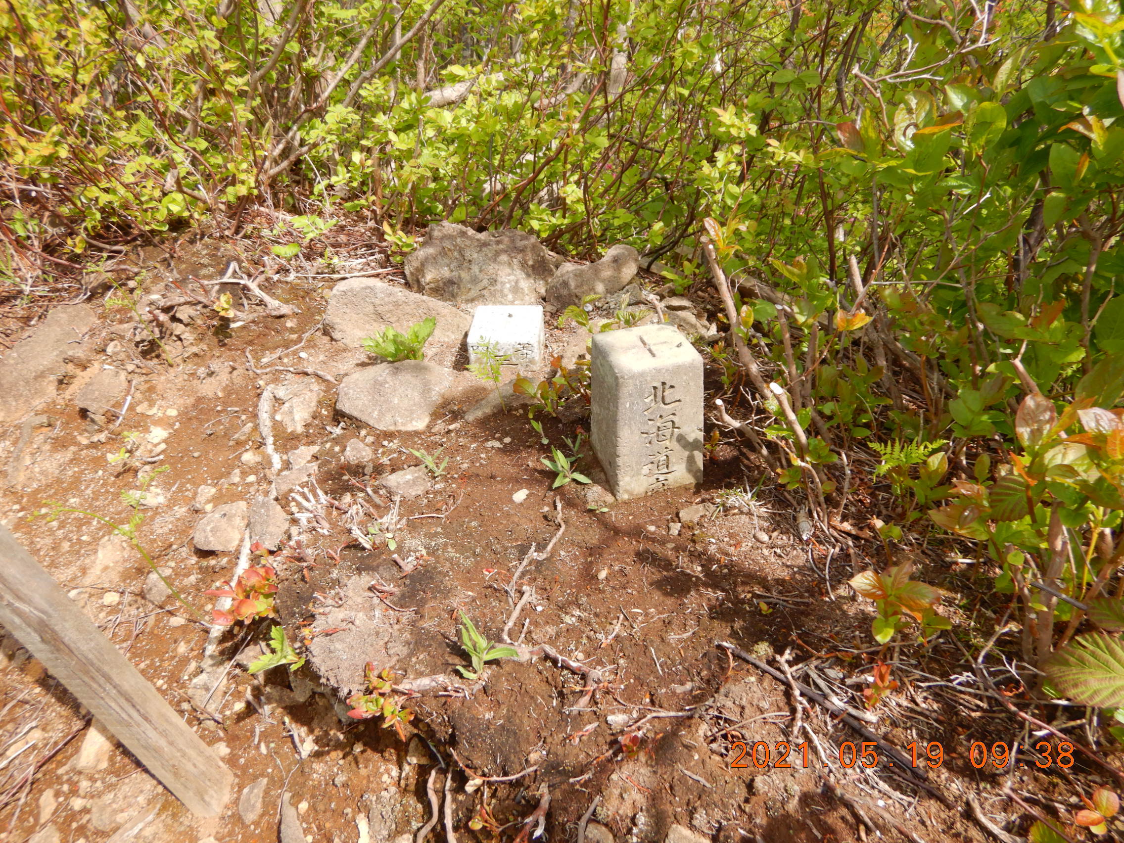 新しい四等三角点の横に旧漢字で彫られた「北海道庁」標石がありました。