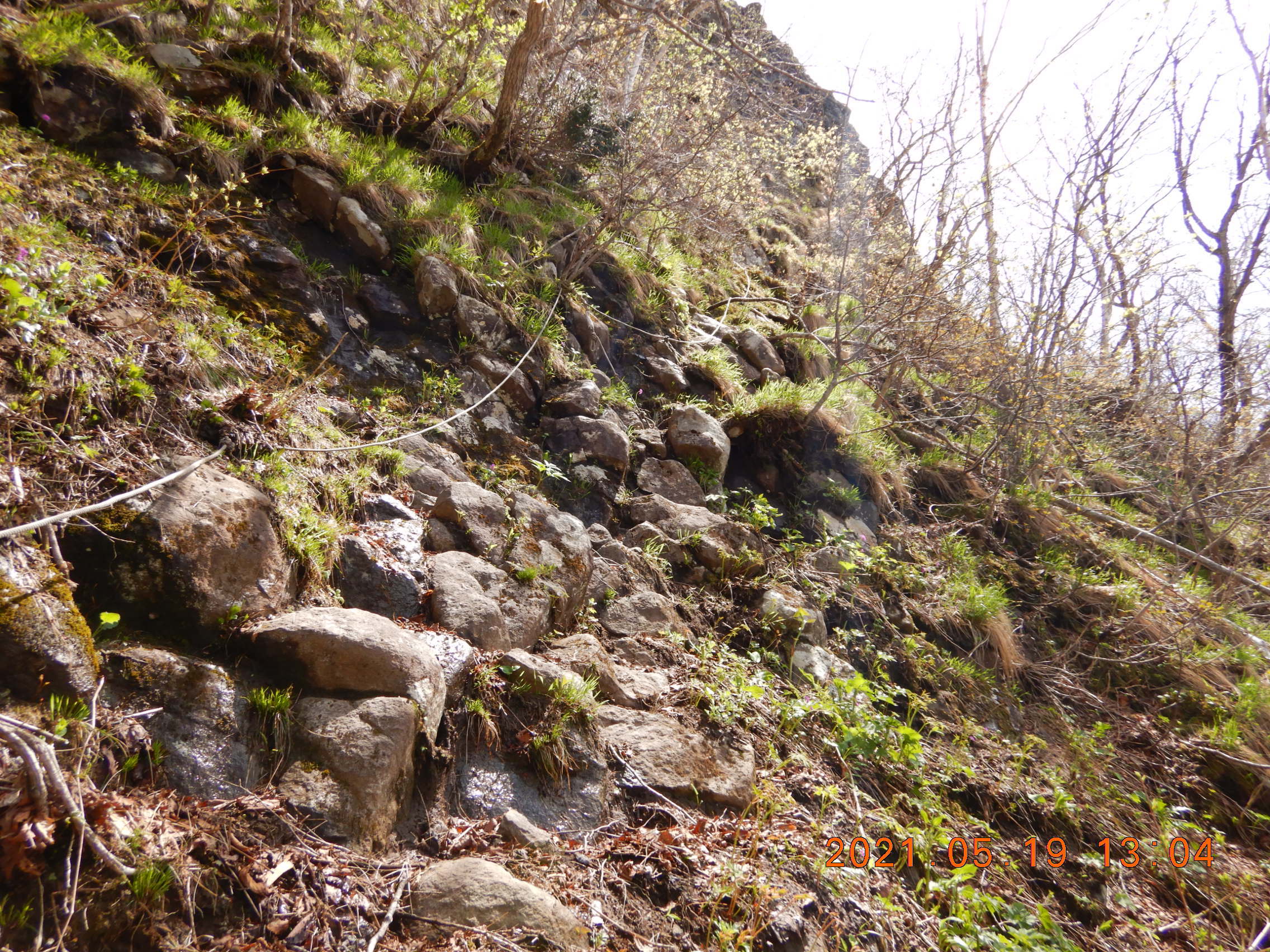 旧道のハイライトは岩壁下のトラバース。