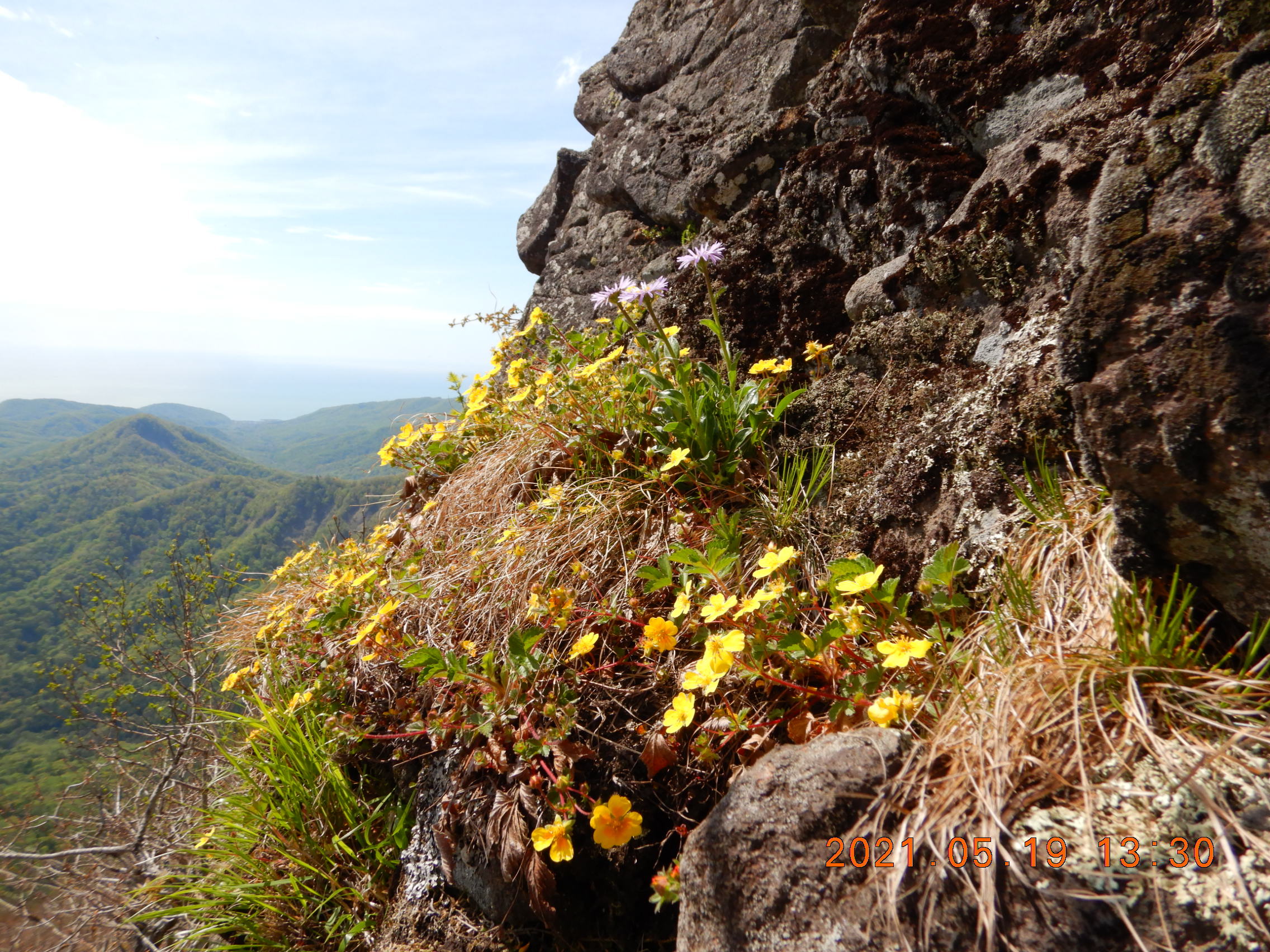 岩壁にしがみつくミヤマキンバイ。