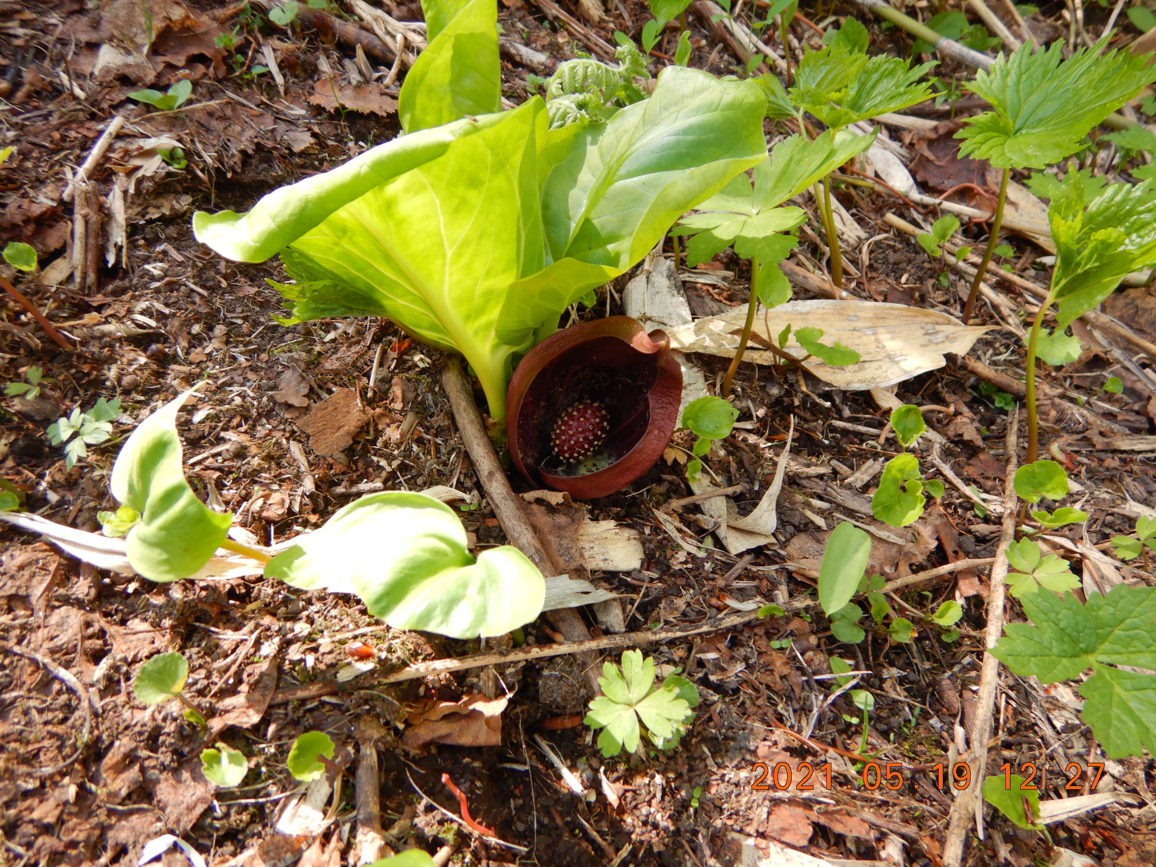 湿地じゃないのに ザゼンソウ 今年初めて。