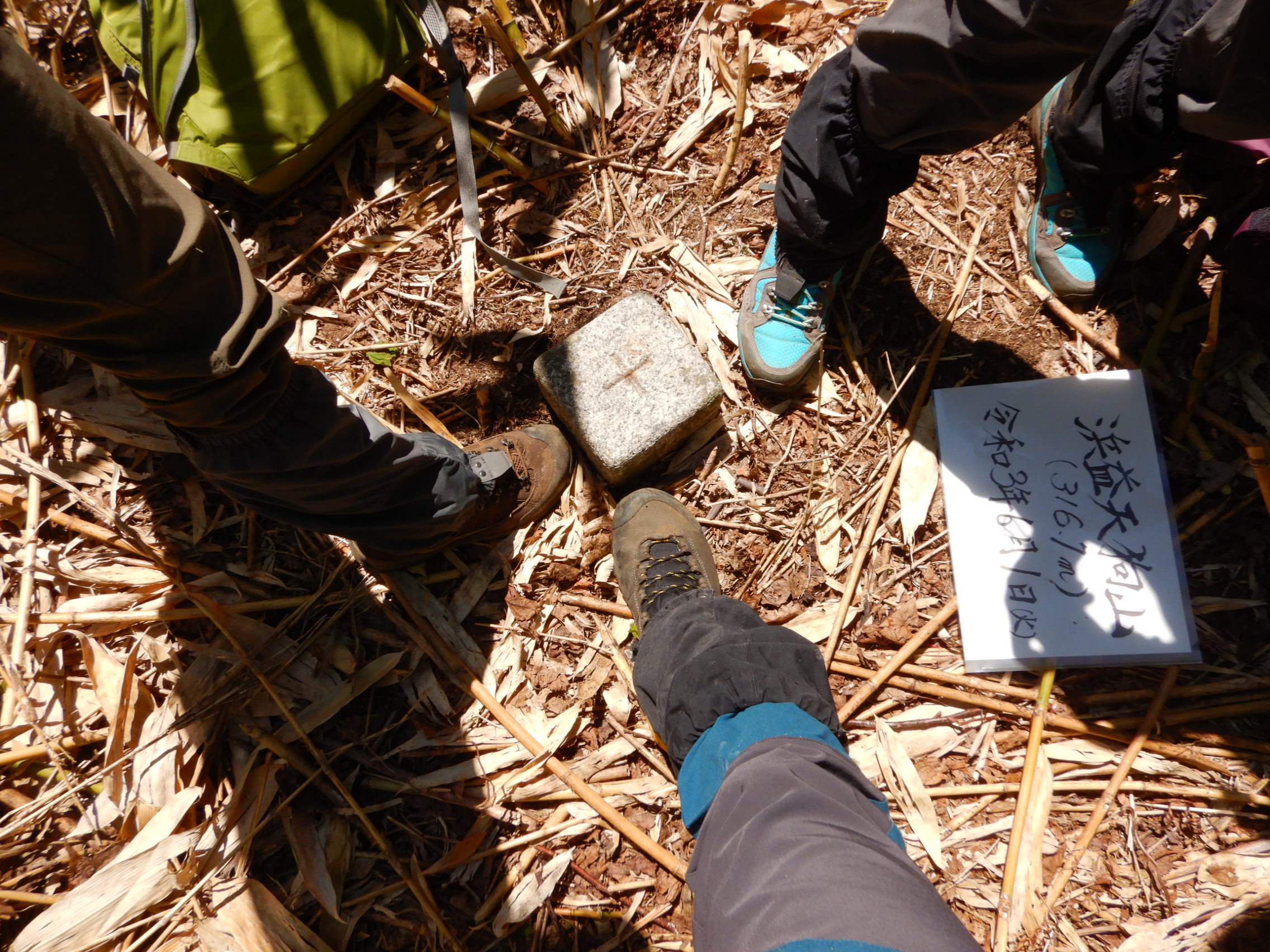 山頂直下は根曲がりの密林ですが三角点の周辺は刈り払われていました。