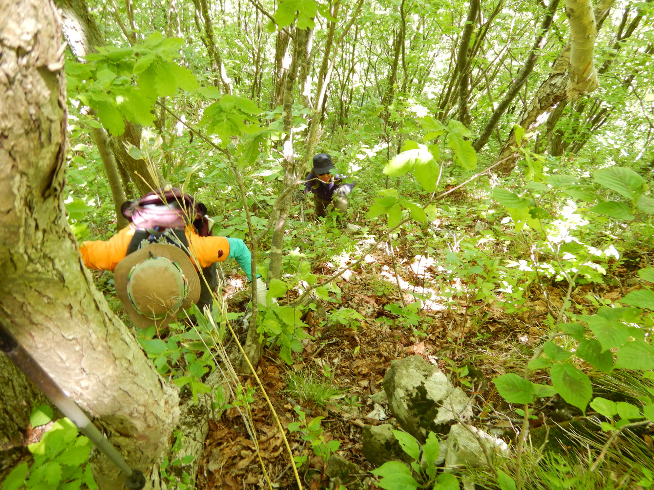 急斜面はブッシュ掴んで這い上がりました。